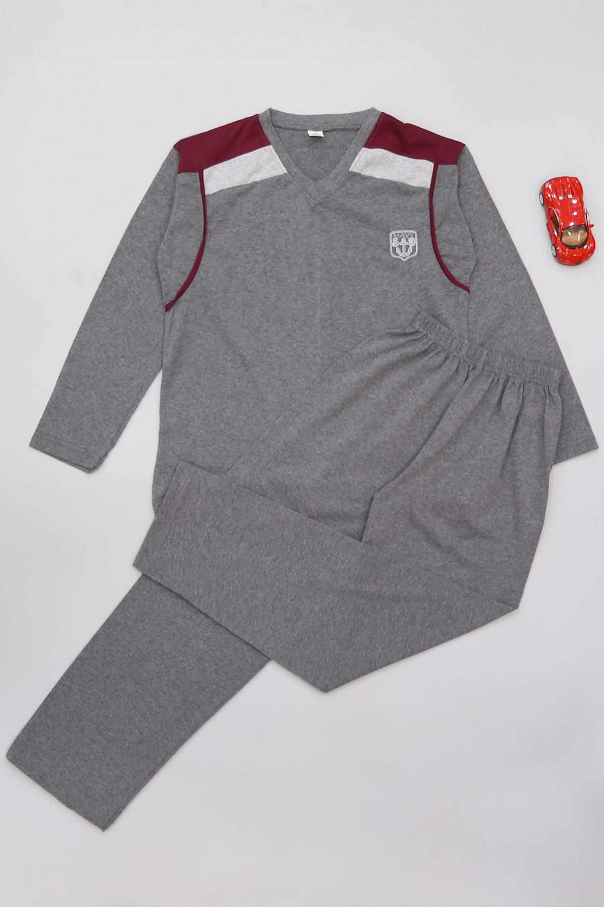 10-16 Yaş Garnili Erkek Çocuk Pijama Takımı Fümebordo - 50715.1838.