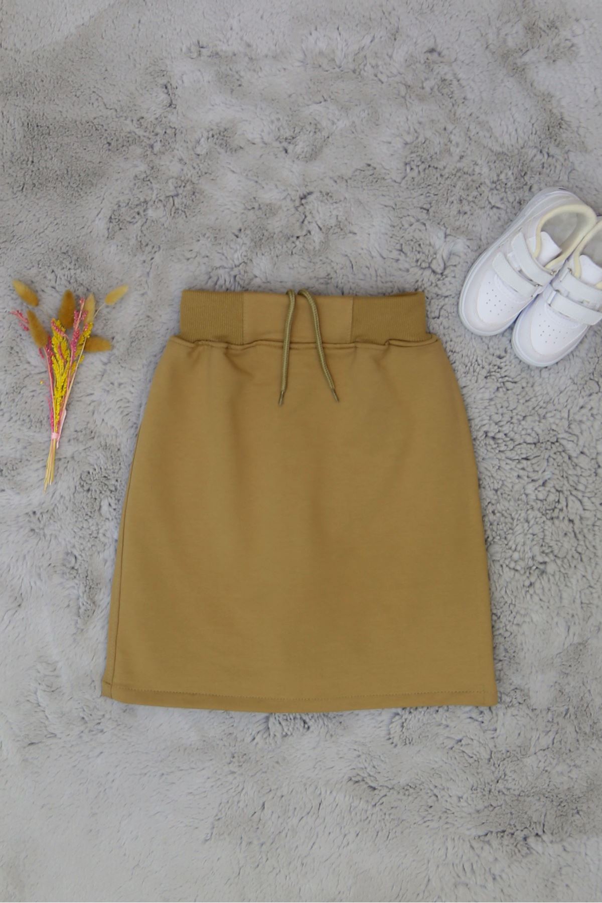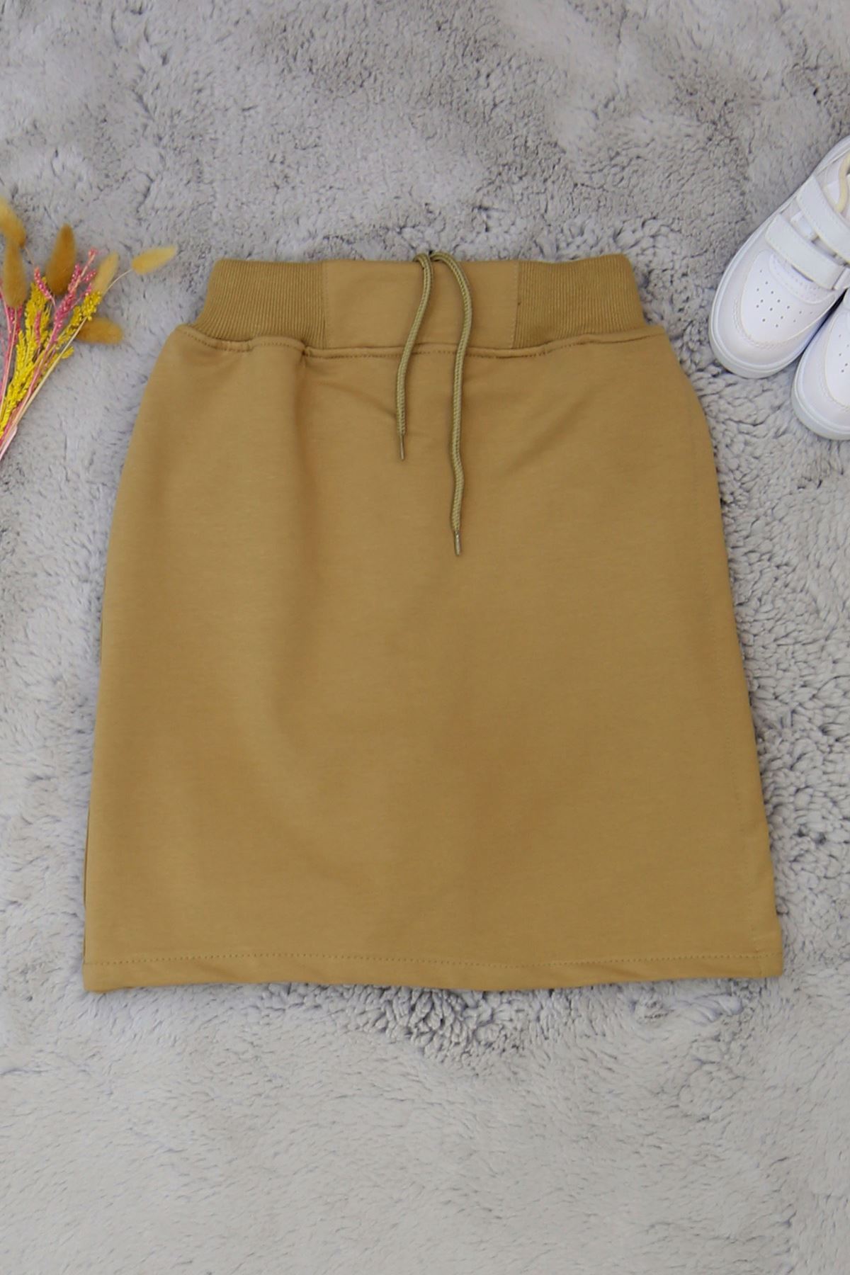 11-15 Yaş İki İplik Beli Lastikli Kompak Penye Şort Etek Bej - 90233.2032.