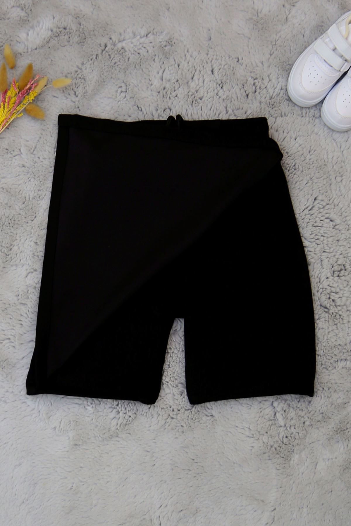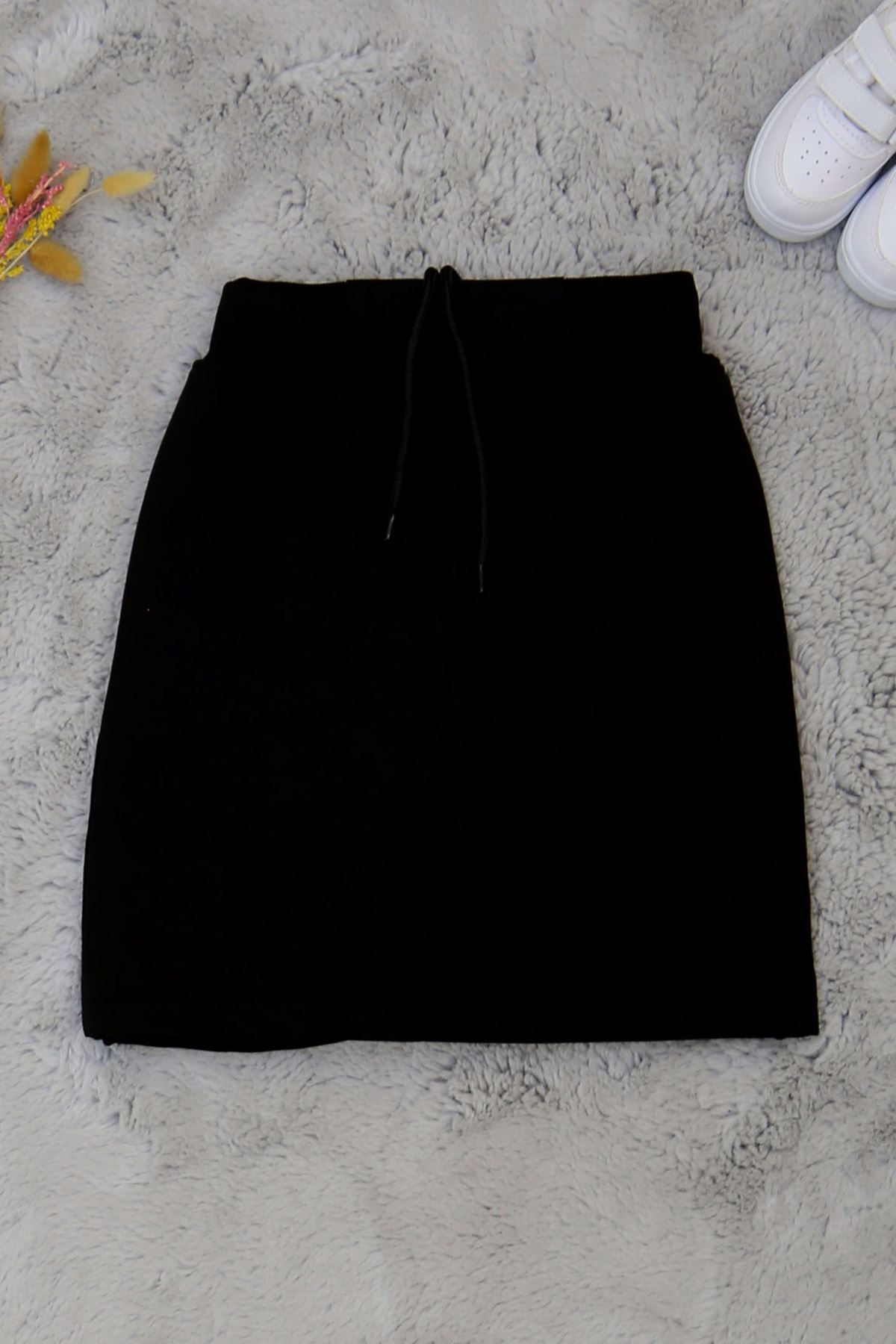 11-15 Yaş İki İplik Beli Lastikli Kompak Penye Şort Etek Siyah - 90233.2032.