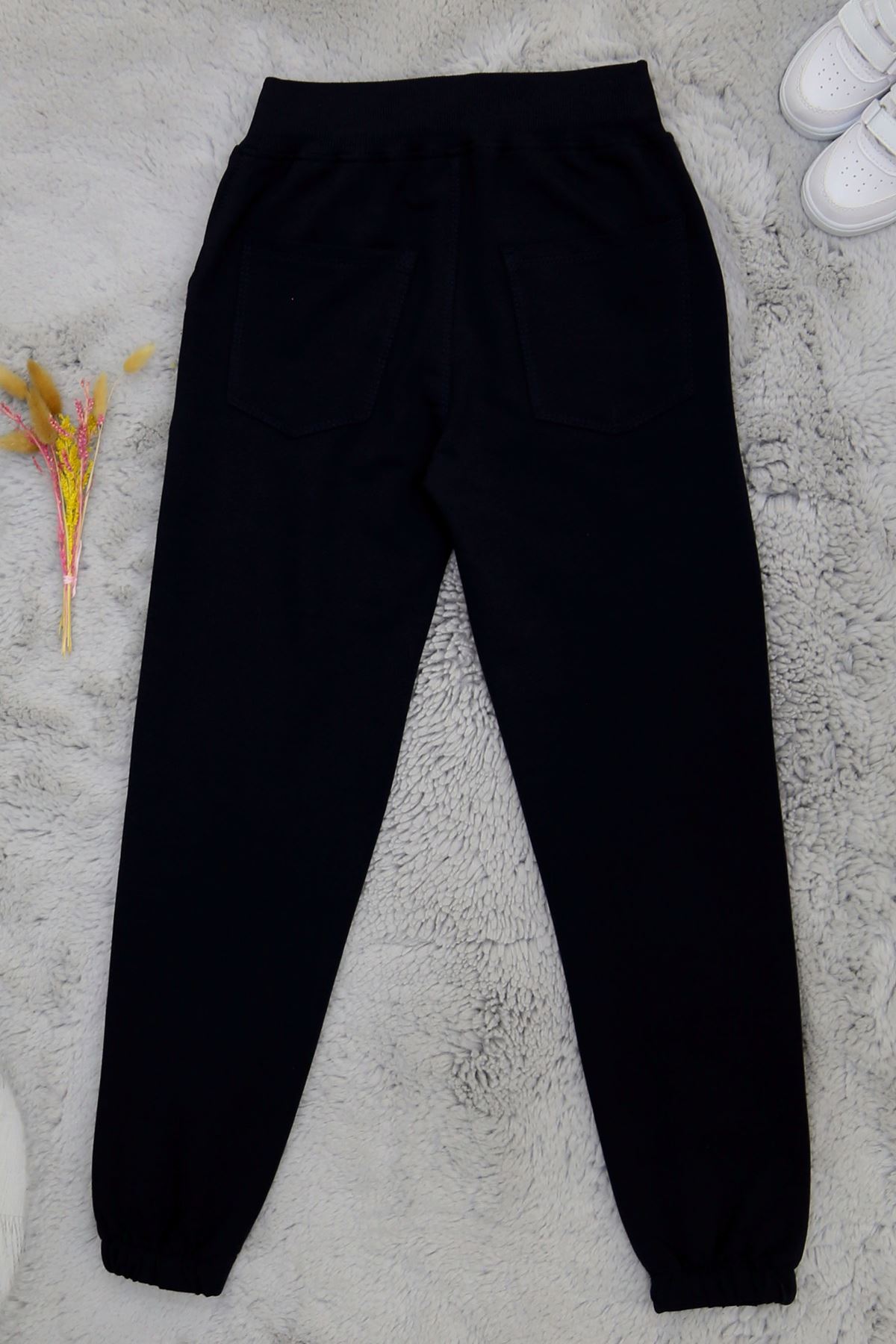 6-10 Yaş İki İplik Kompak Penye Paça Lastikli Eşofman Altı Unisex Siyah - 90226.2032.