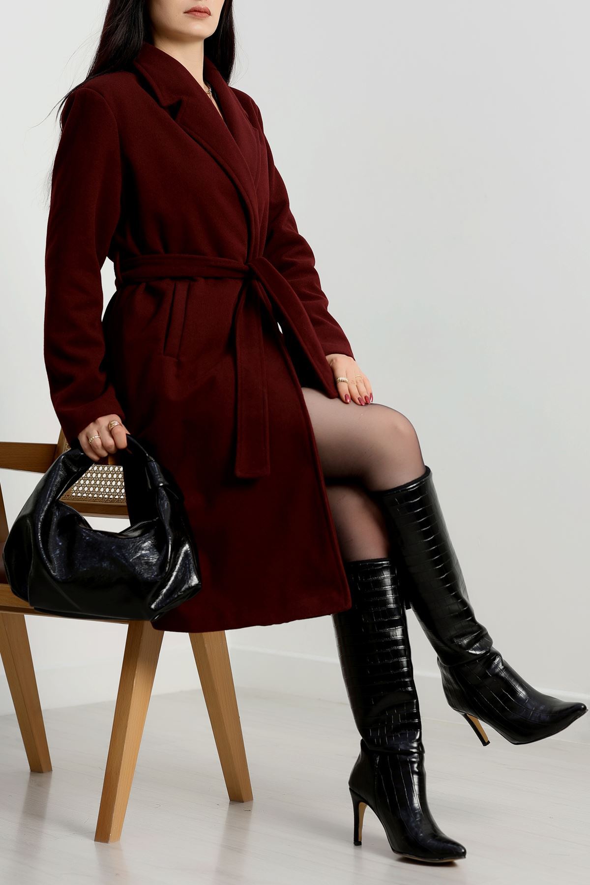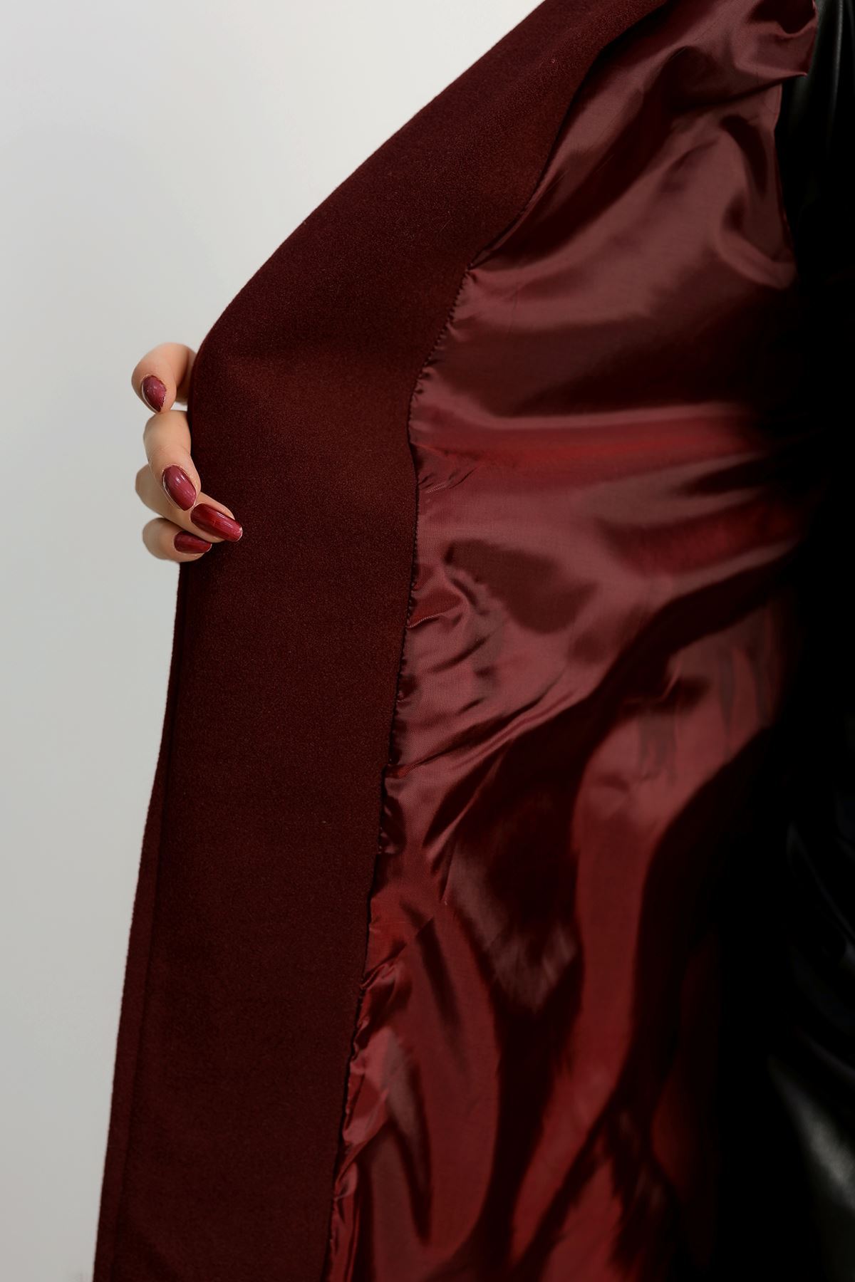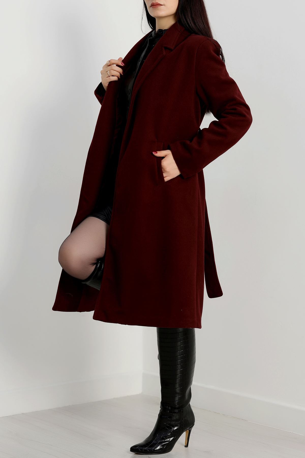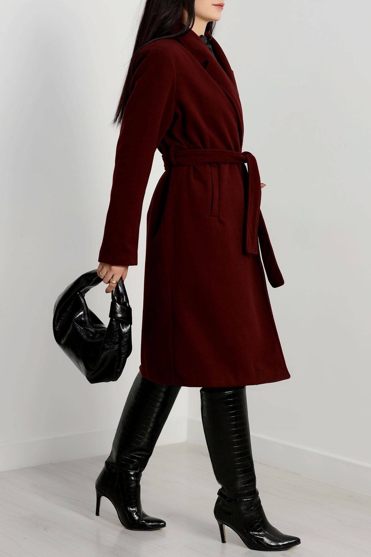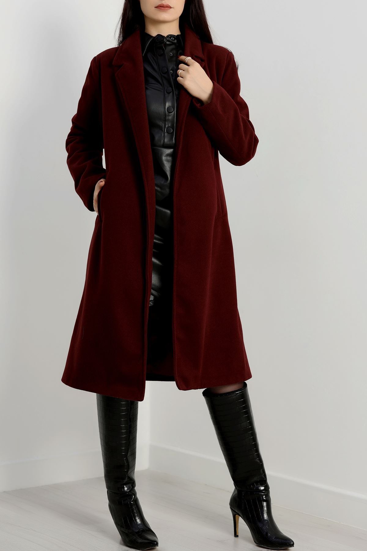 110 Cm Astarlı Kaşe Kaban Bordo - 90038.1839.
