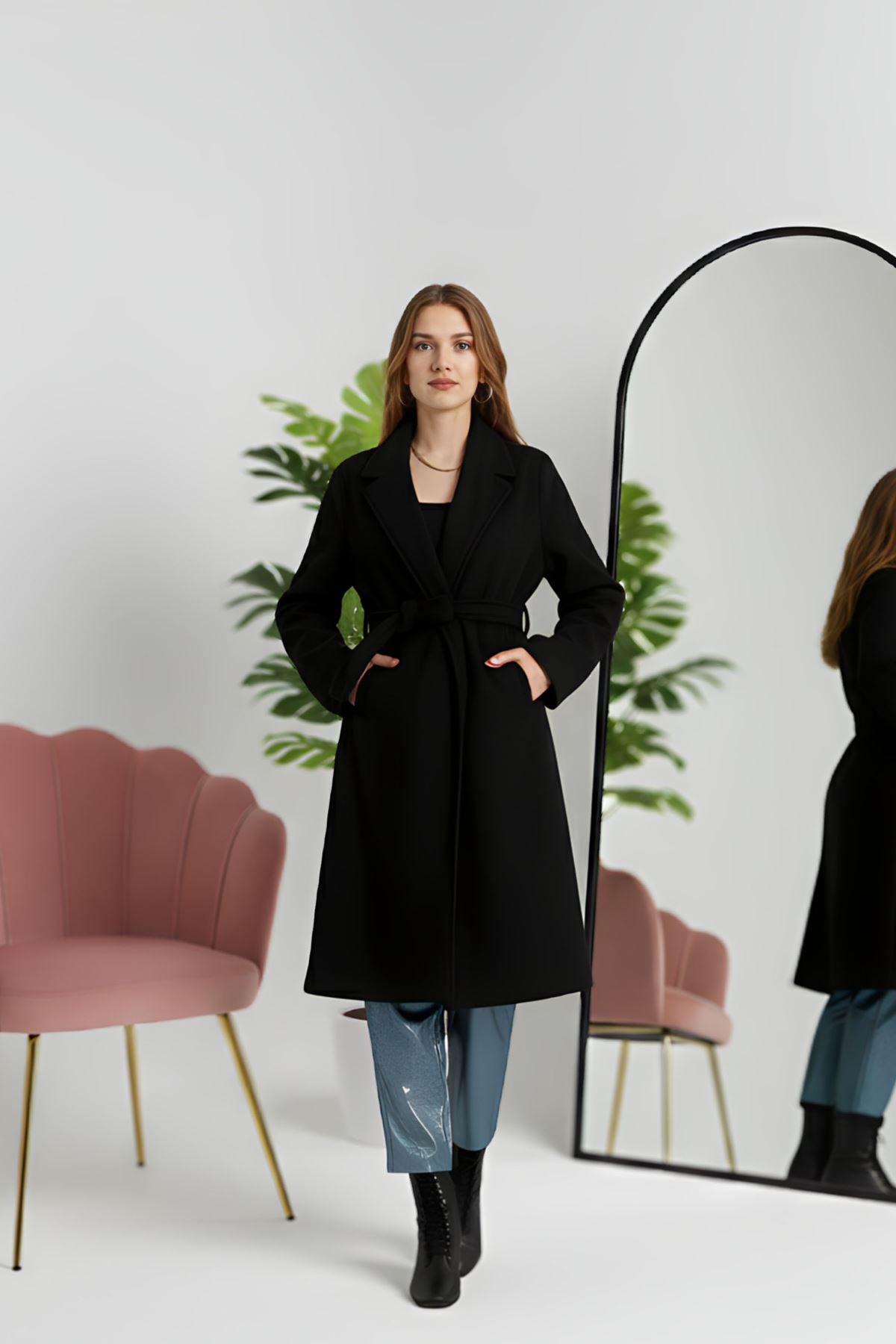 110Cm Astarlı Kaşe Kaban Siyah - 90038.1839.