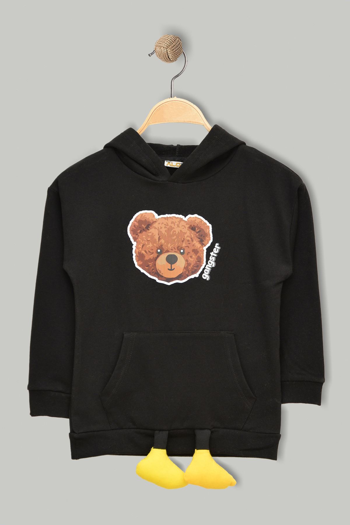 2 İp Şardonlu 3-7 Yaş Kapşonlu Sweat Siyah - 224518.1576.
