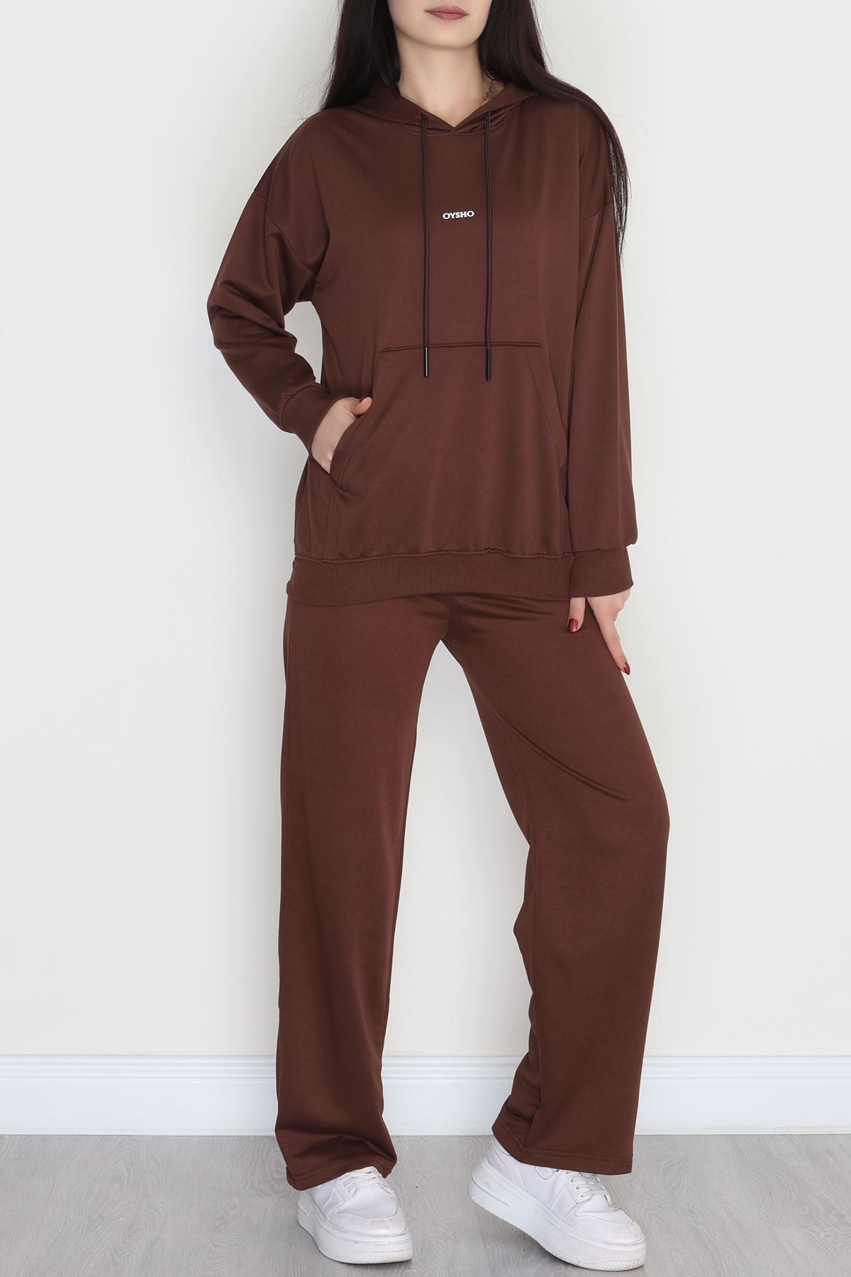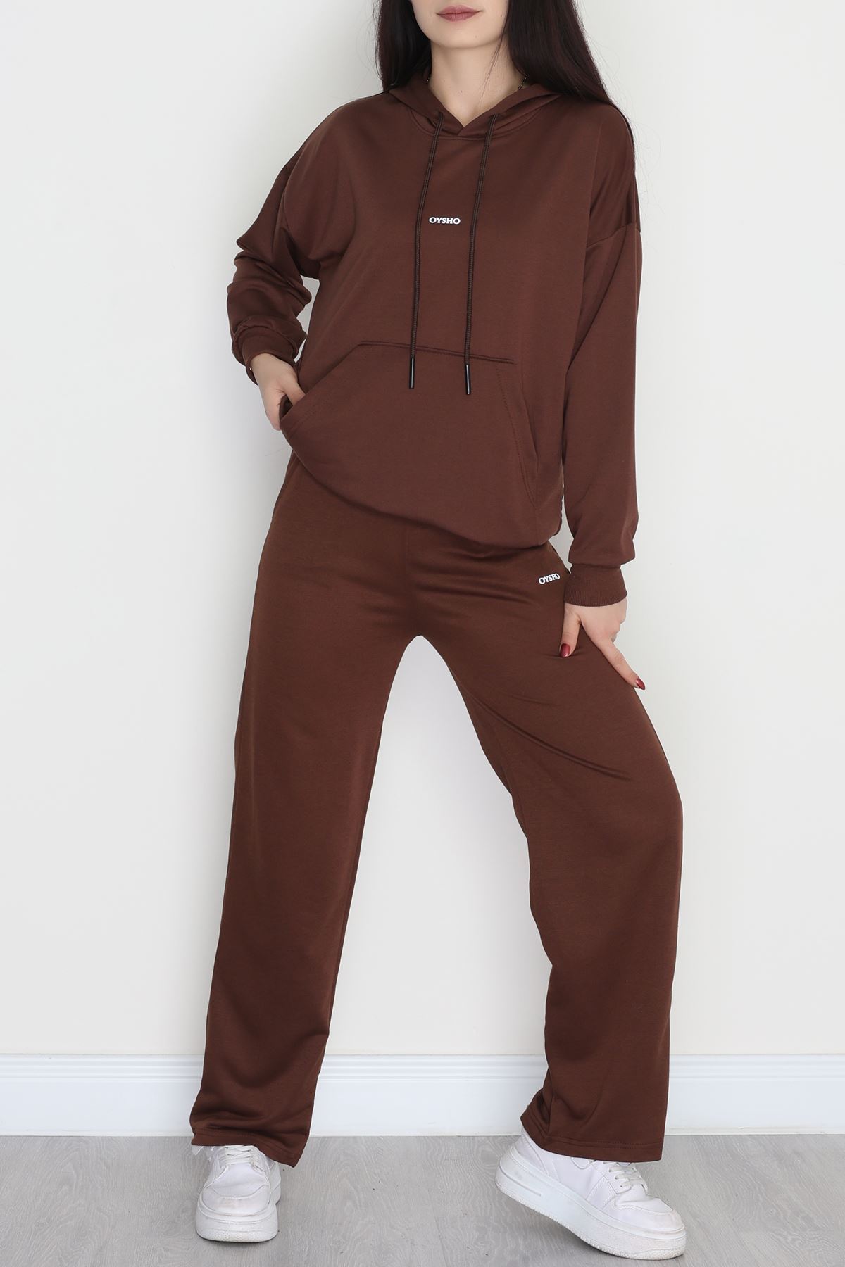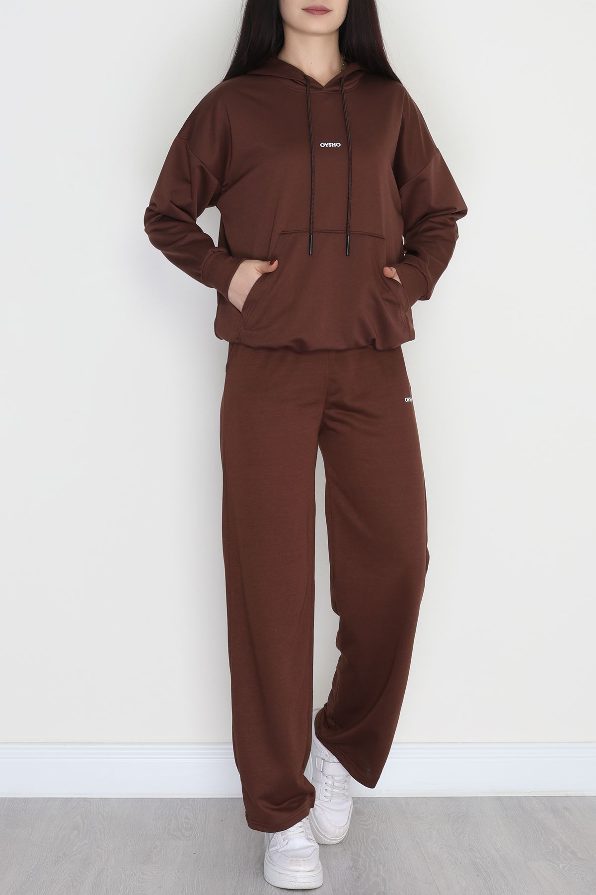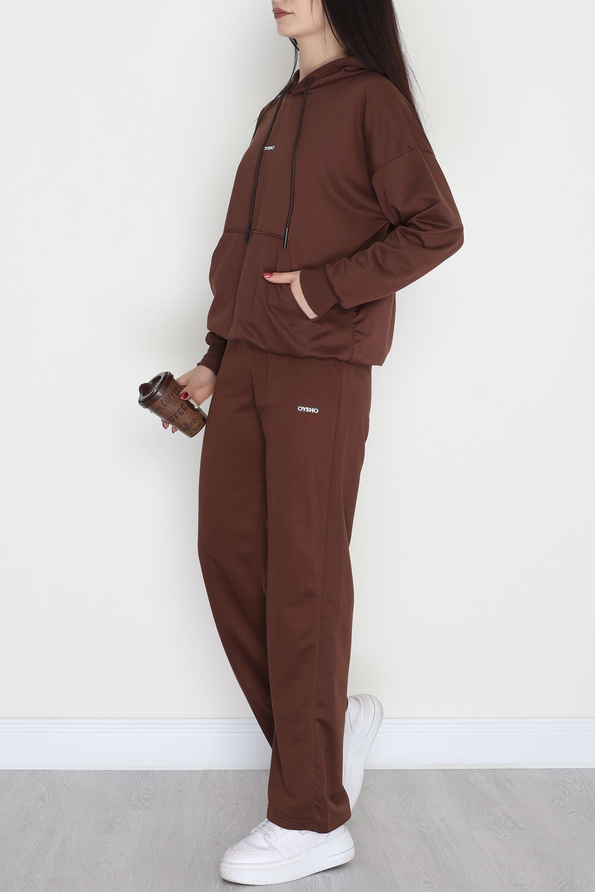 2 İplik Baskılı Eşofman Takımı Acıkahve - 31321.1878.