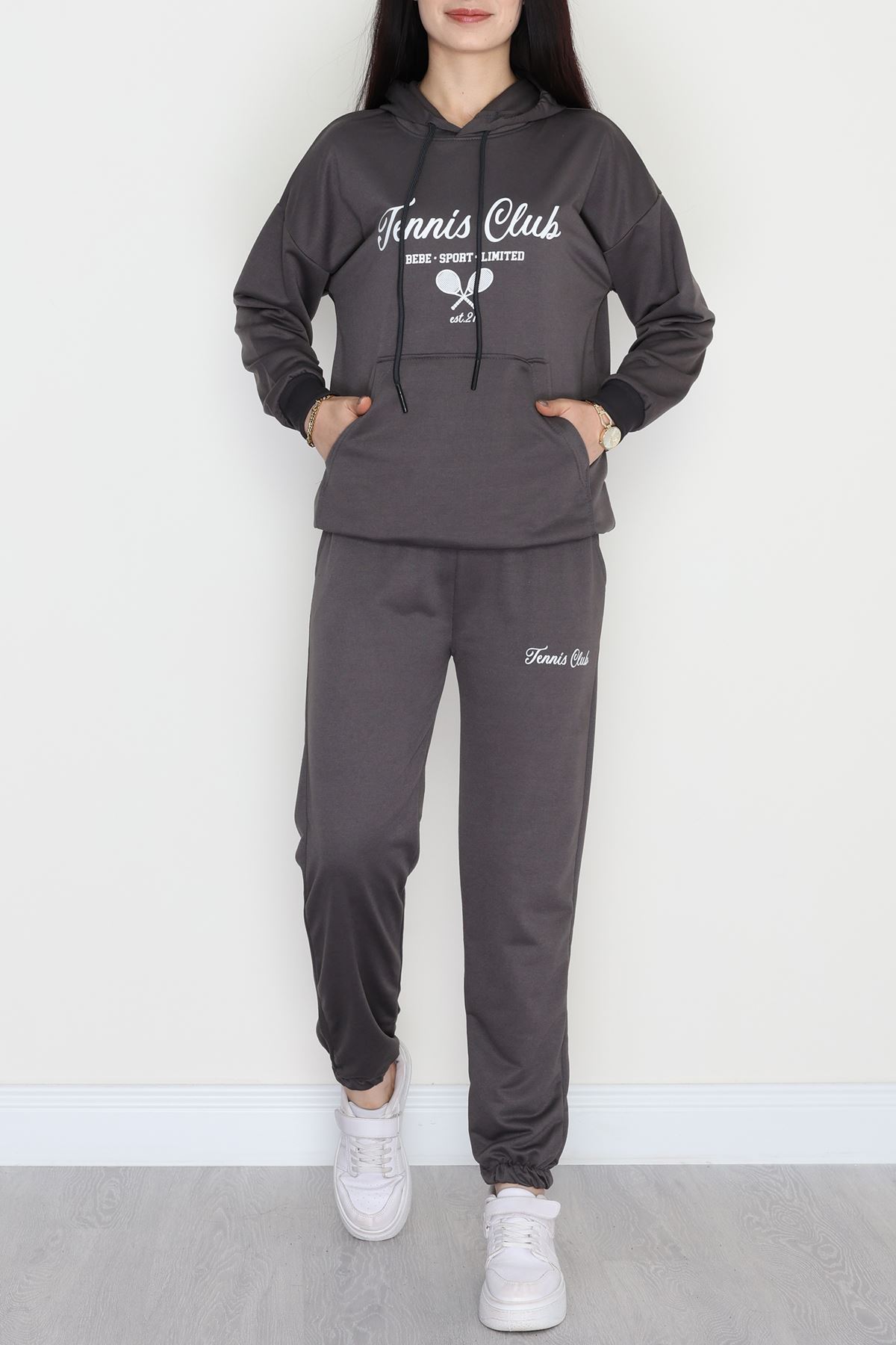 Üç İplik Kanguru Cep Eşofman Takımı Gri - 70777.1878.