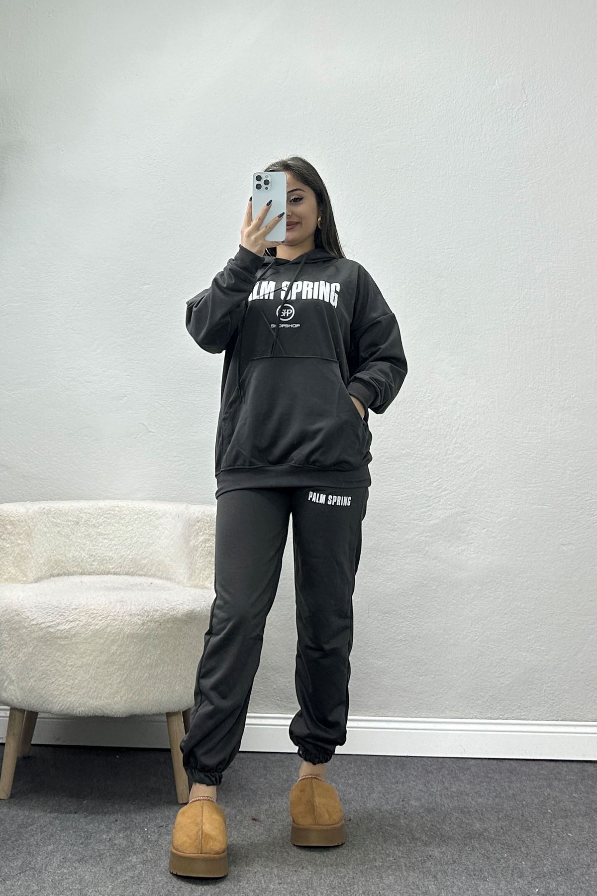 3 İplik Kapşonlu Eşofman Takımı Siyah - 20255.1878.