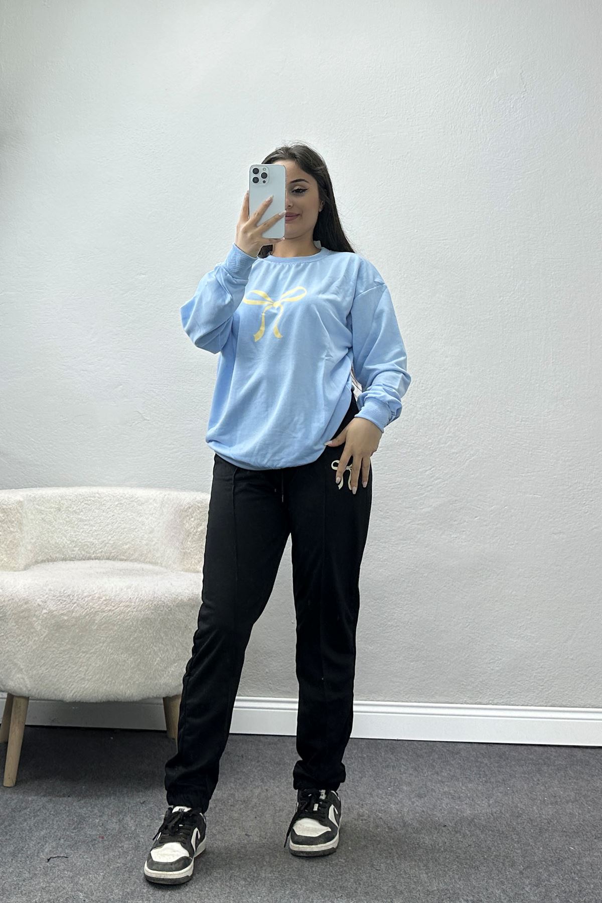 Üç İplik Kanguru Cep Eşofman Takımı Saks - 70777.1878.