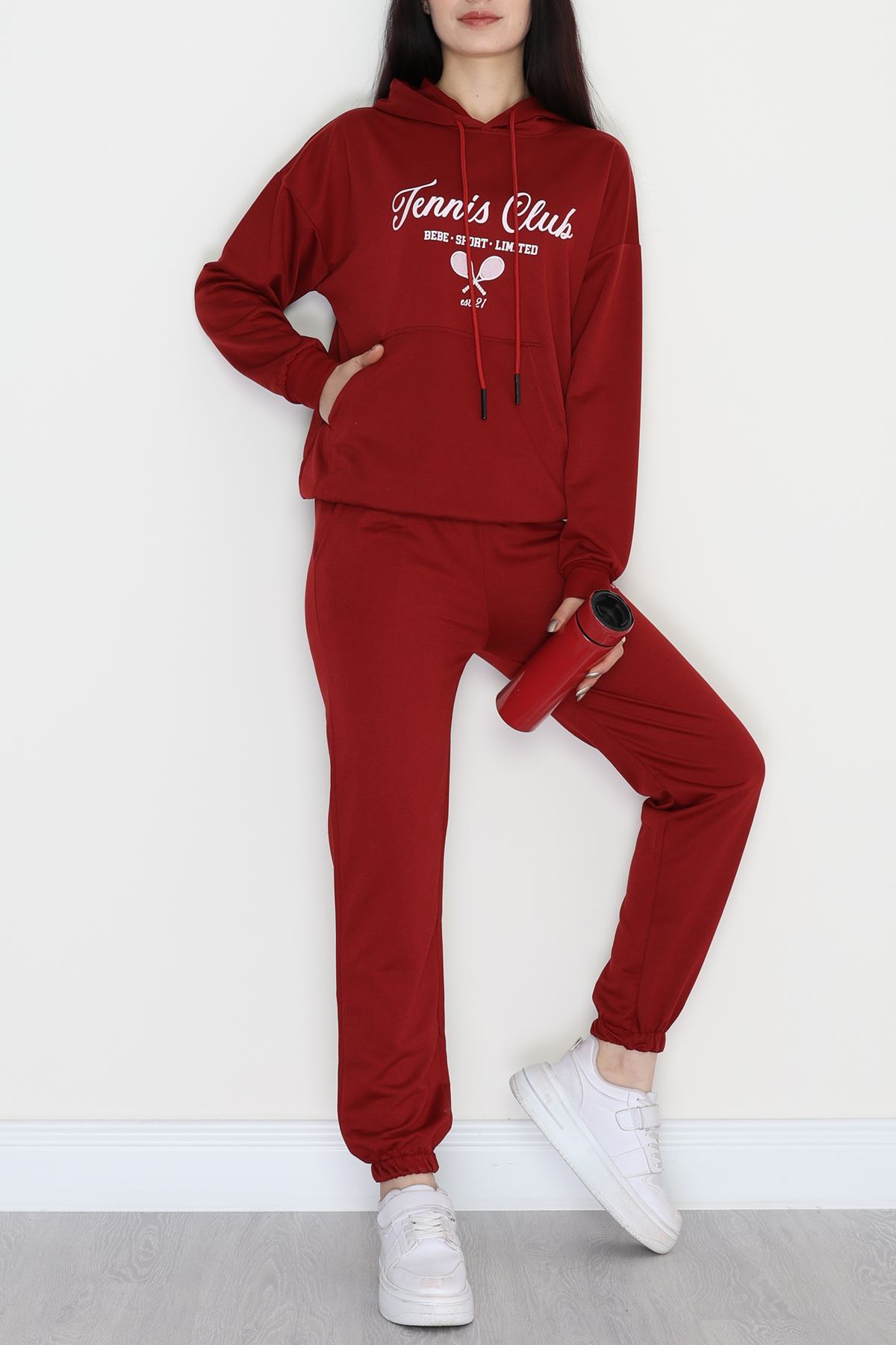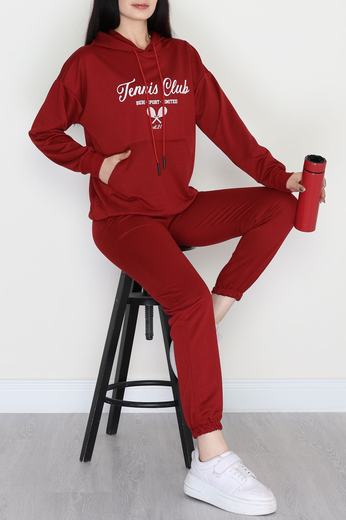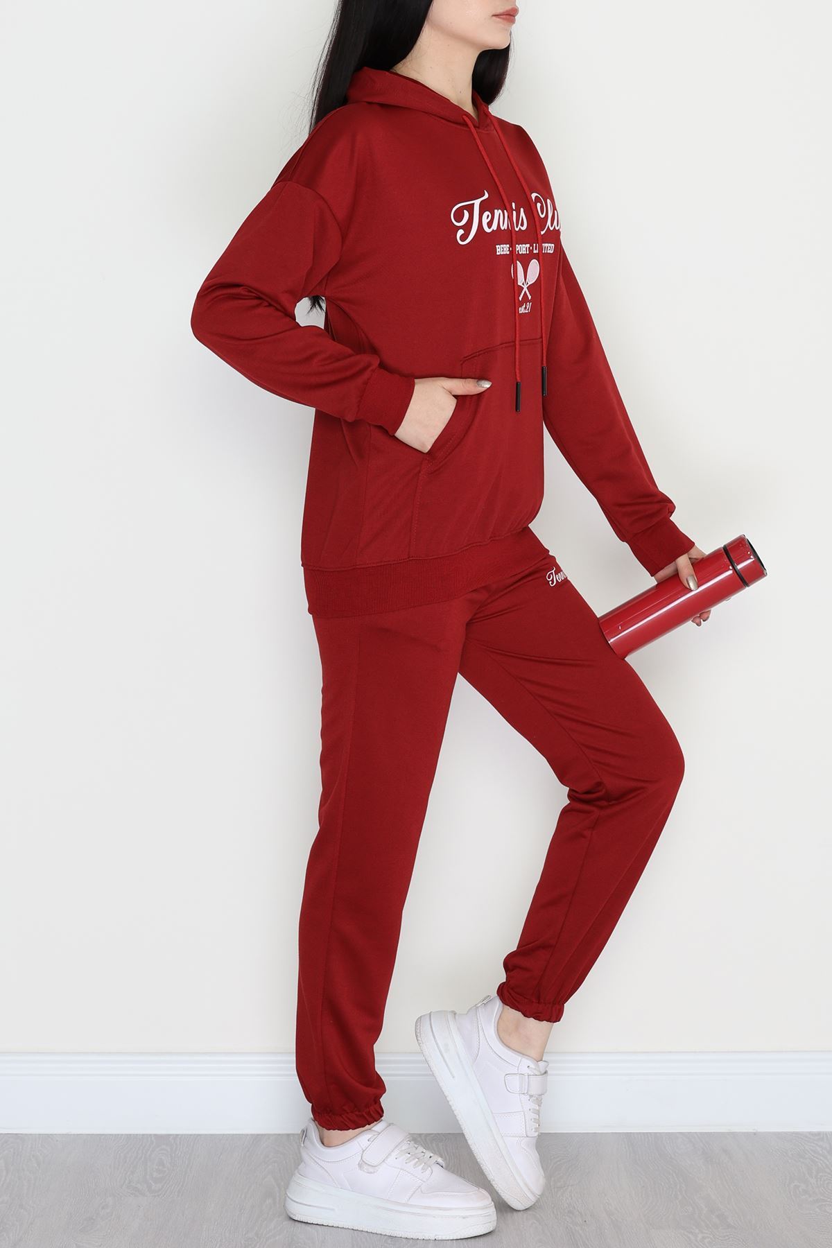 3 İplik Bisiklet Yaka Eşofman Takımı Bordo - 20779.1878.