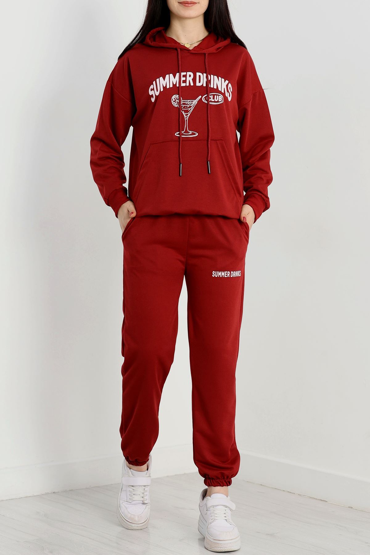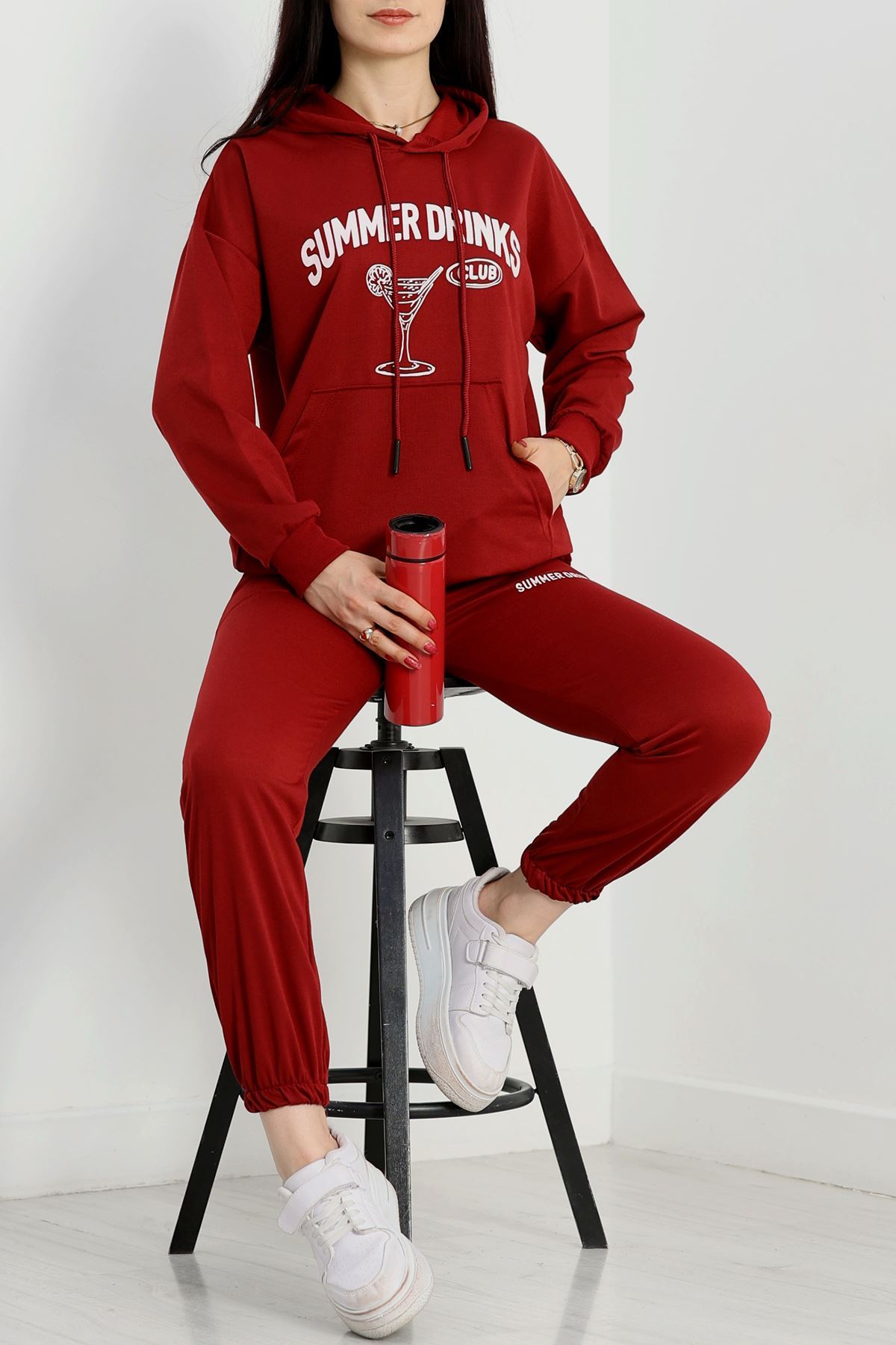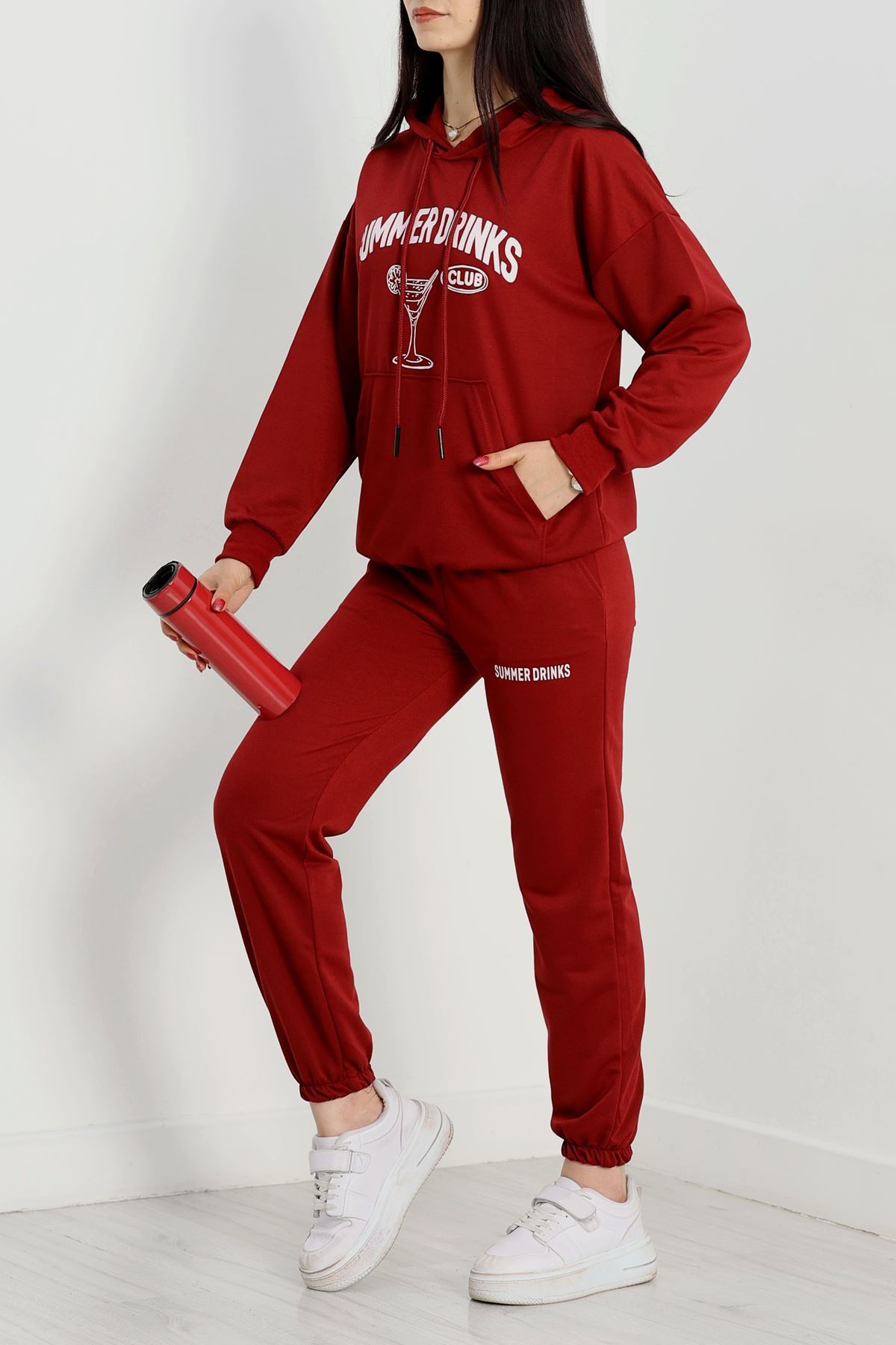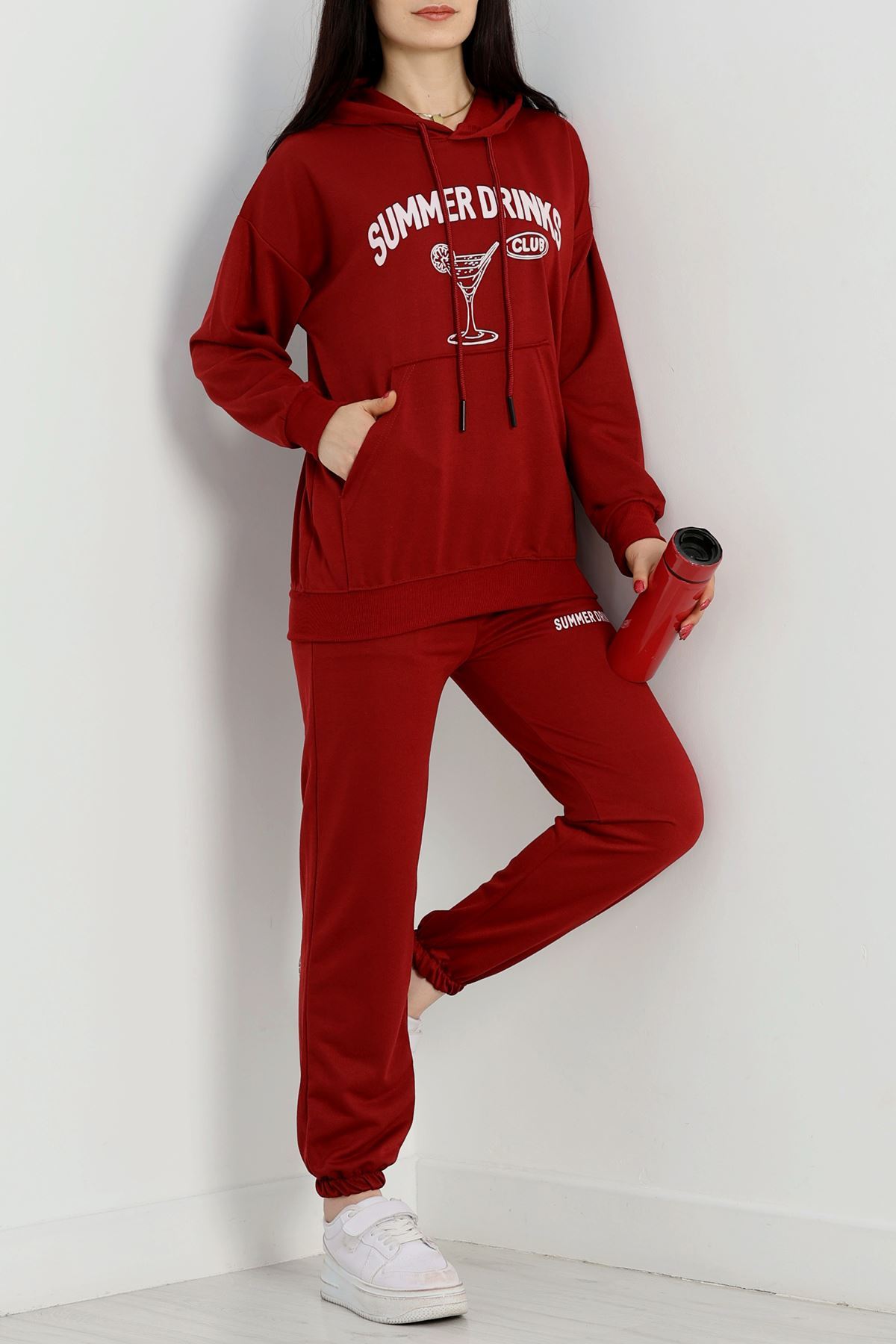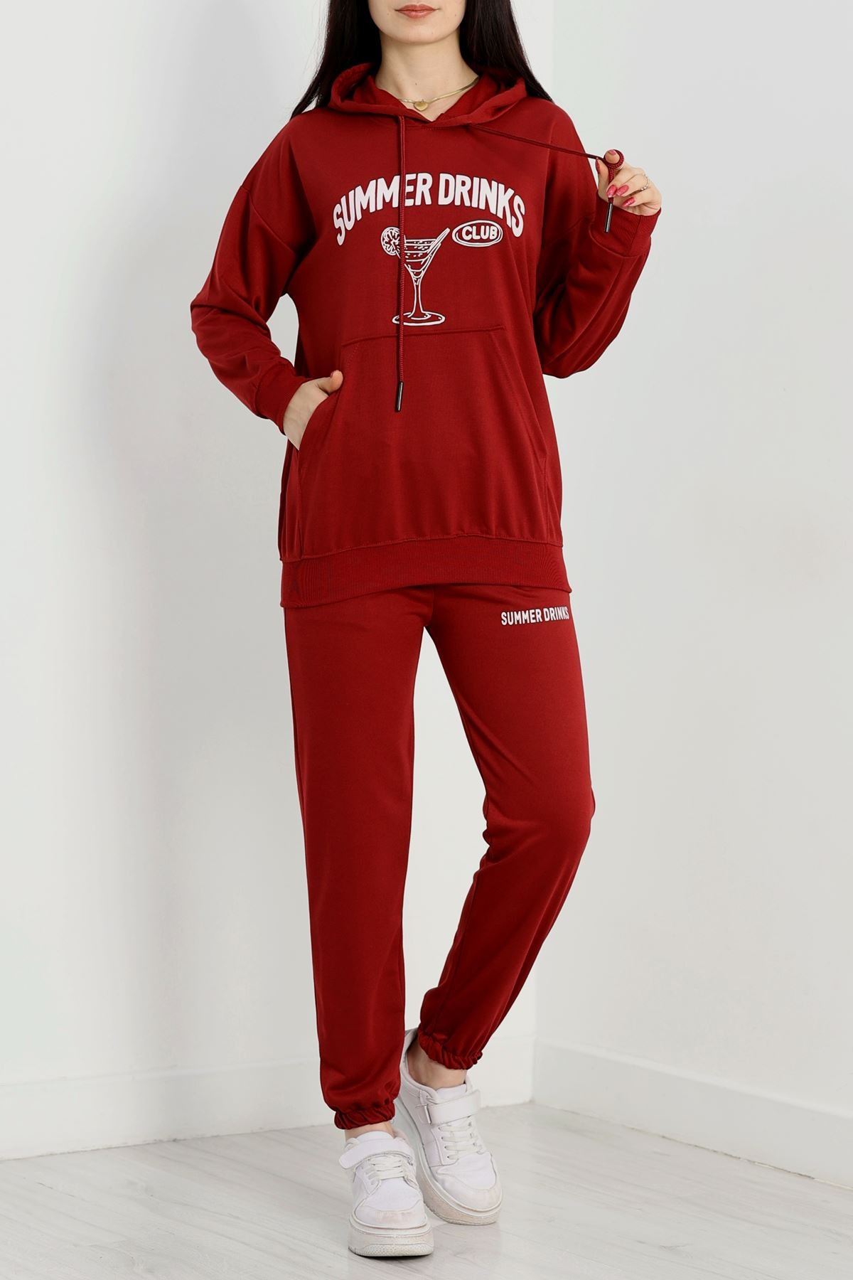 2 İplik Kapşonlu Eşofman Takımı Bordo - 30280.1878.