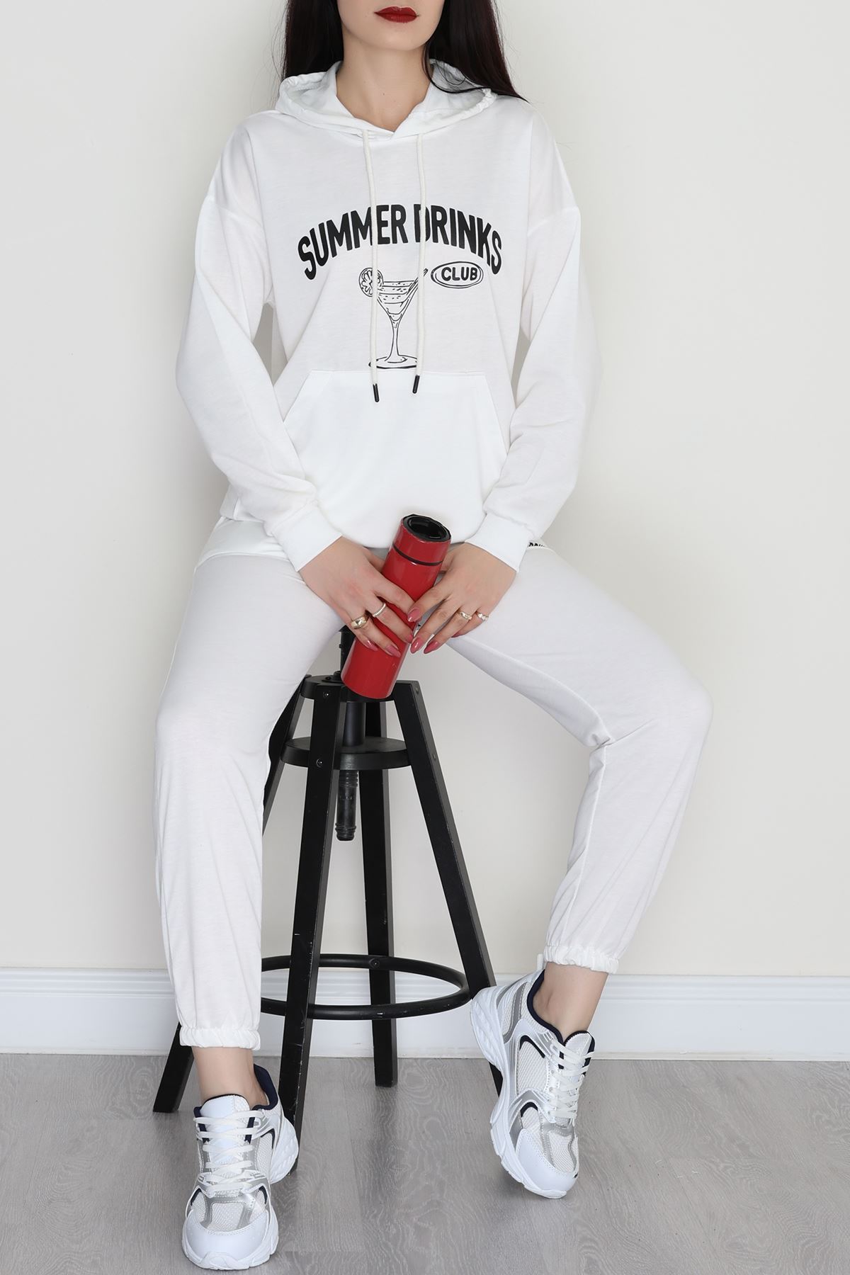 2 İplik Baskılı Eşofman Takımı Ekrusiyah - 31311.1878.