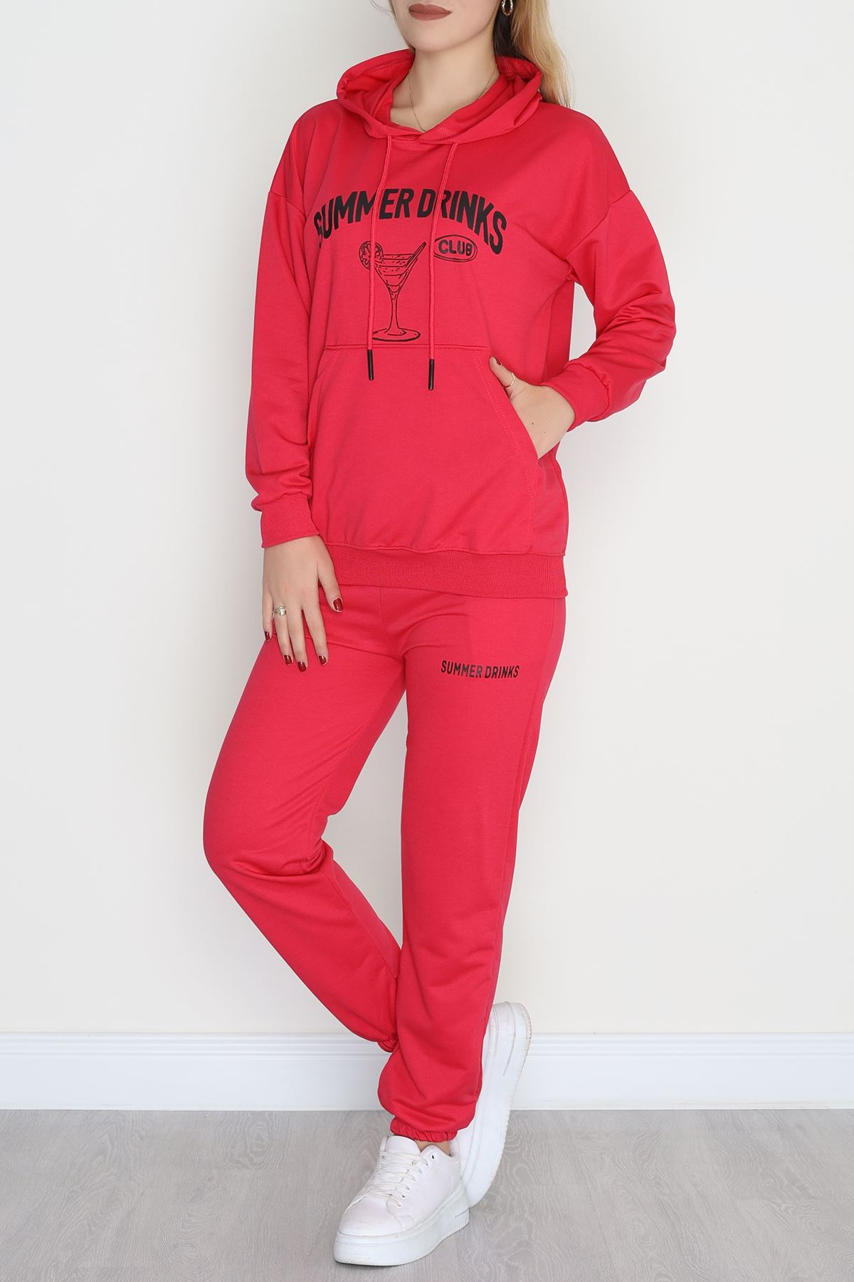 Şeritli Fiyonklu 2 İplik Eşofman Takımı Bordo - 50788.1857.