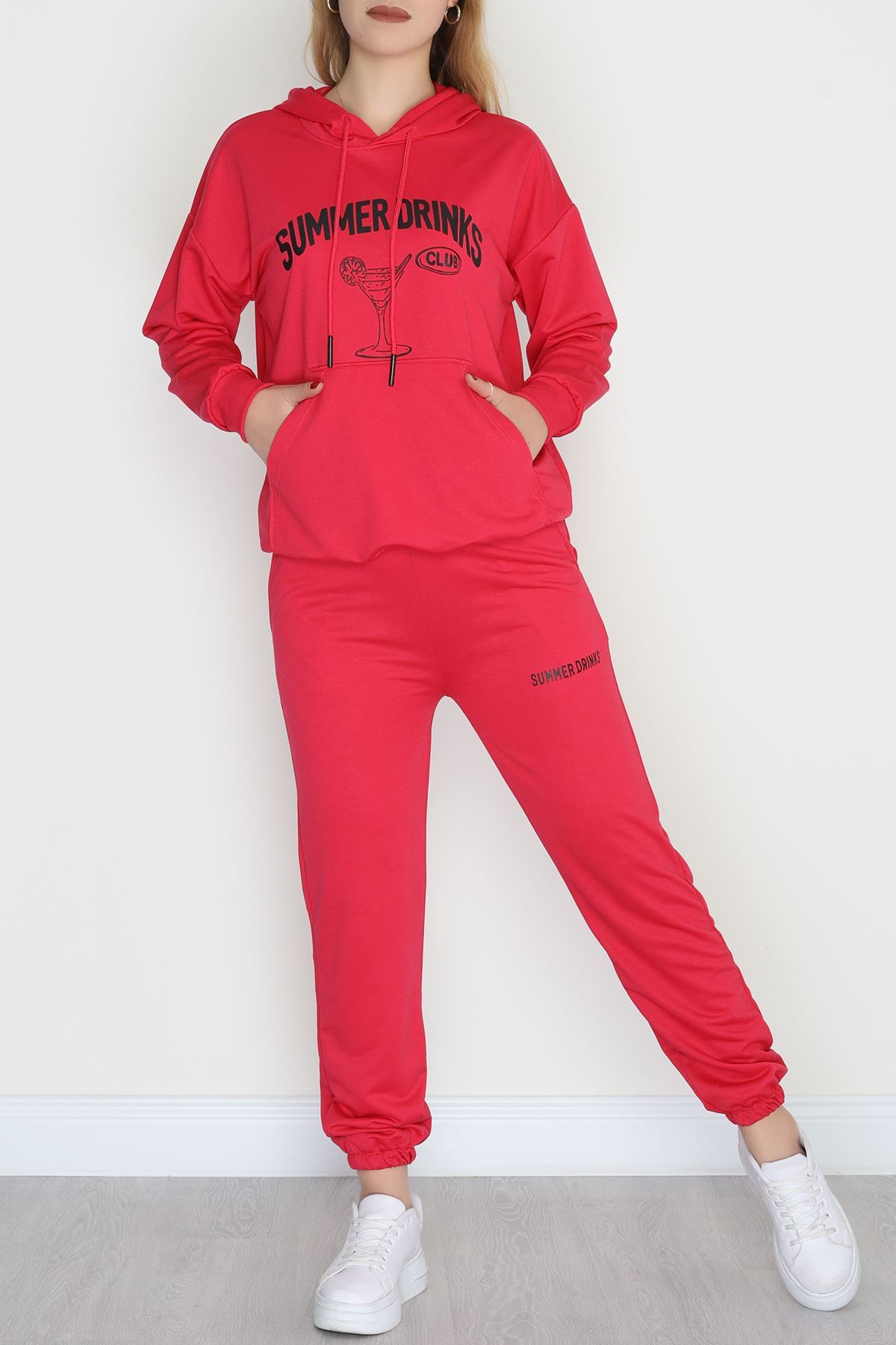 2 İplik Baskılı Eşofman Takımı Fuşyaekru - 31311.1878.