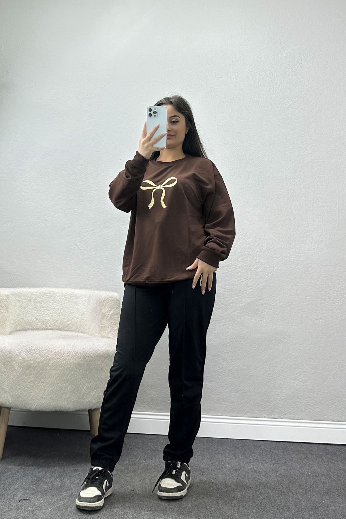 2 İplik Baskılı Eşofman Takımı Kahve - 31297.1878.