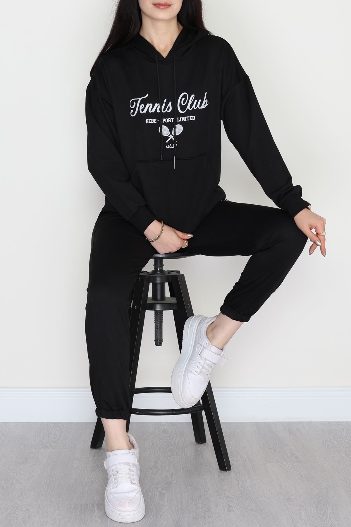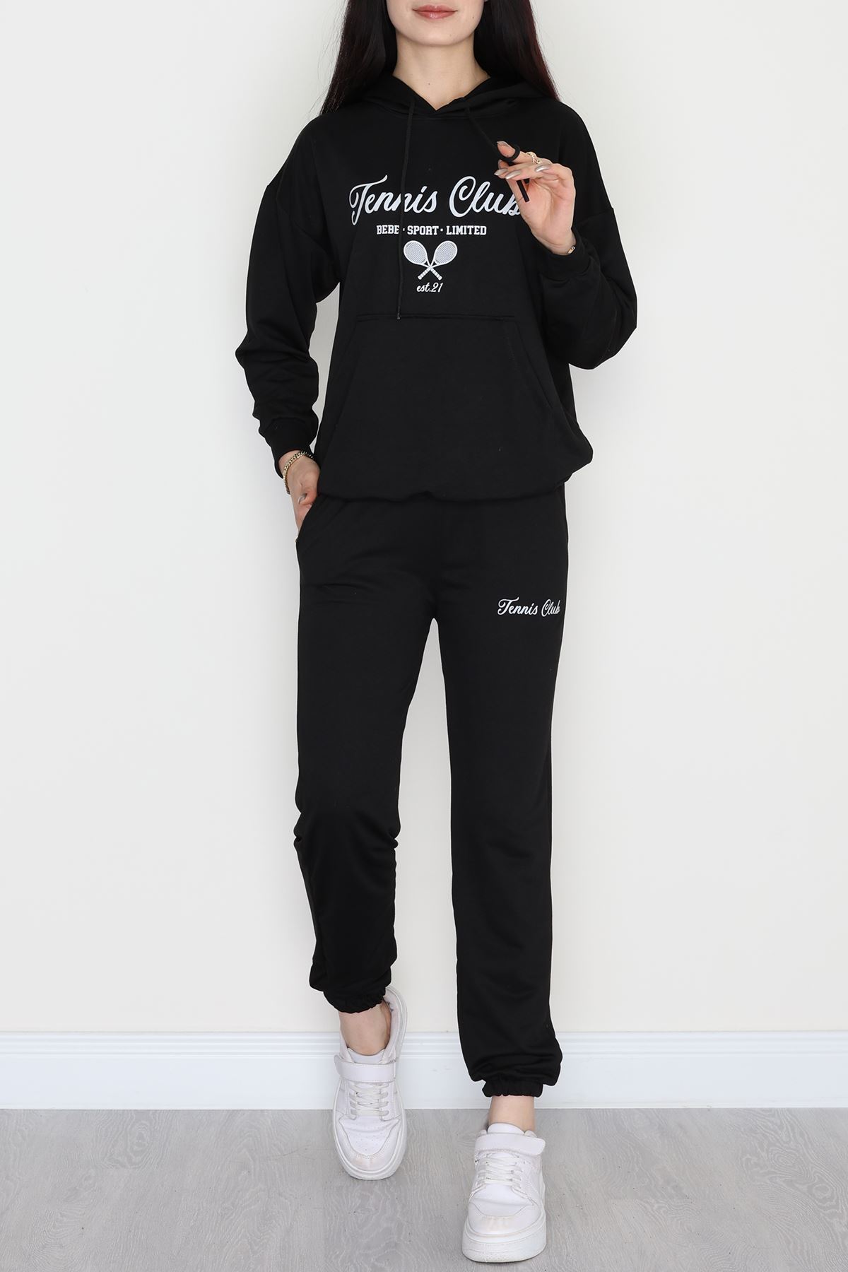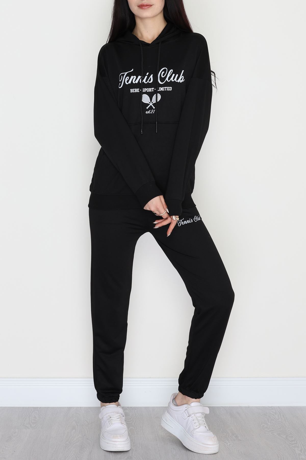 2 İplik Baskılı Eşofman Takımı Siyah - 31313.1878.