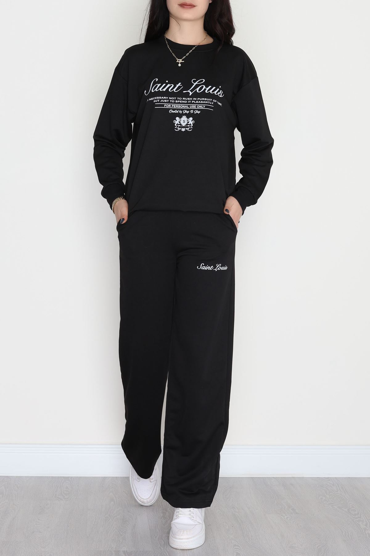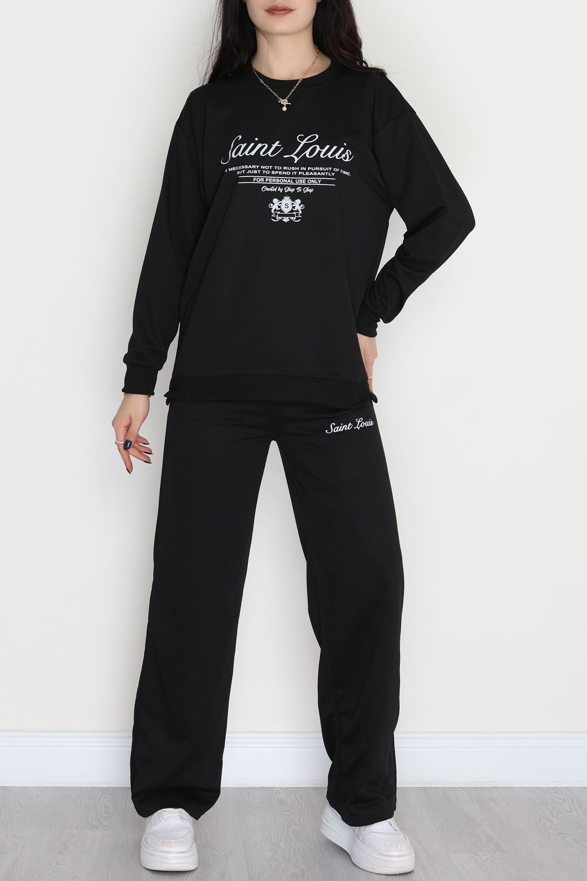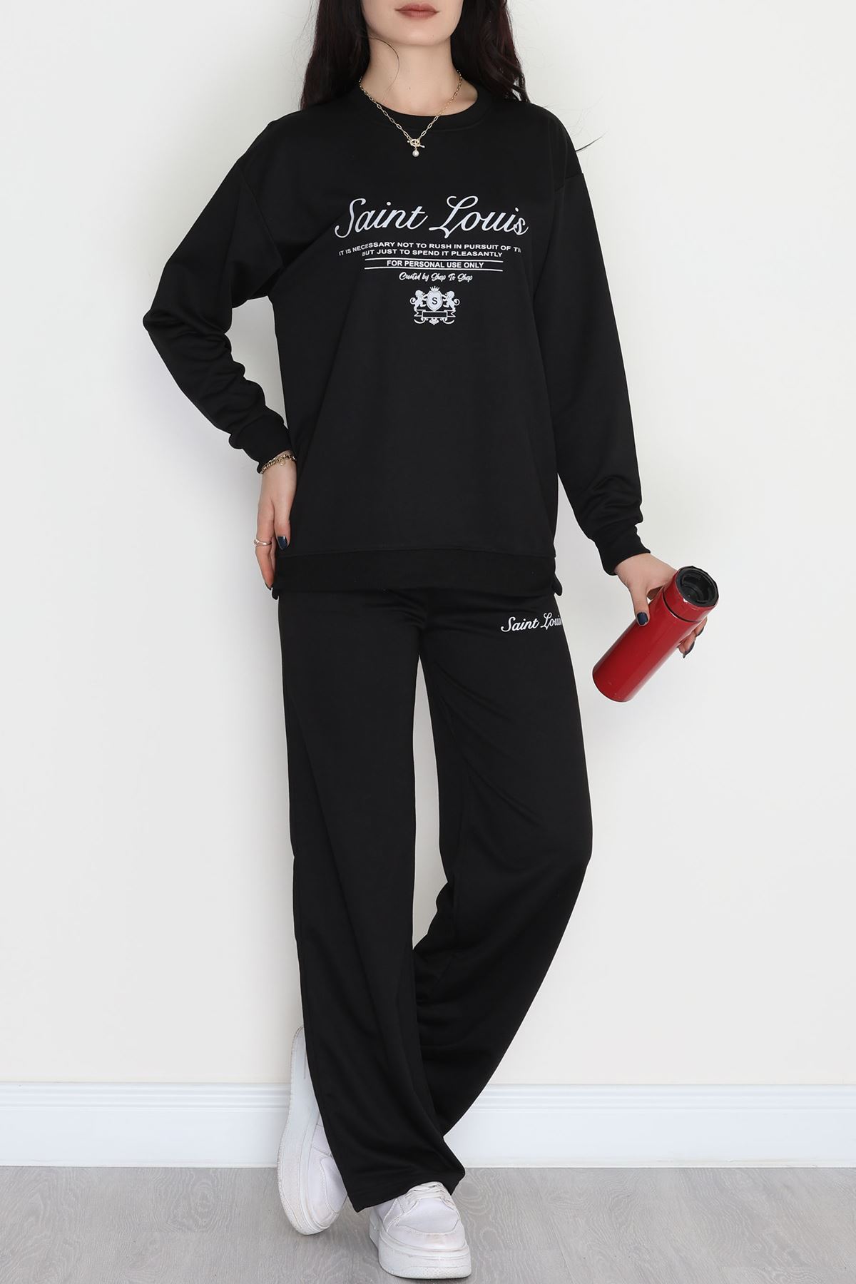2 İplik Baskılı Eşofman Takımı Siyah - 31312.1878.