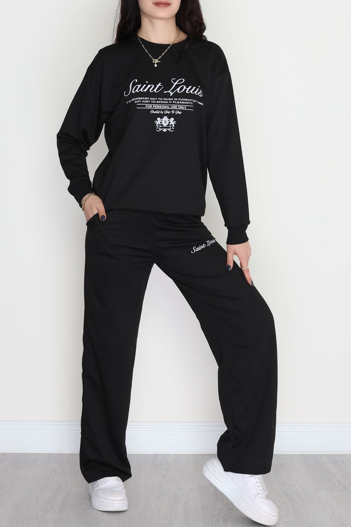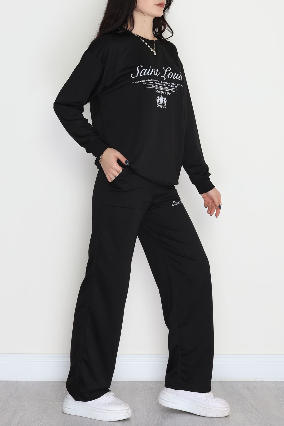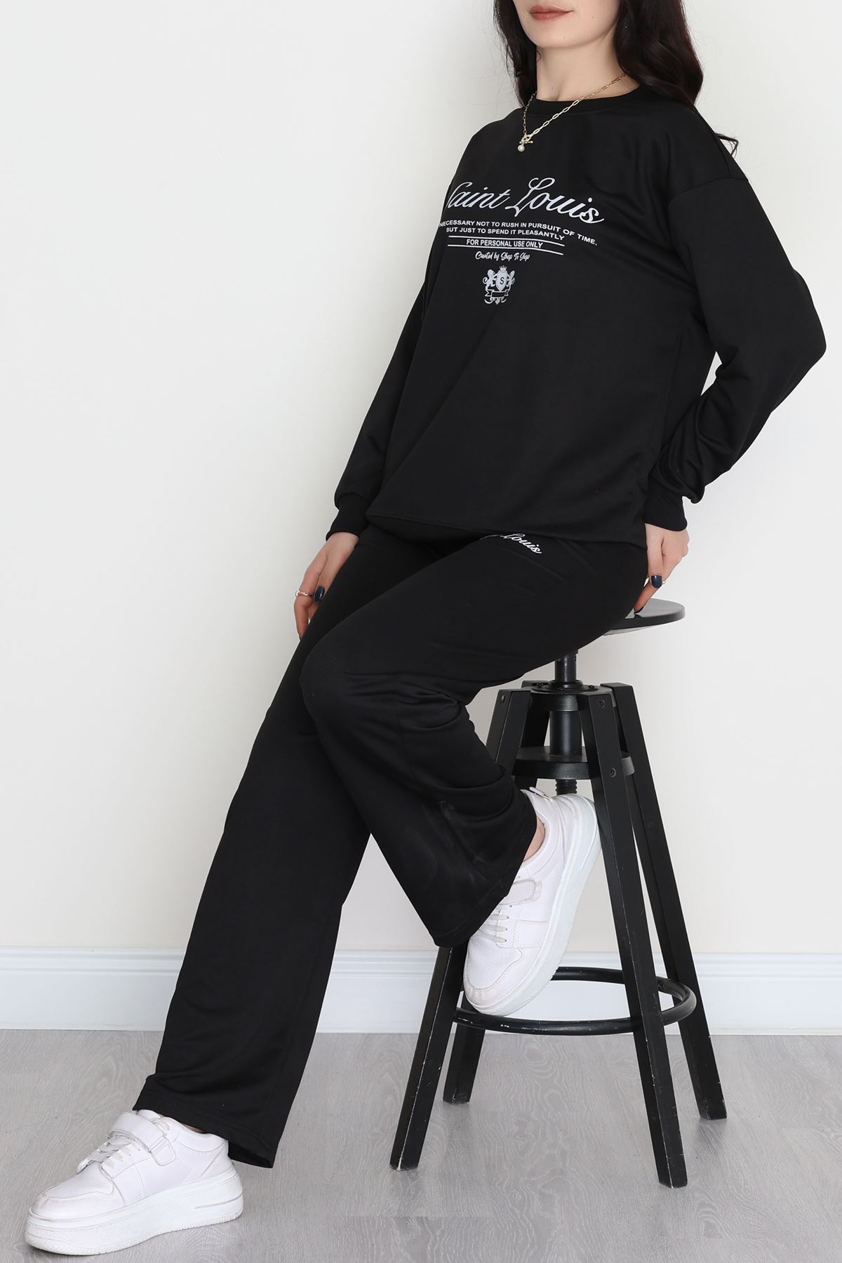 2 İplik Baskılı Eşofman Takımı Siyah - 31312.1878.