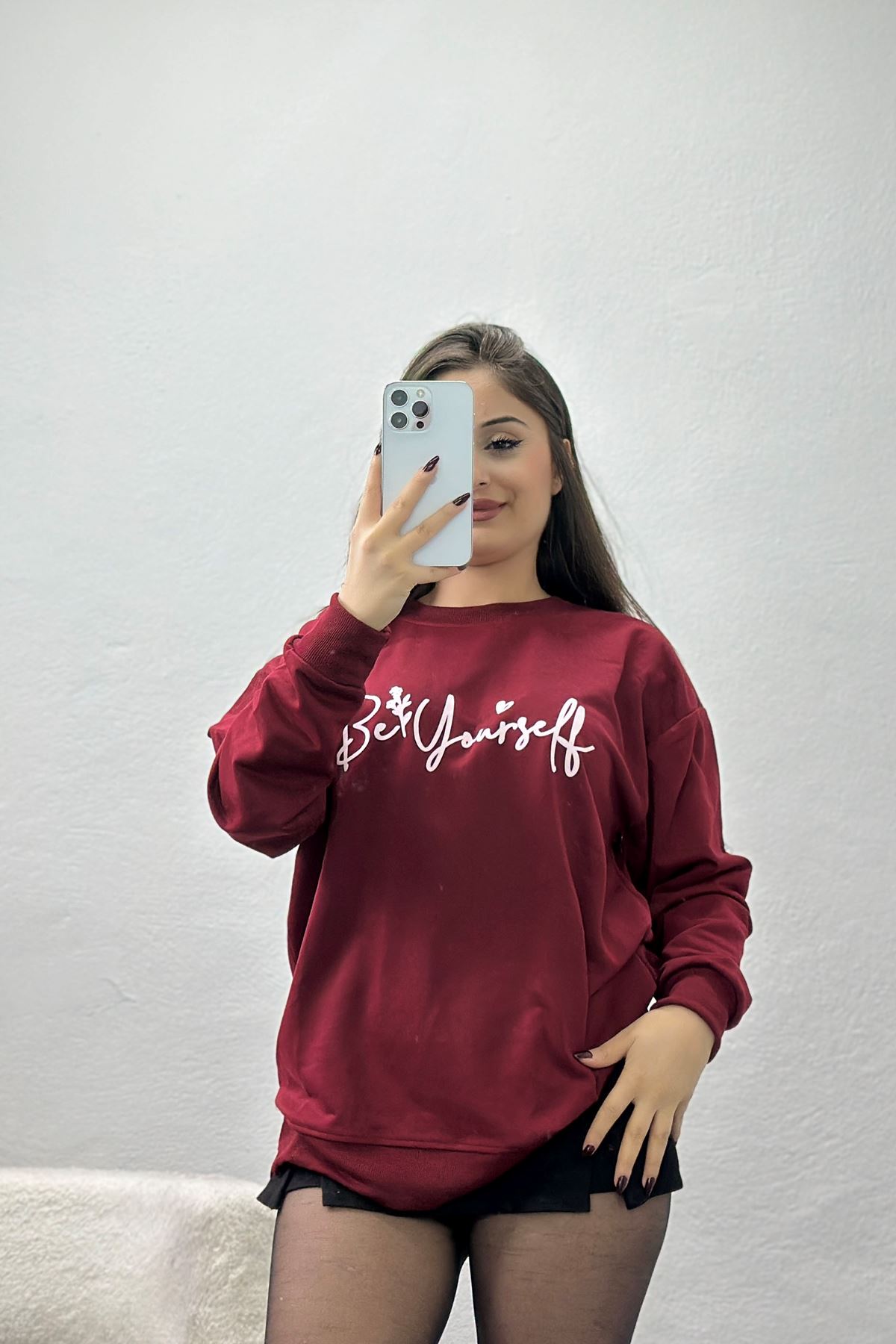 2 İplik Baskılı Sweatshirt Bordoekru - 31299.1878.