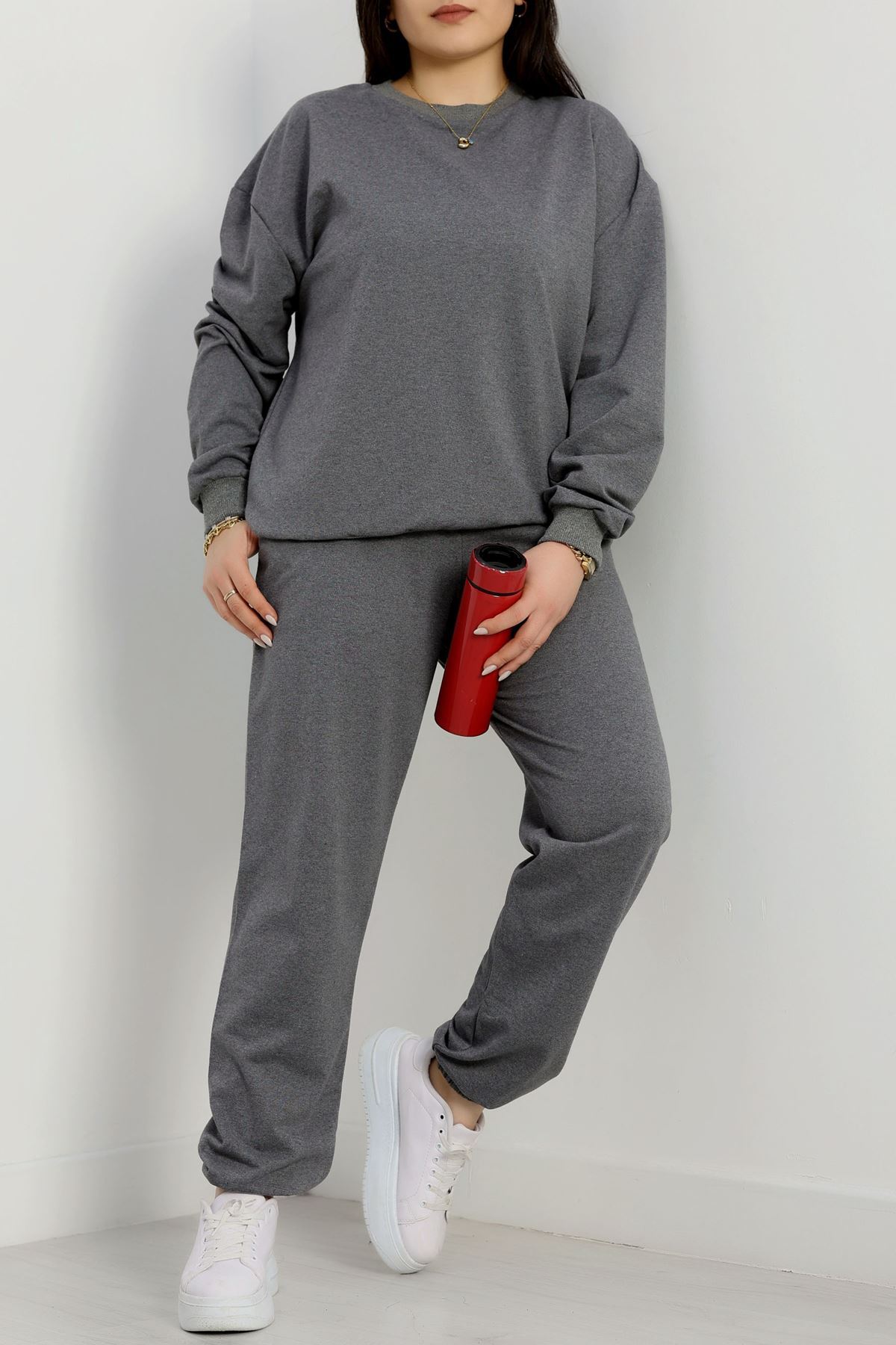 3 İplik Bisiklet Yaka Eşofman Takımı Antrasit - 20779.1878.