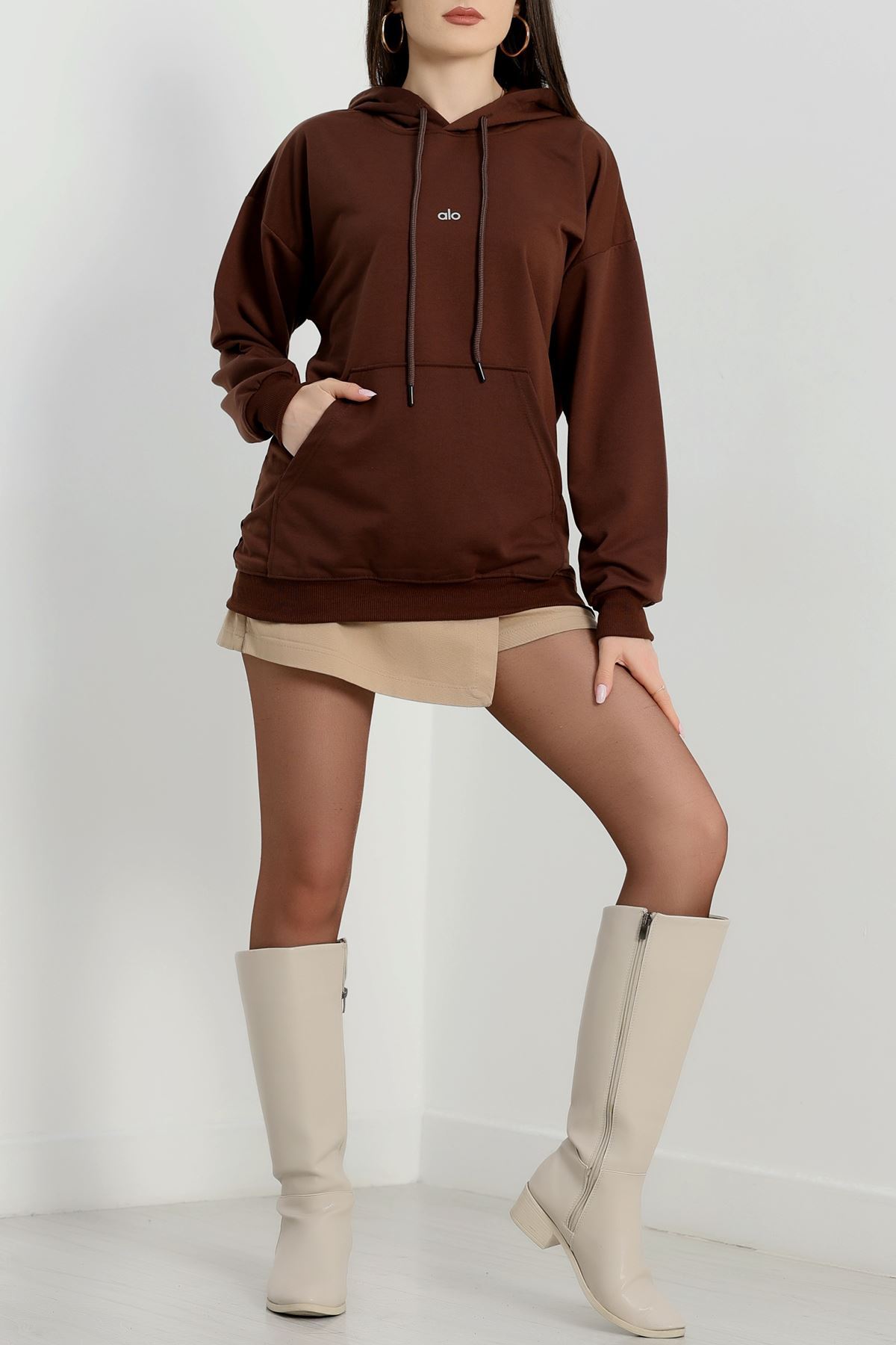 3 İplik Kompakt Oversize Fleto Cepli Sweat Kahve - 42506.1878.
