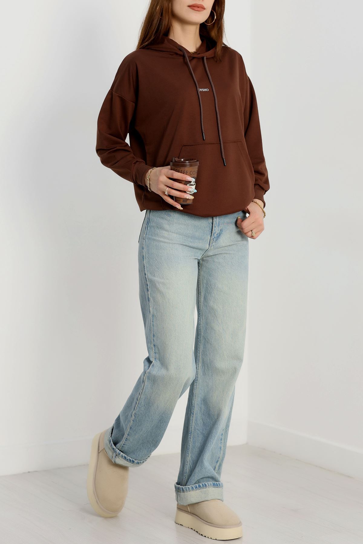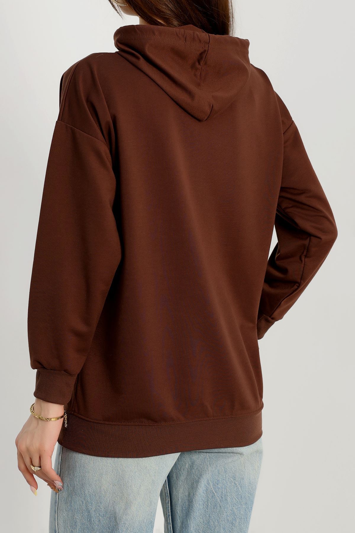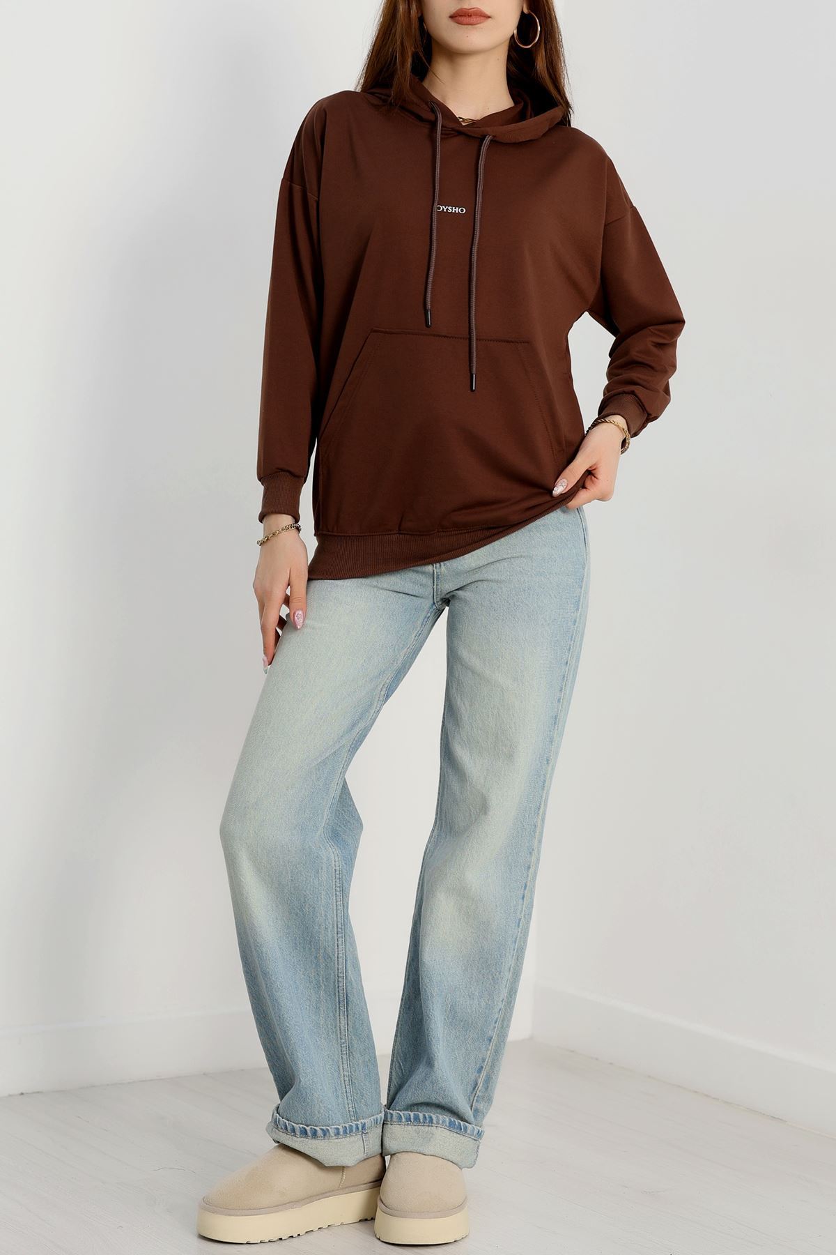 2 İplik Kapşonlu Baskılı Sweatshirt Acıkahve - 31316.1878.