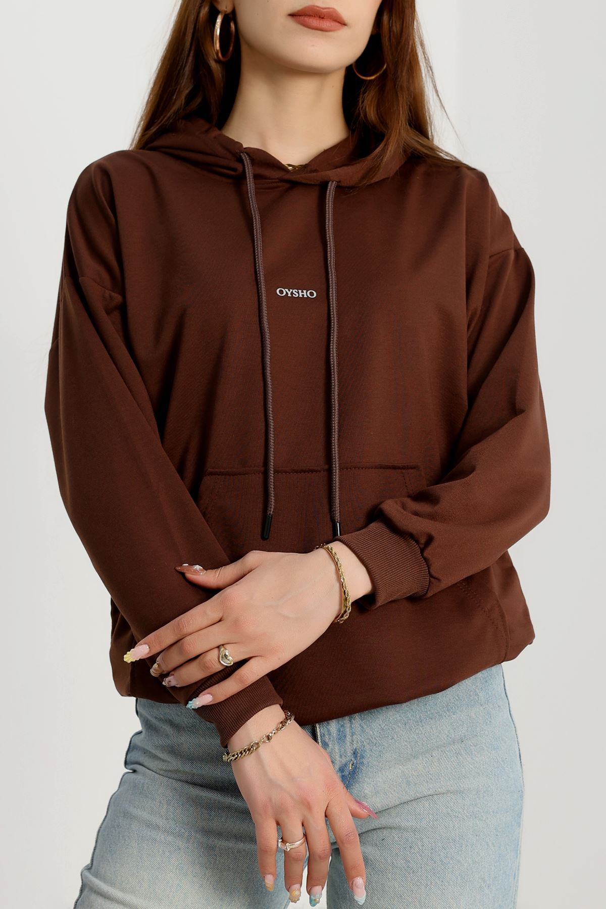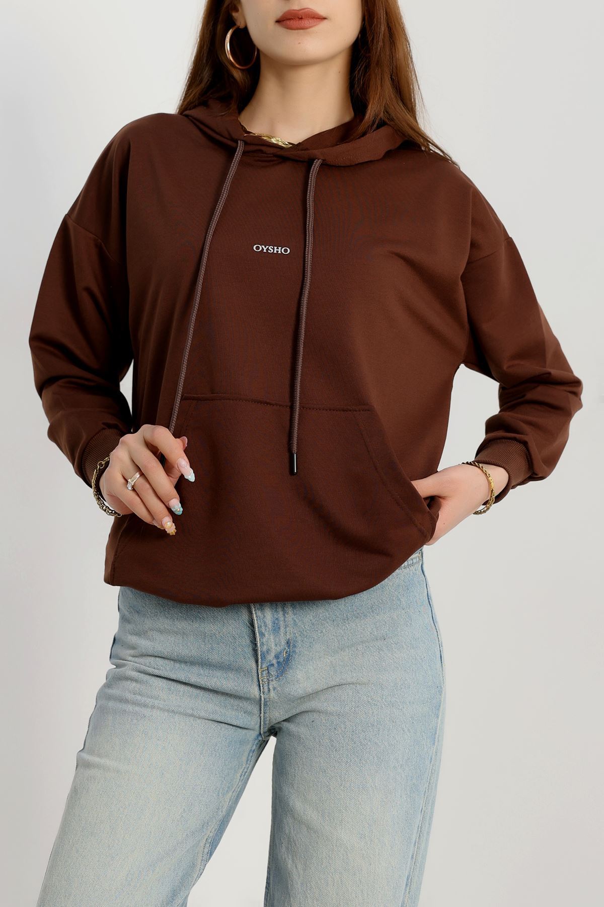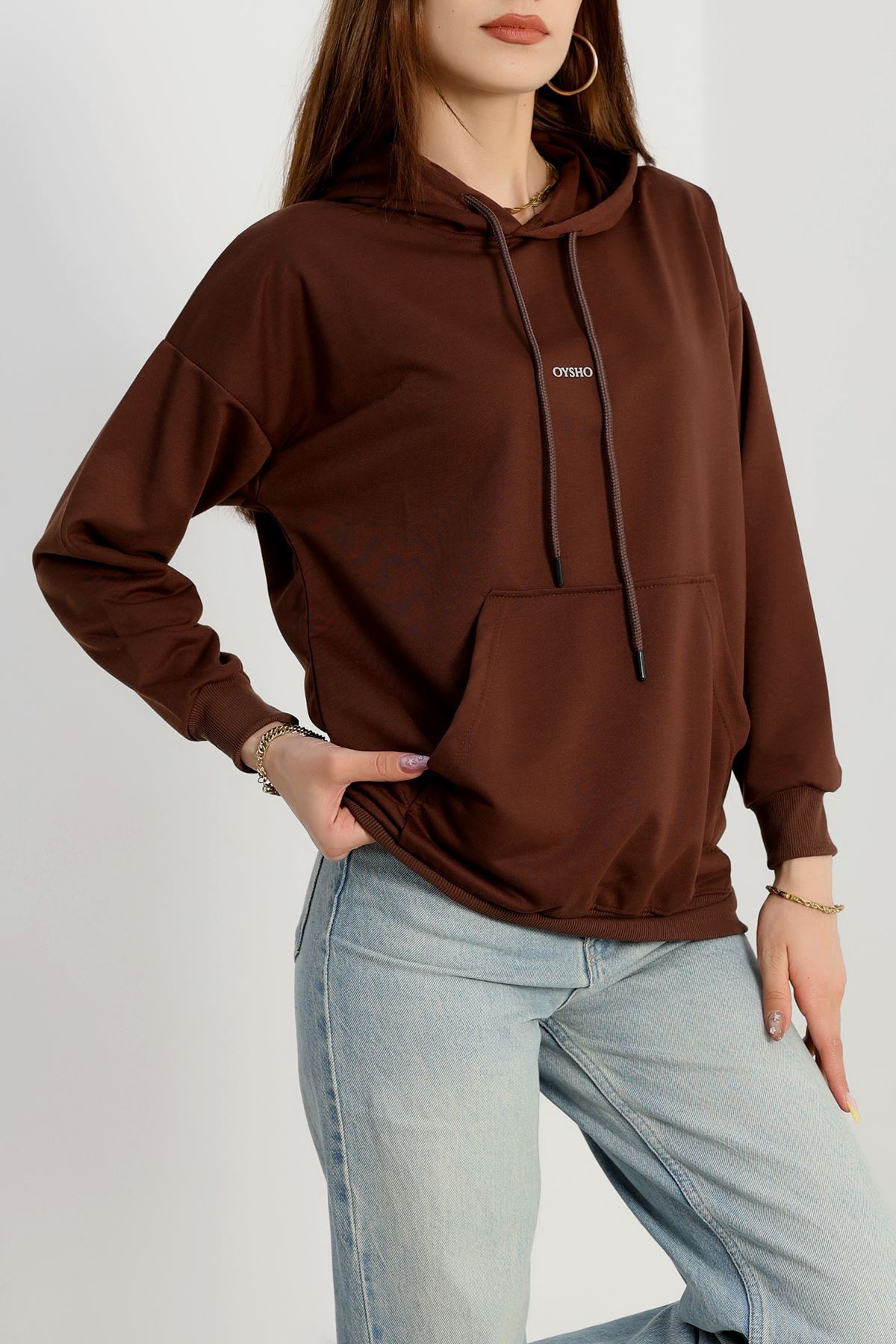 2 İplik Kapşonlu Baskılı Sweatshirt Acıkahve - 31316.1878.