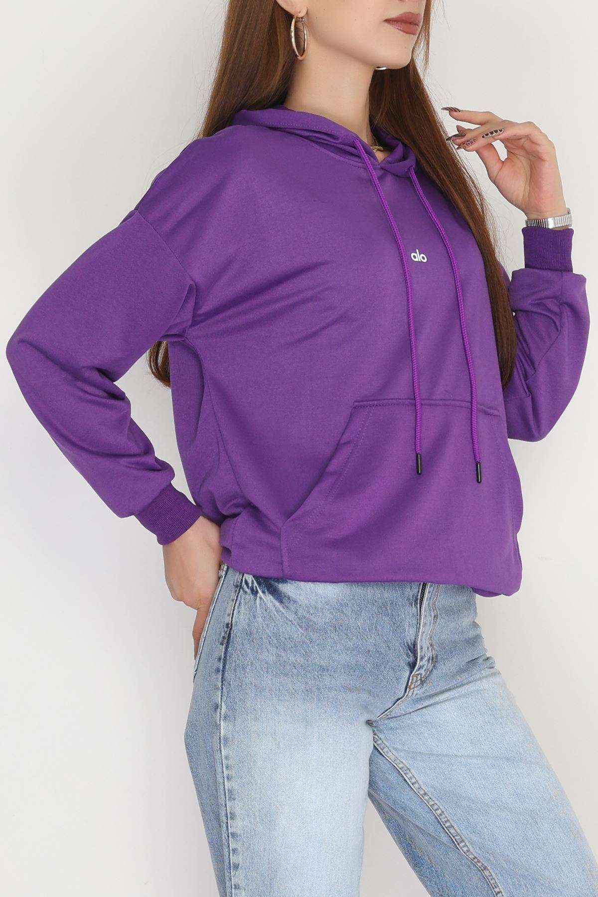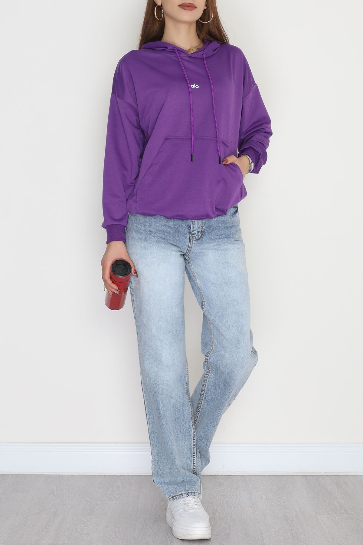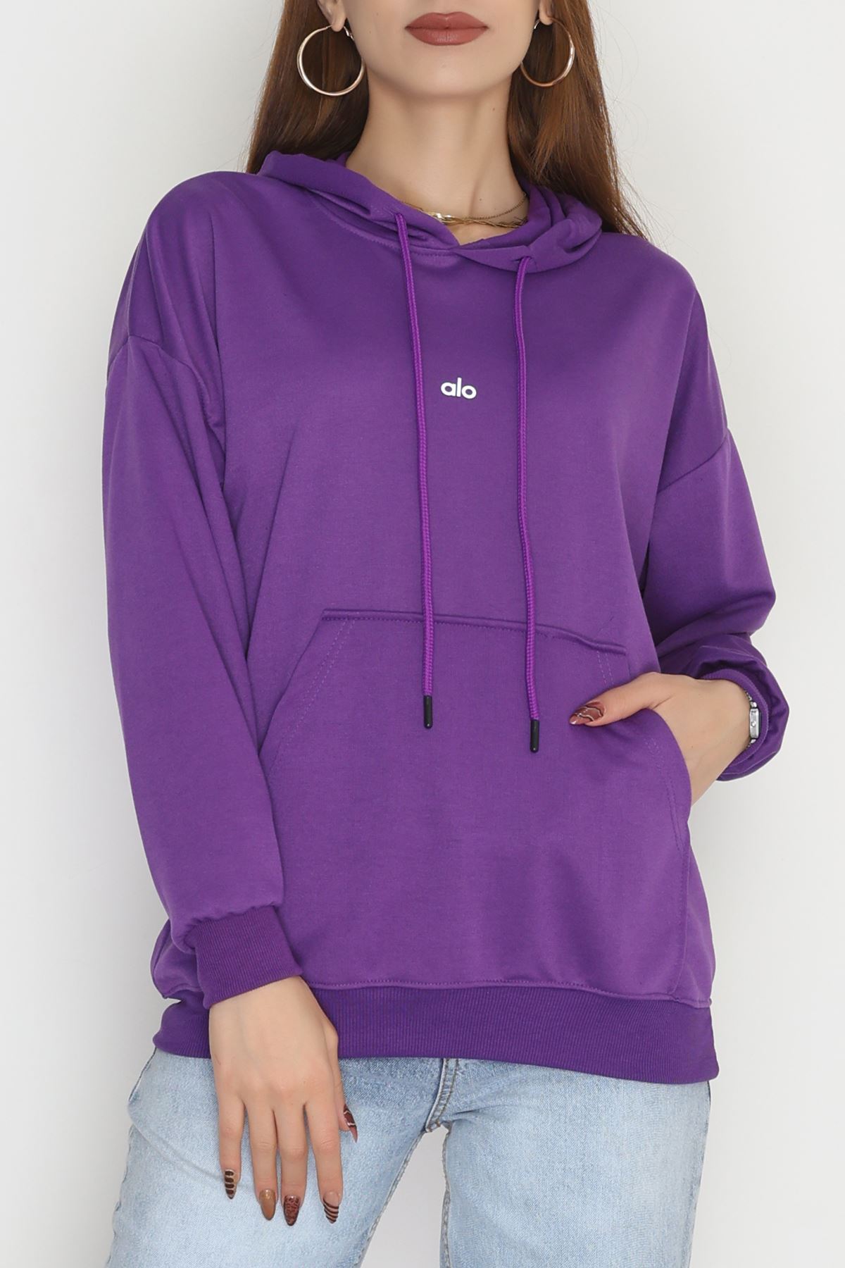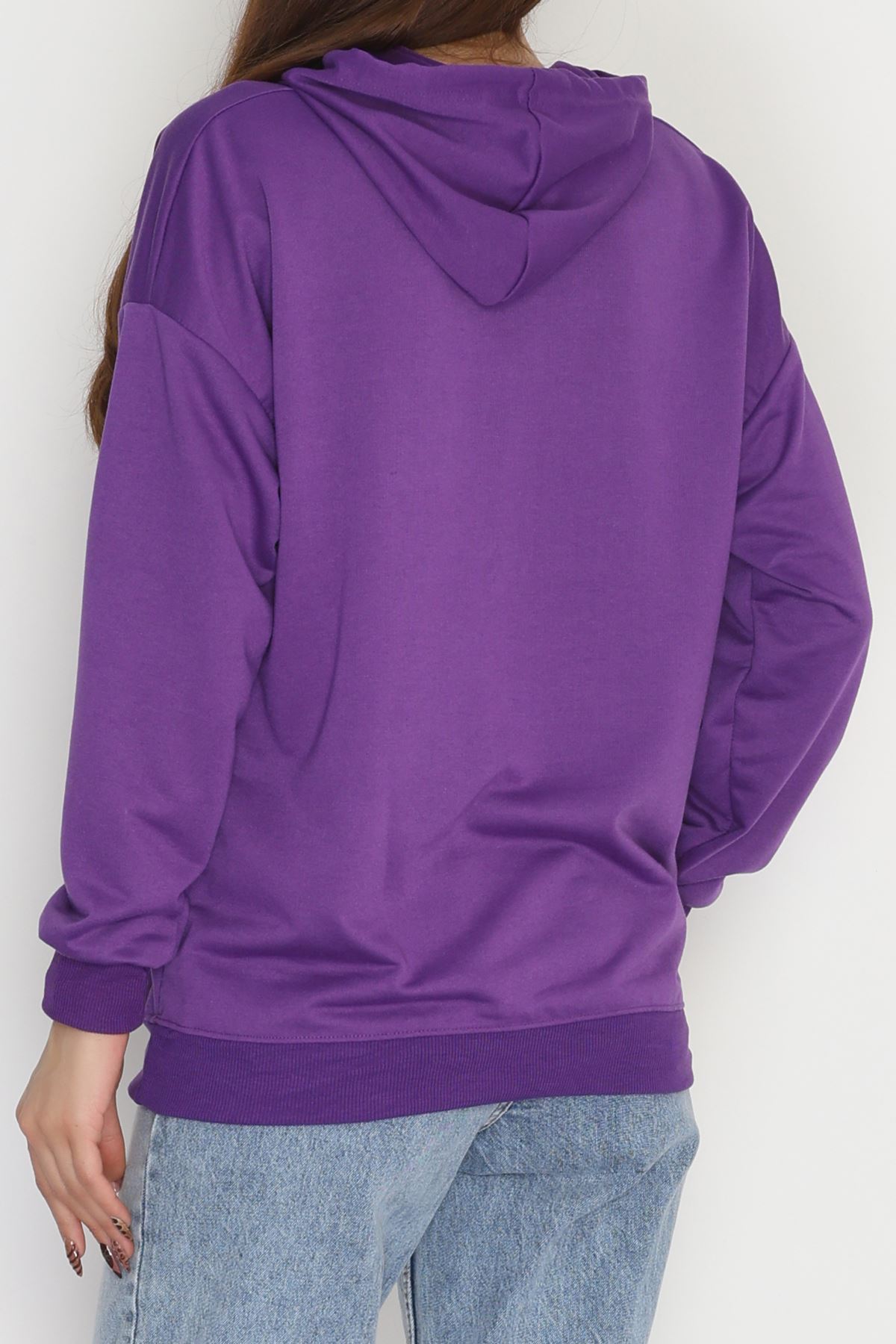 2 İplik Kapşonlu Baskılı Sweatshirt Mor - 31315.1878.