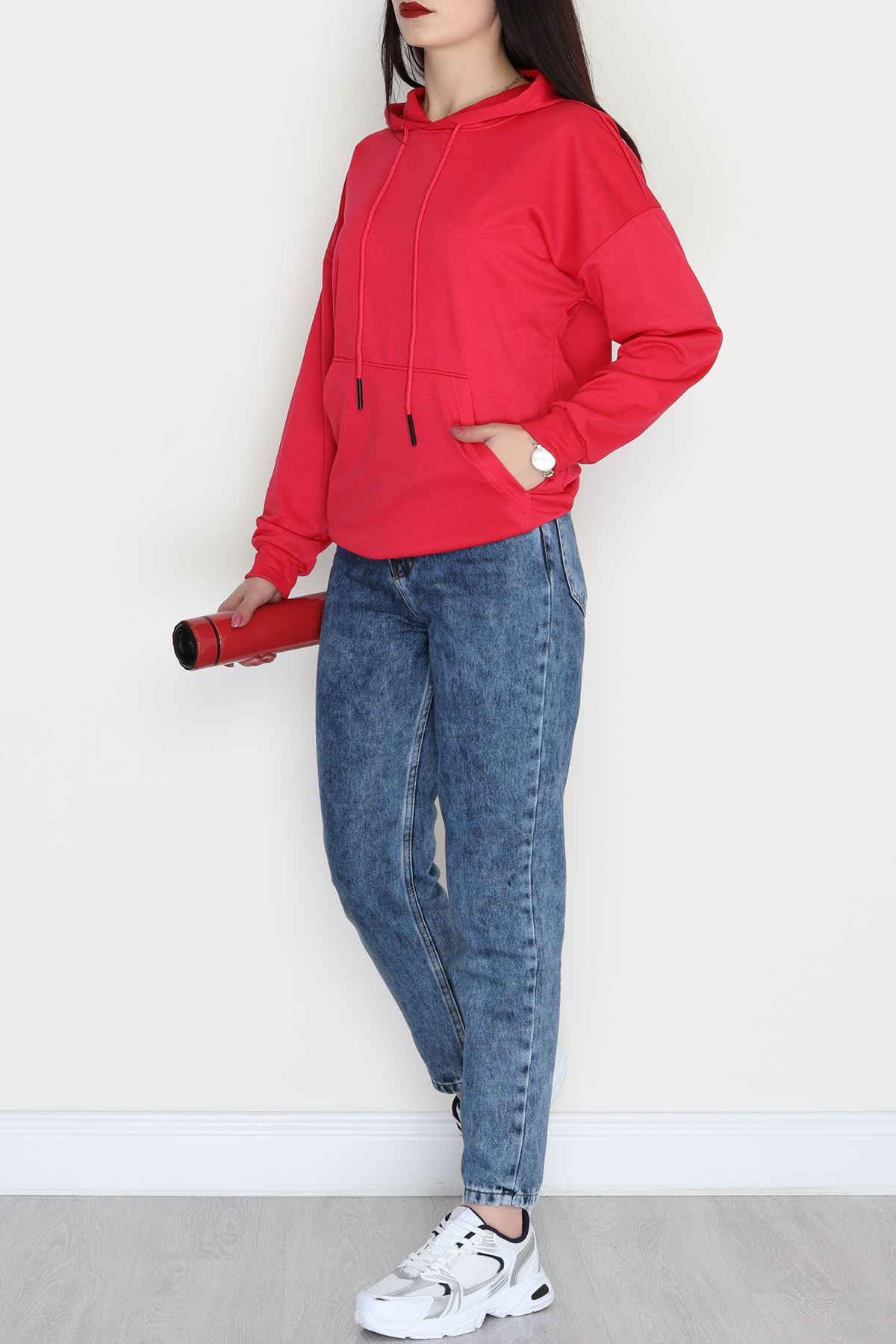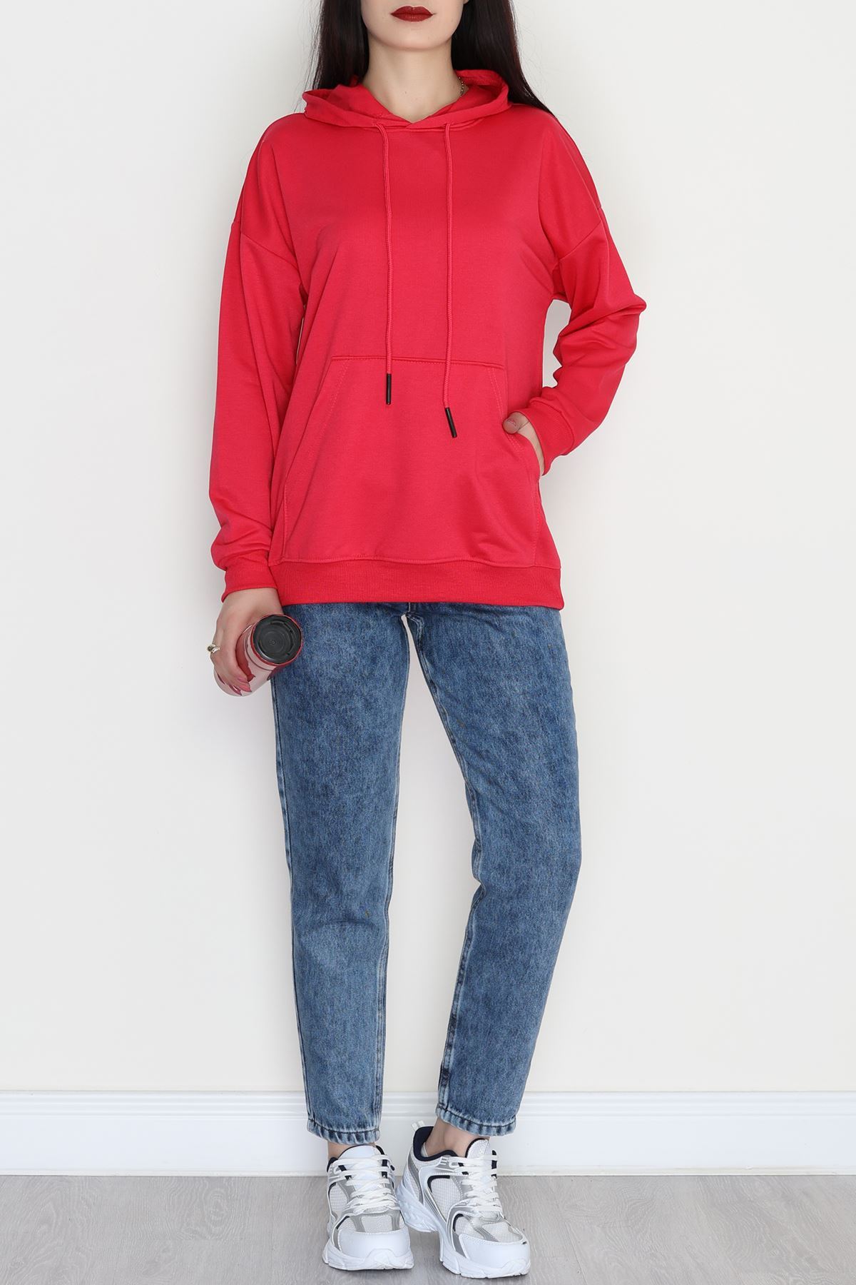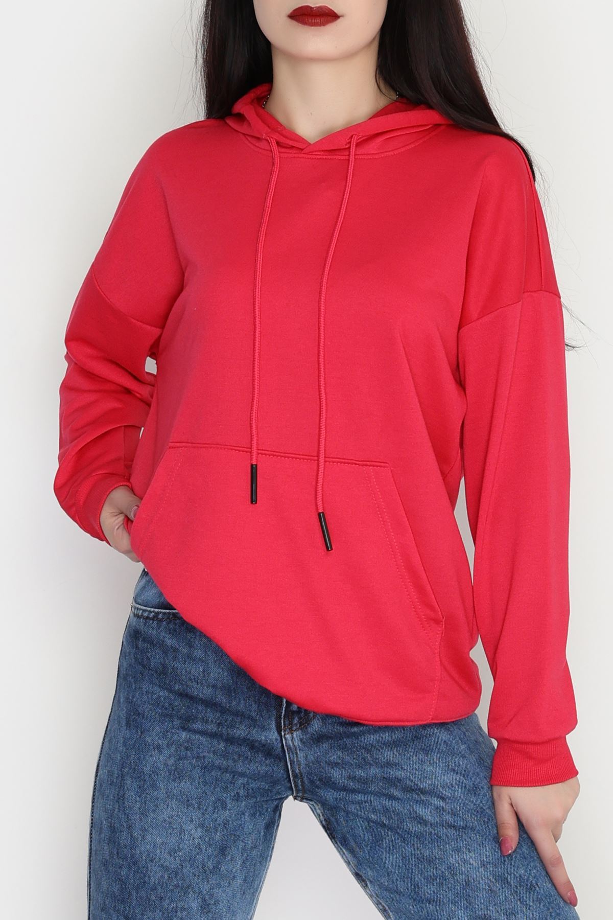 2 İplik Kapşonlu Kanguru Cepli Sweat Fuşya - 30090.1878.