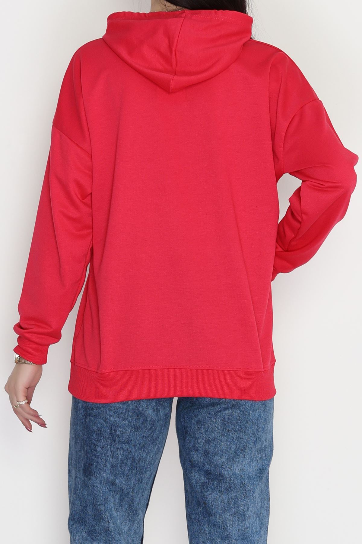3 İplik Kapşonlu Nakışlı Sweat Fuşyapudra - 42228.1878.