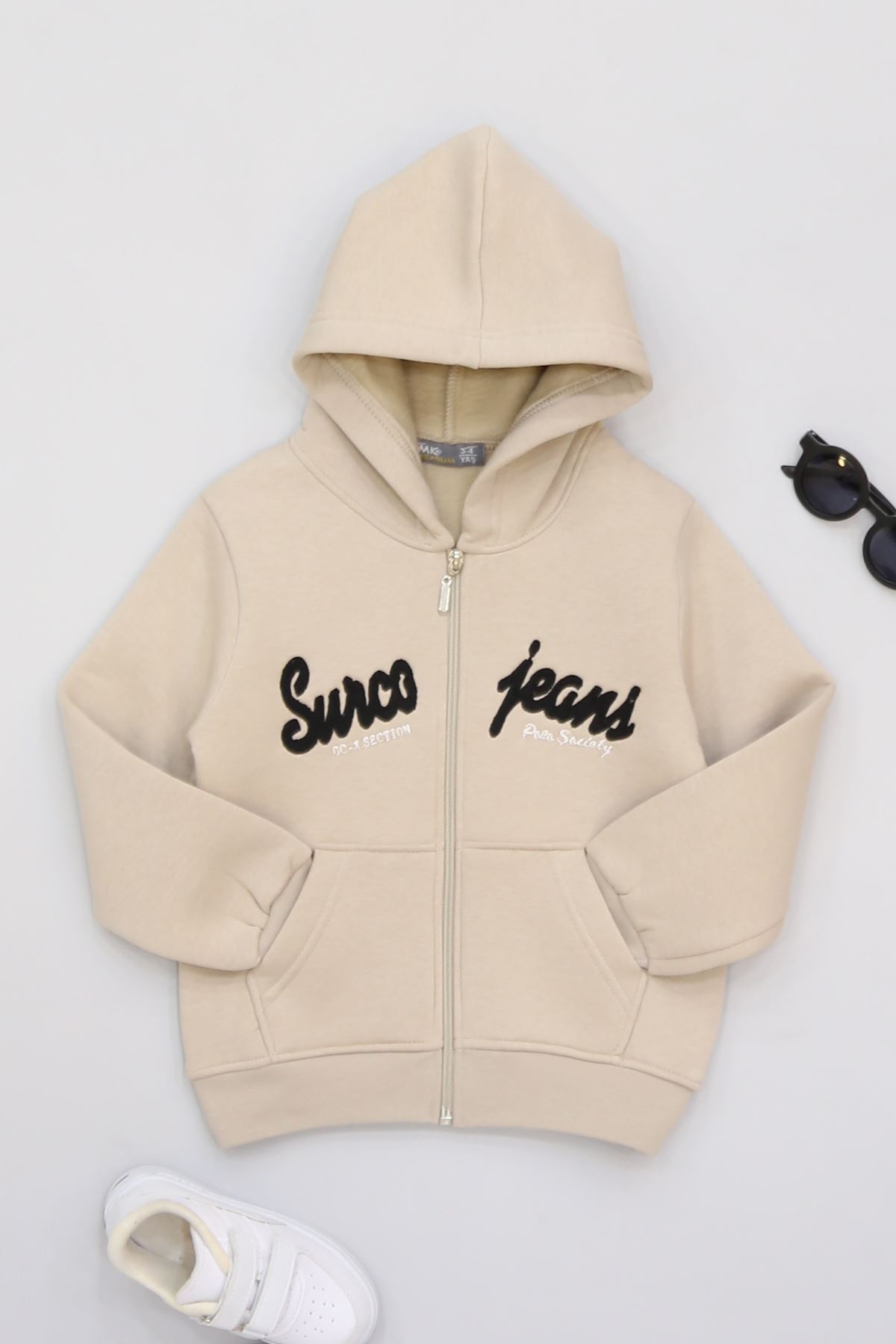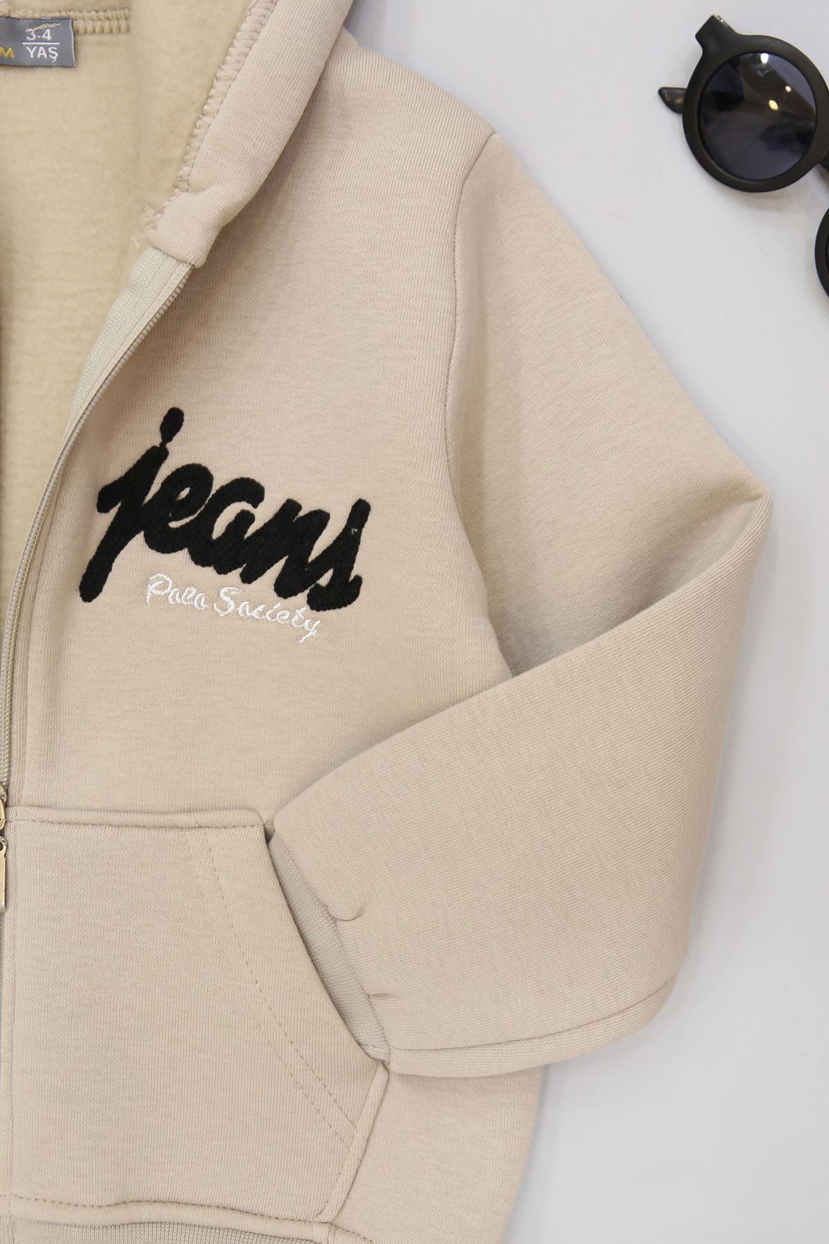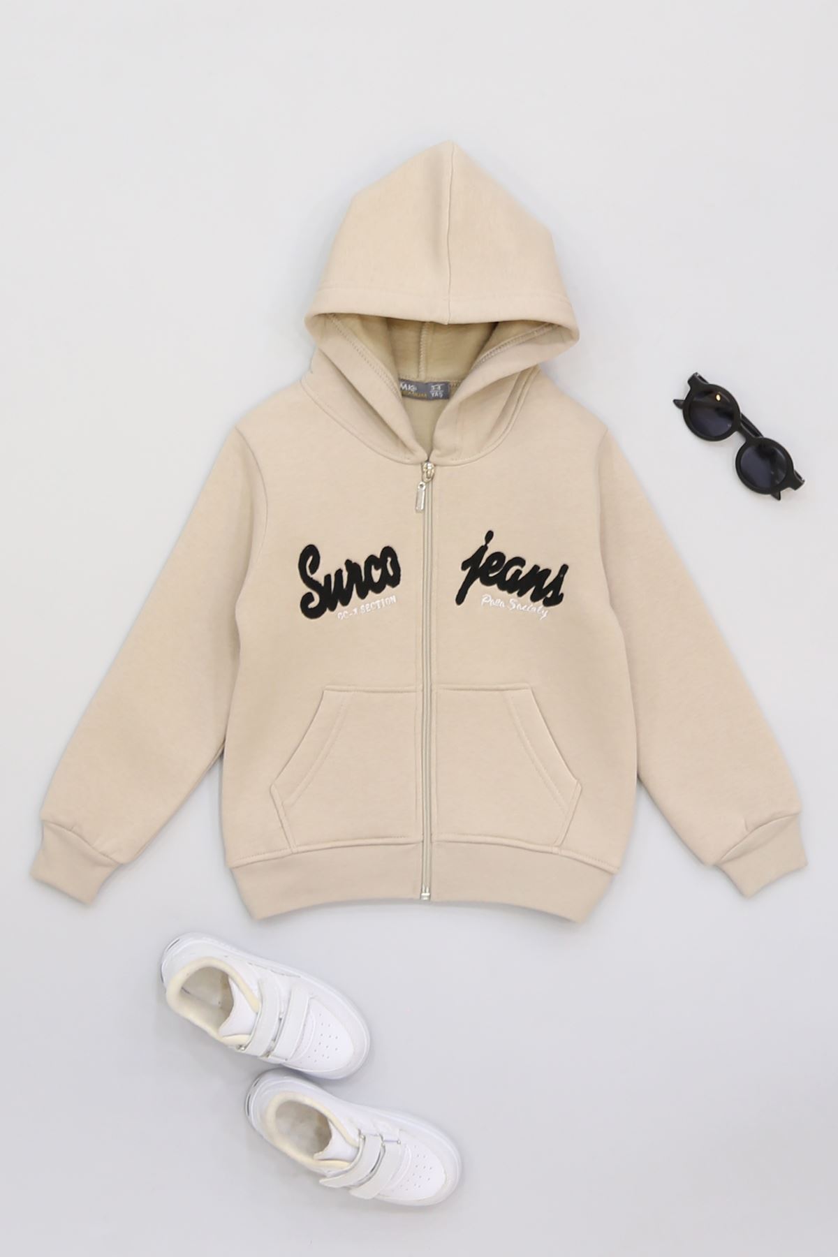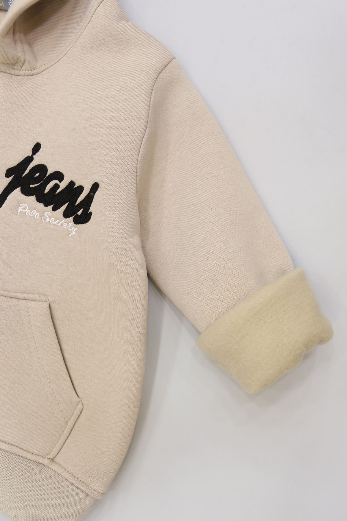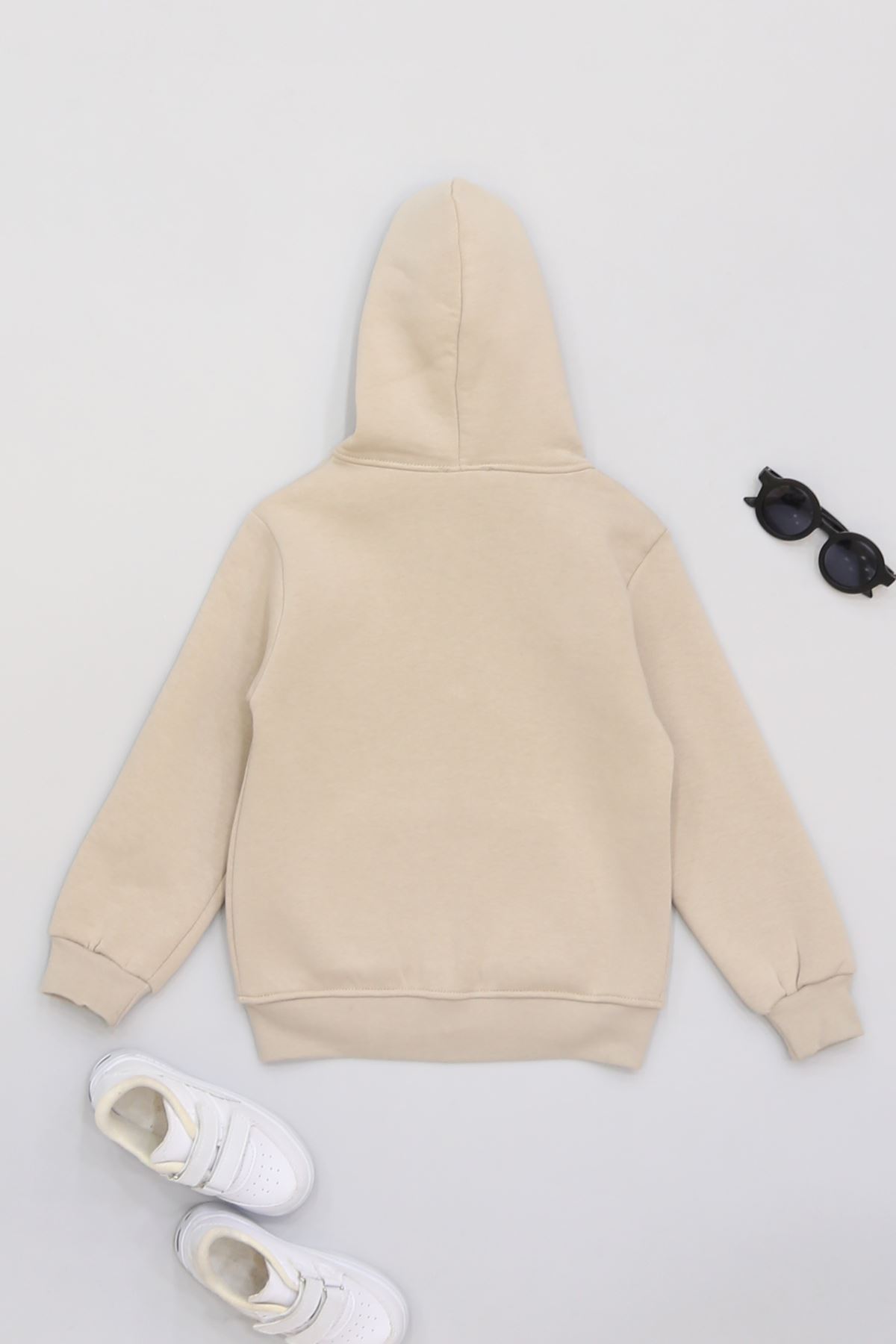 3-12 Yaş 3 İplik Şardonlu Kapşonlu Sweat Bej - 60605.1867.
