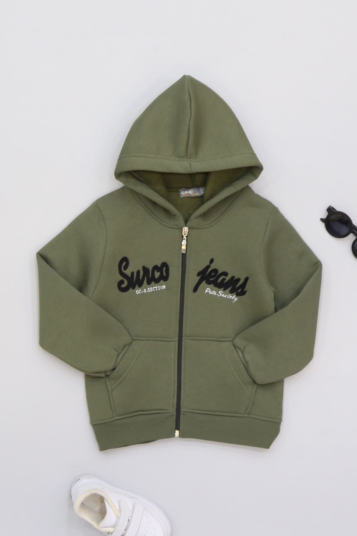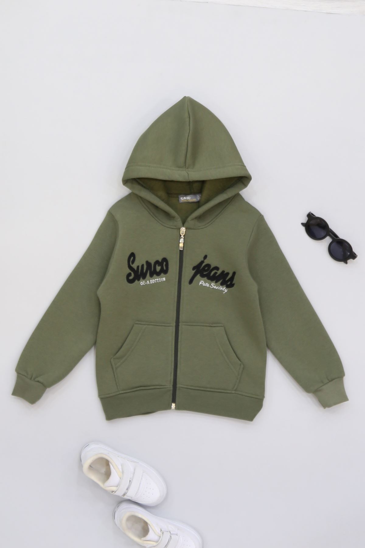 3-12 Yaş 3 İplik Şardonlu Kapşonlu Sweat Haki - 60605.1867.