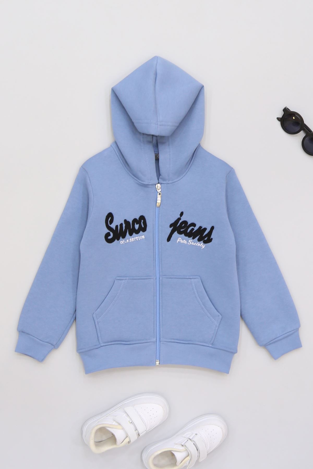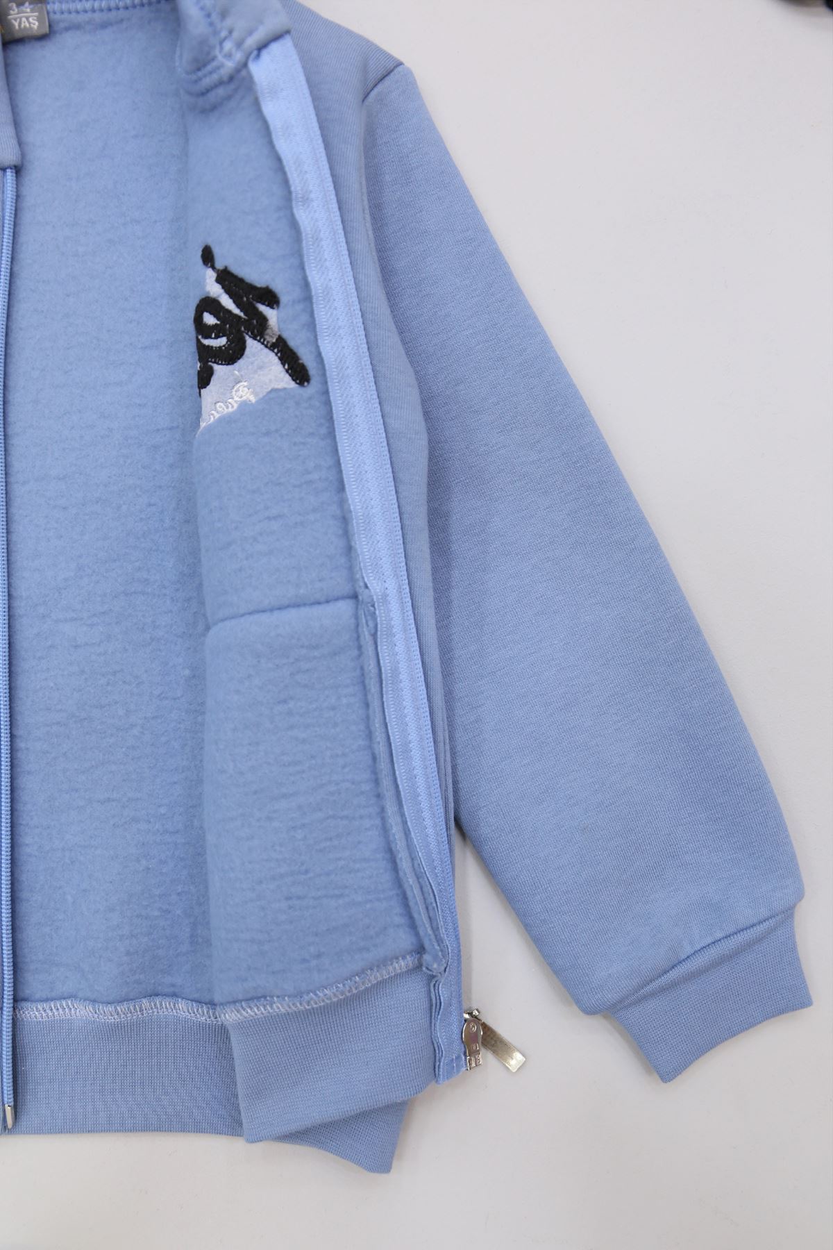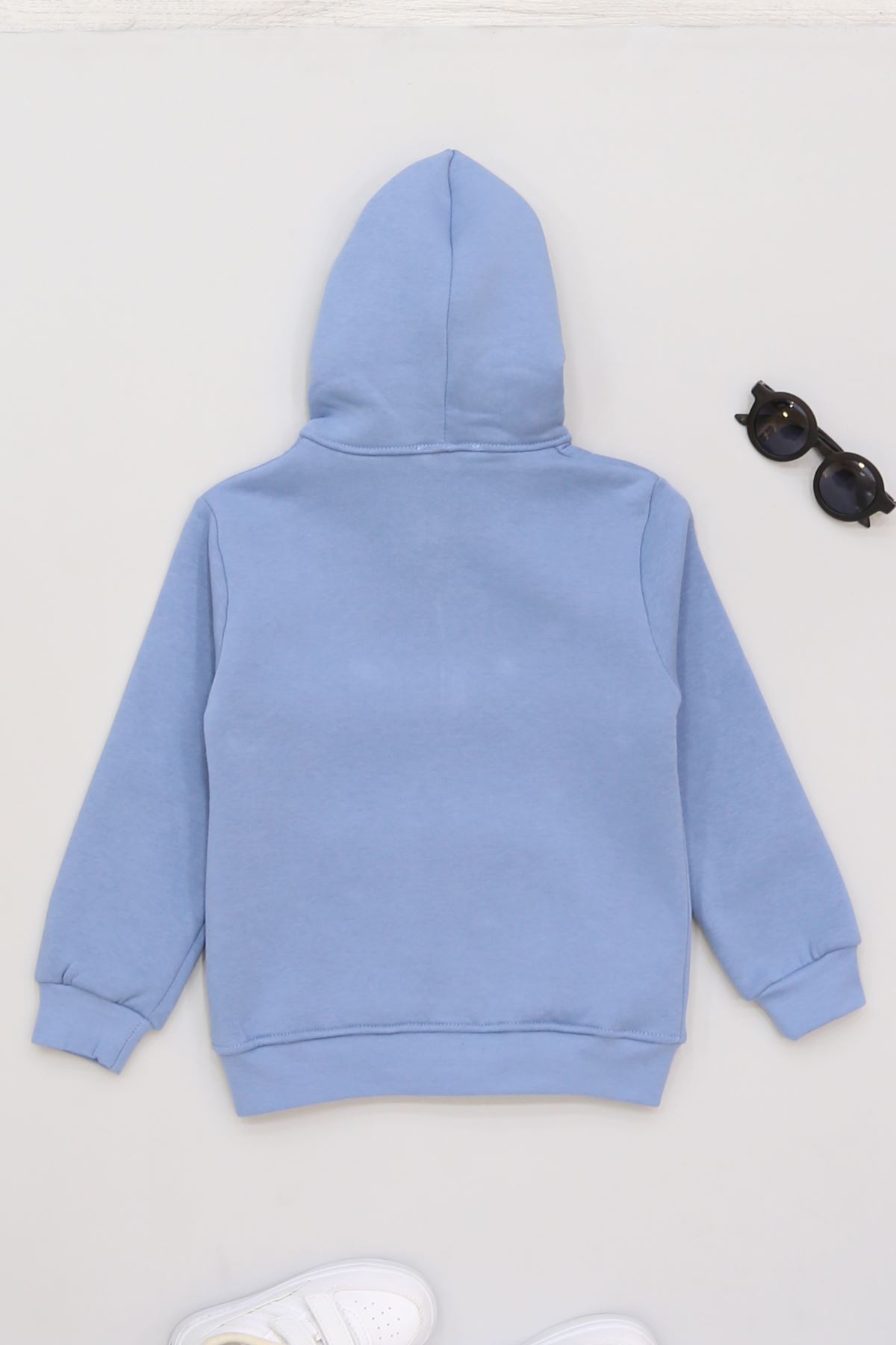 3-12 Yaş 3 İplik Şardonlu Kapşonlu Sweat Mavi - 60605.1867.