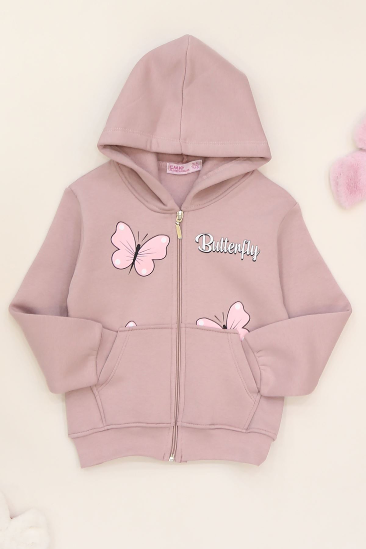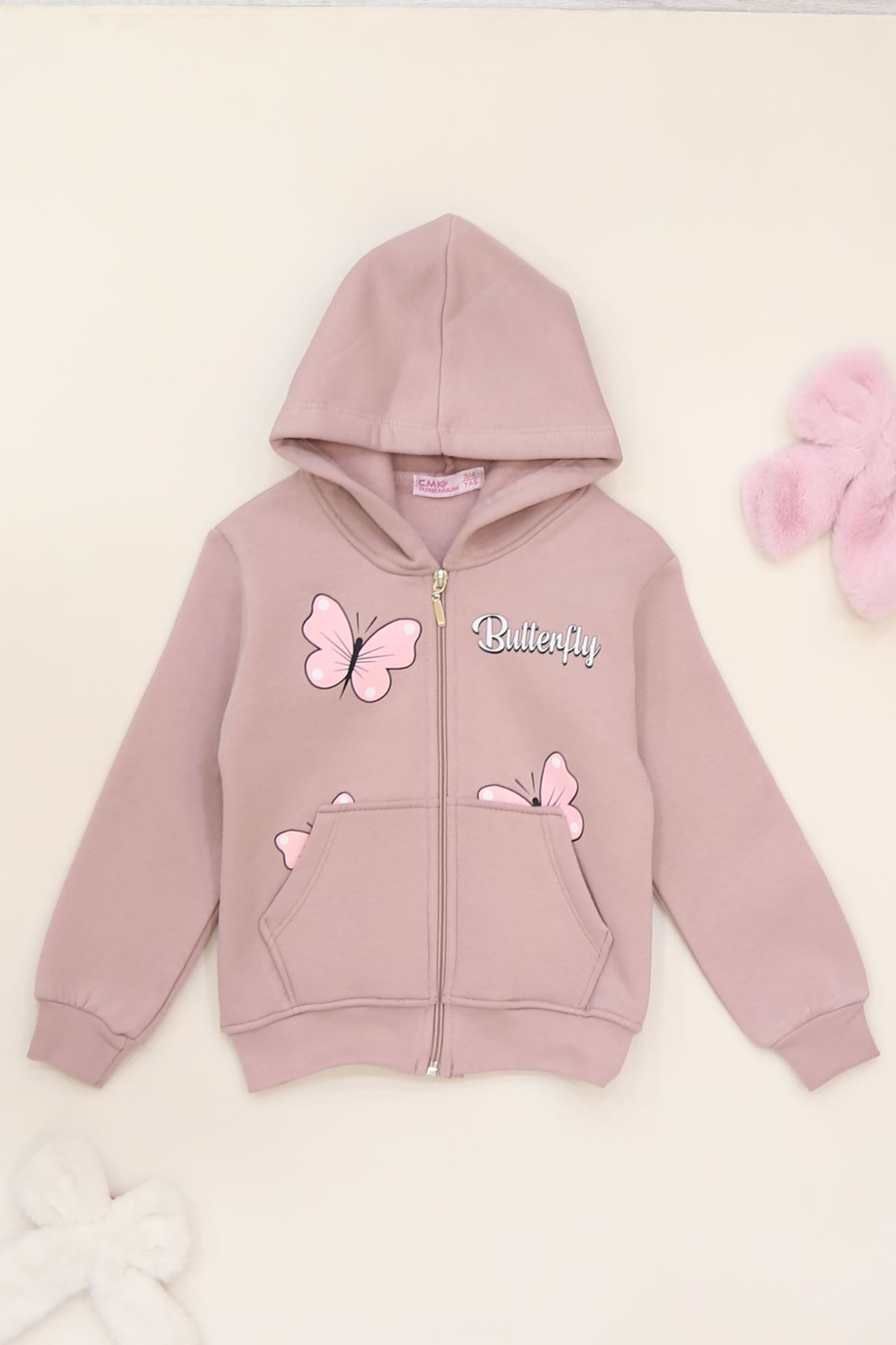 3-12 Yaş 3 İplik Şardonlu Kapşonlu Sweat Vizon - 60710.1867.