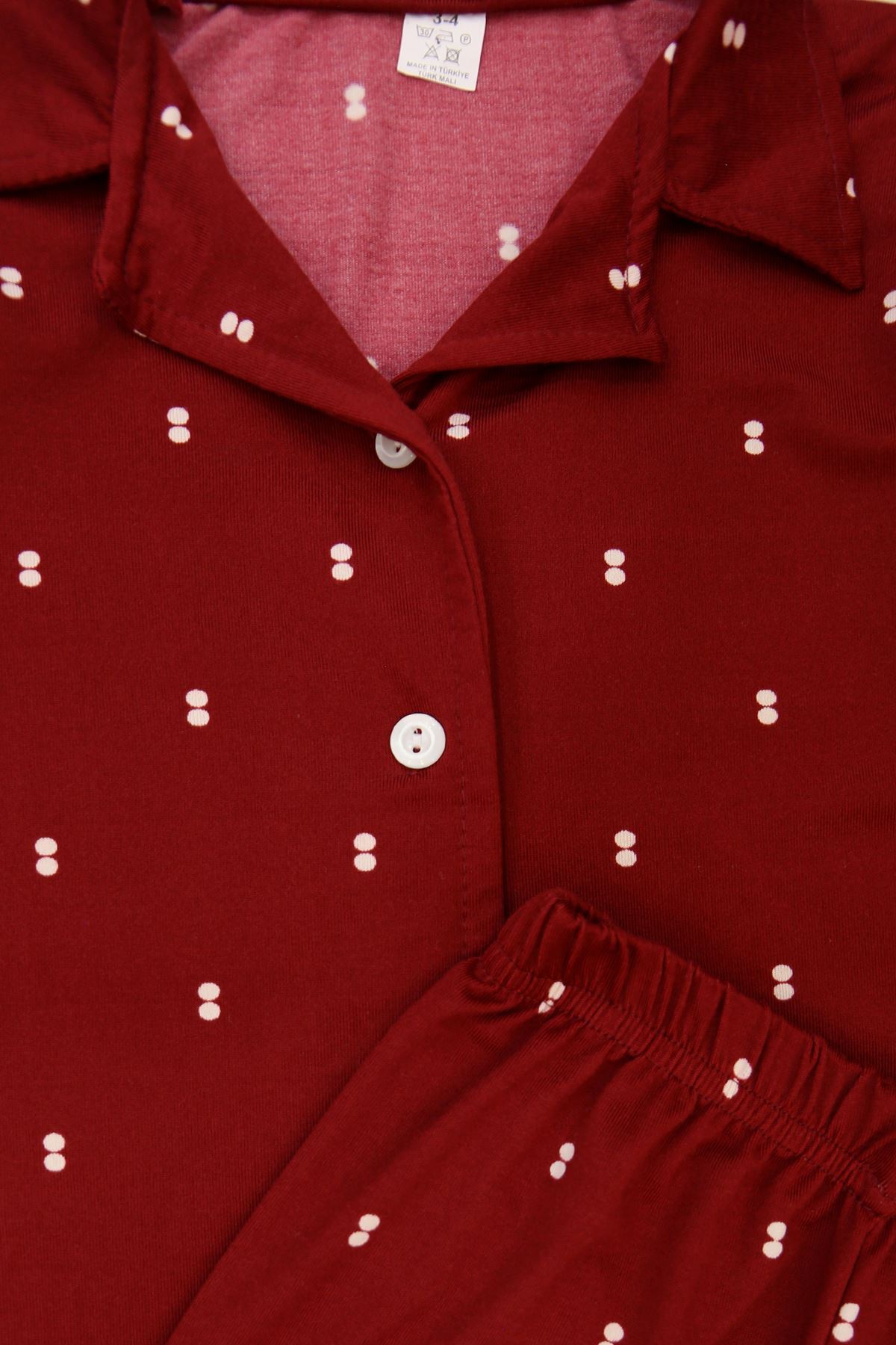 Likralı Fransız Kadife Düğmeli Pijama Takımı Lila - 42069.1049.