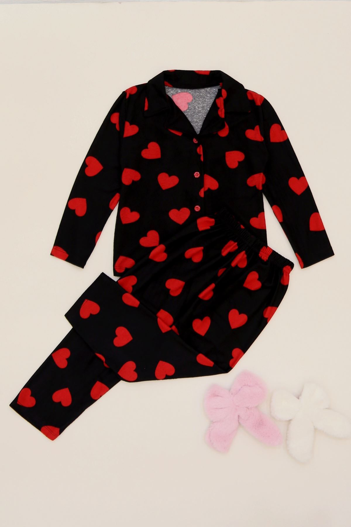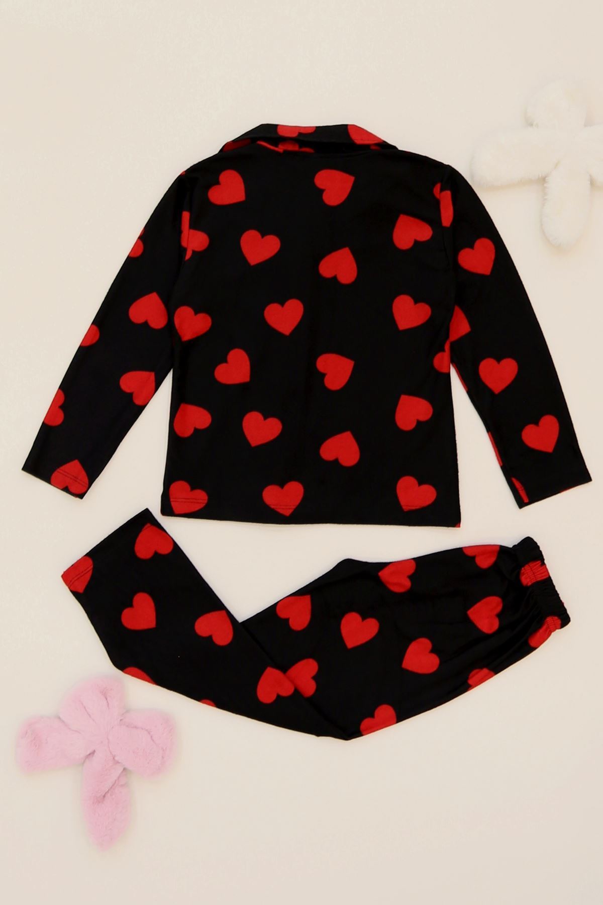 5-12 Yaş Süet Düğmeli Pijama Takımı Pembekareli - 50760.1048.