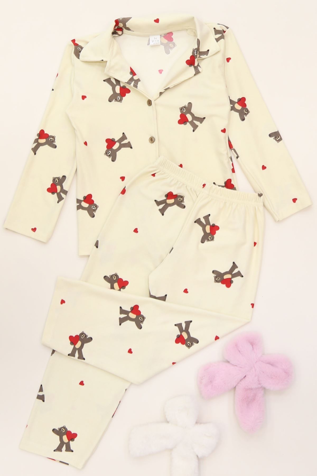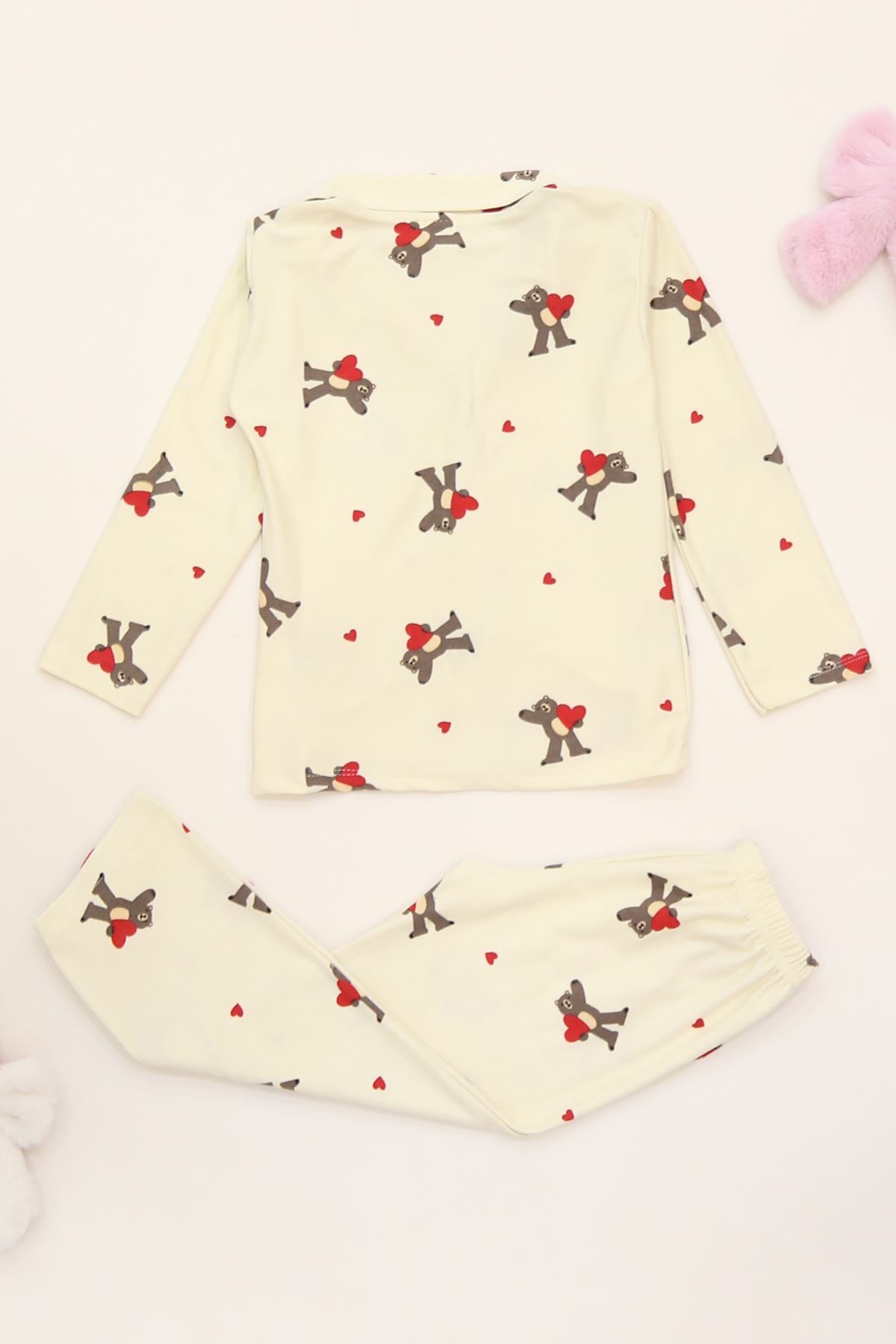 5-12 Yaş Süet Düğmeli Pijama Takımı Beyazçilek - 50760.1048.