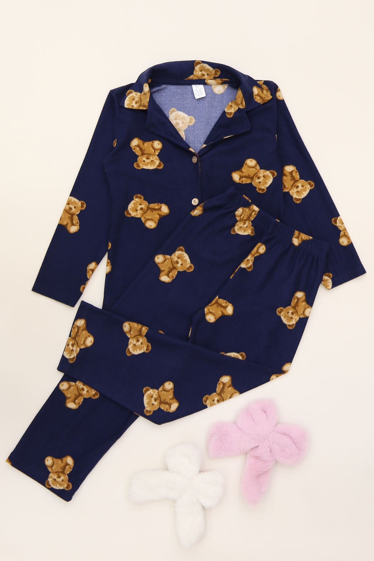 13-16 Yaş Süet Pijama Takımı Lacivert - 42206.2028.