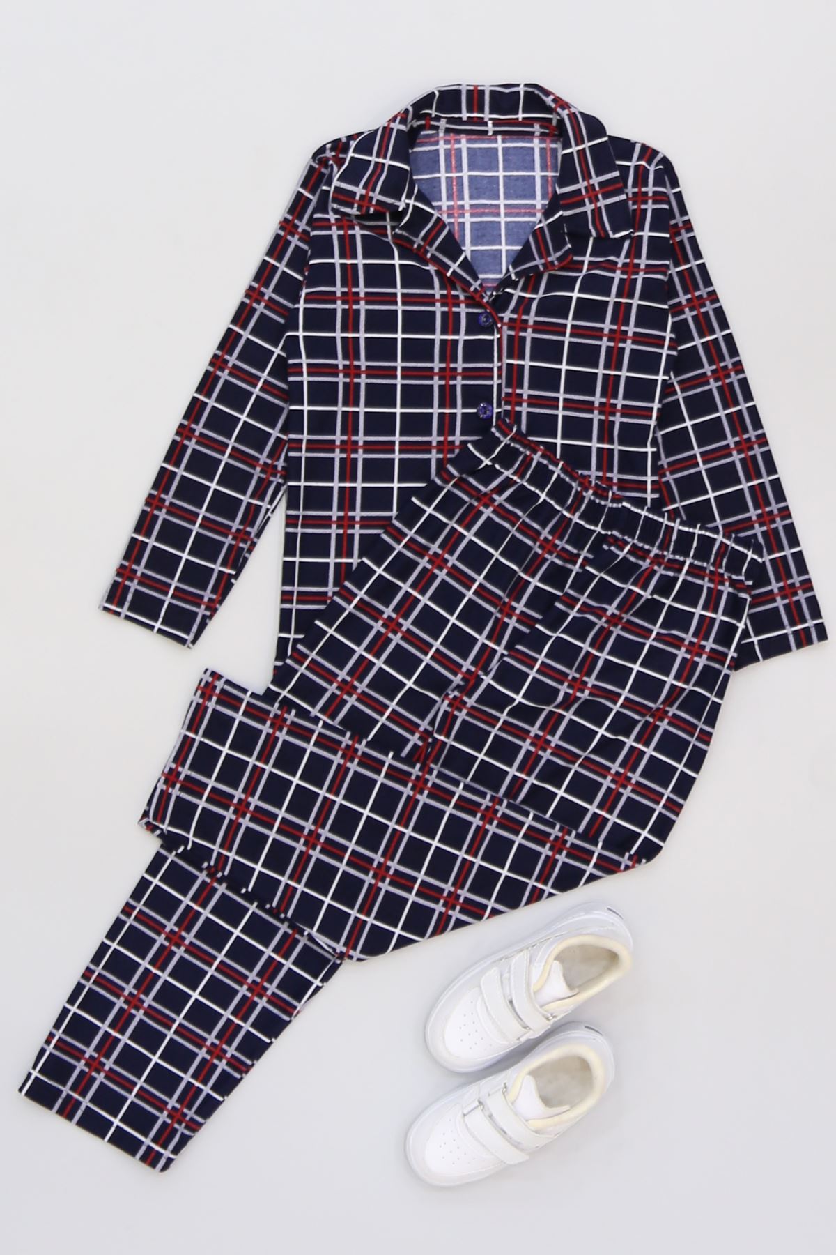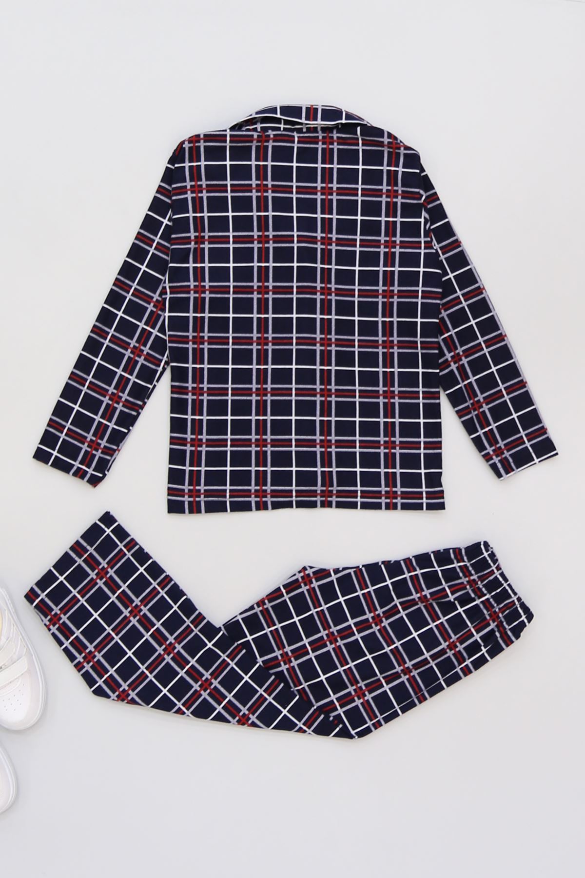 5-12 Yaş Süet Düğmeli Pijama Takımı Siyahbeyaz - 50760.1048.