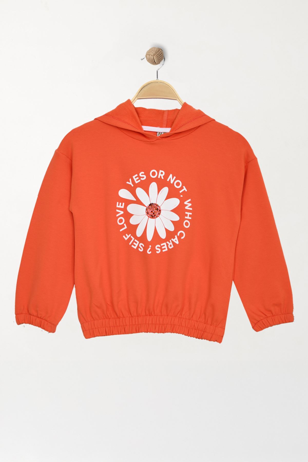 3 İp Şardonlu Baskılı 3-7 Yaş Kapüşonlu Sweatshirt Turuncu - 625516.1576.