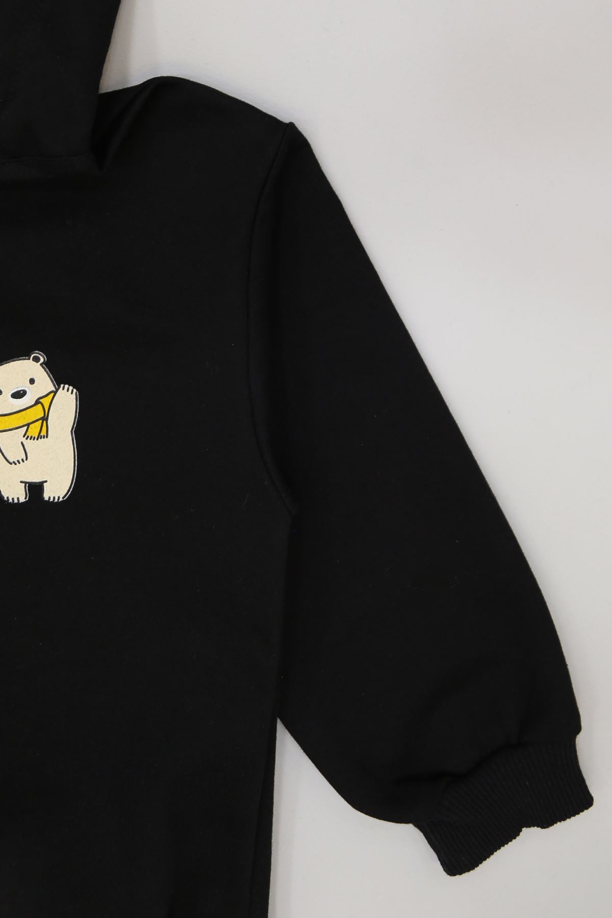 2 İp Penguen Baskılı 3-7 Yaş Kapüşonlu Sweatshirt Siyah - 625503.1576.