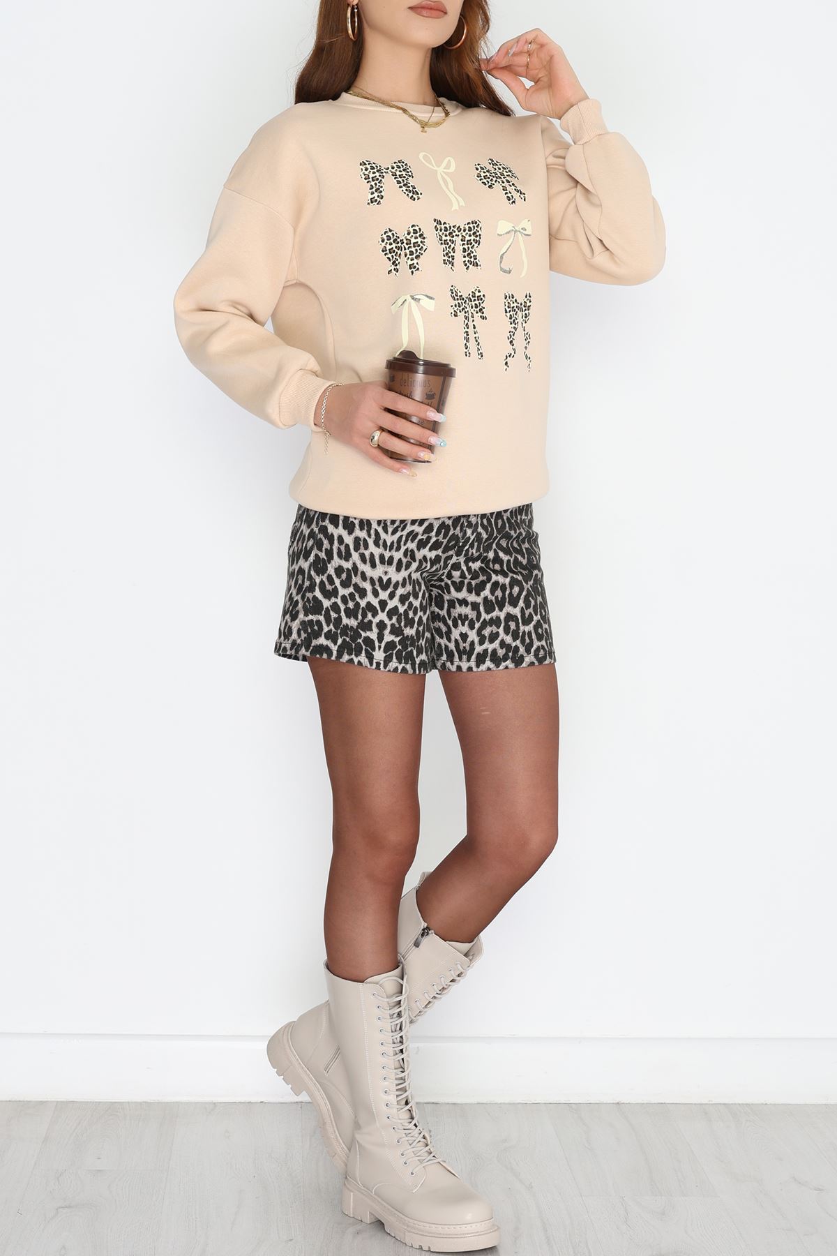 3 İplik Baskılı Sweat Bej - 42244.1878.