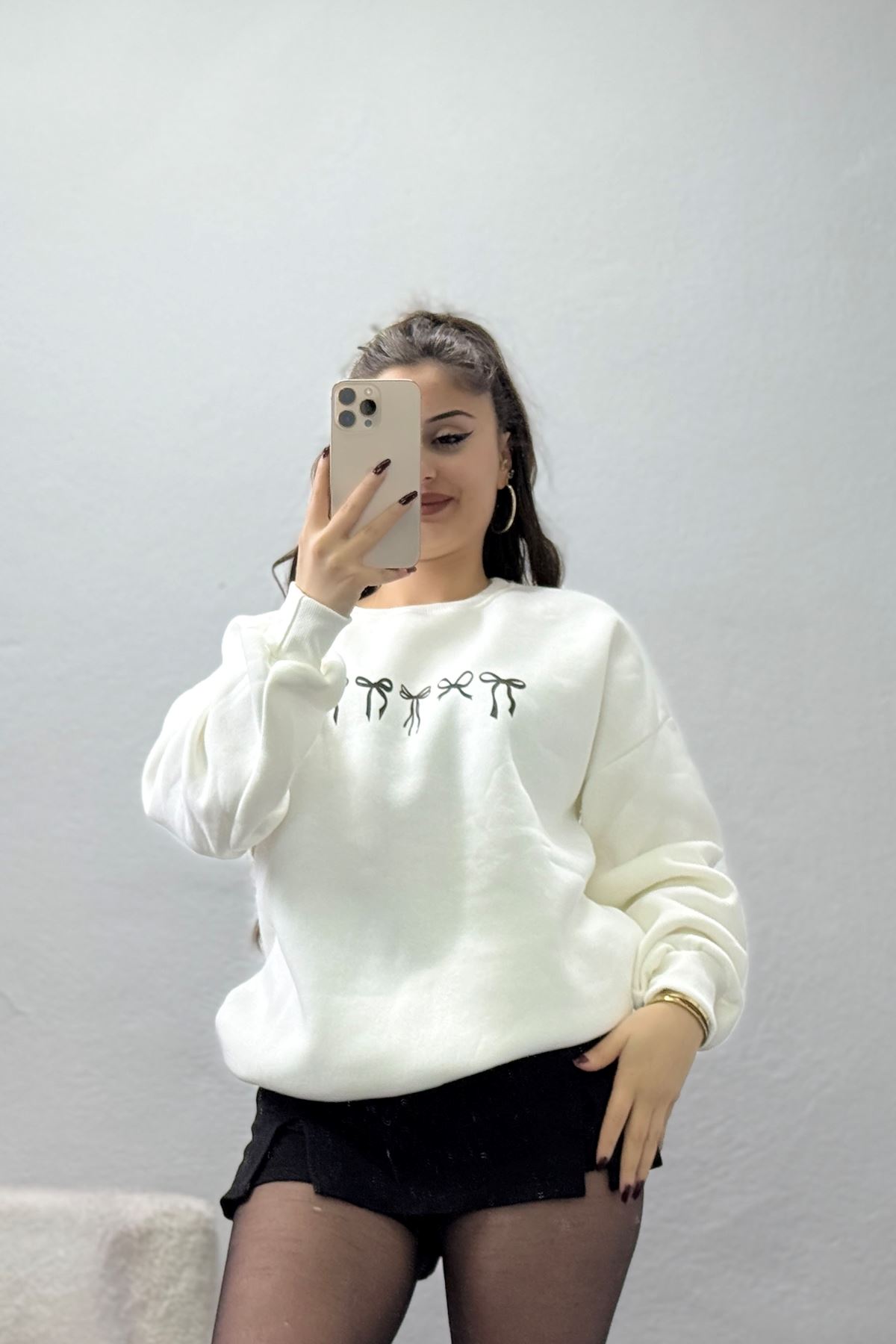 3 İplik Baskılı Sweat Beyazsiyah - 42243.1878.