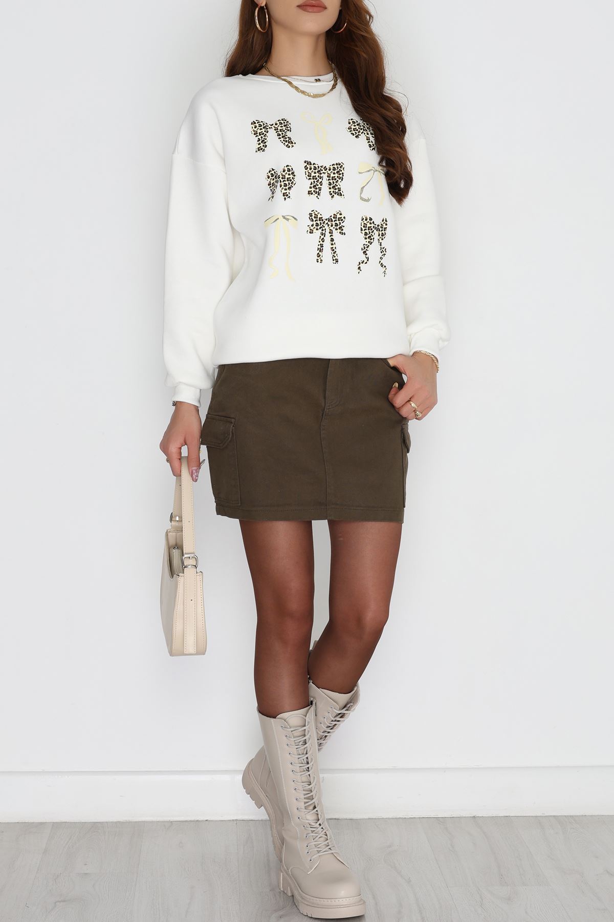 3 İplik Baskılı Sweat Ekru - 42244.1878.