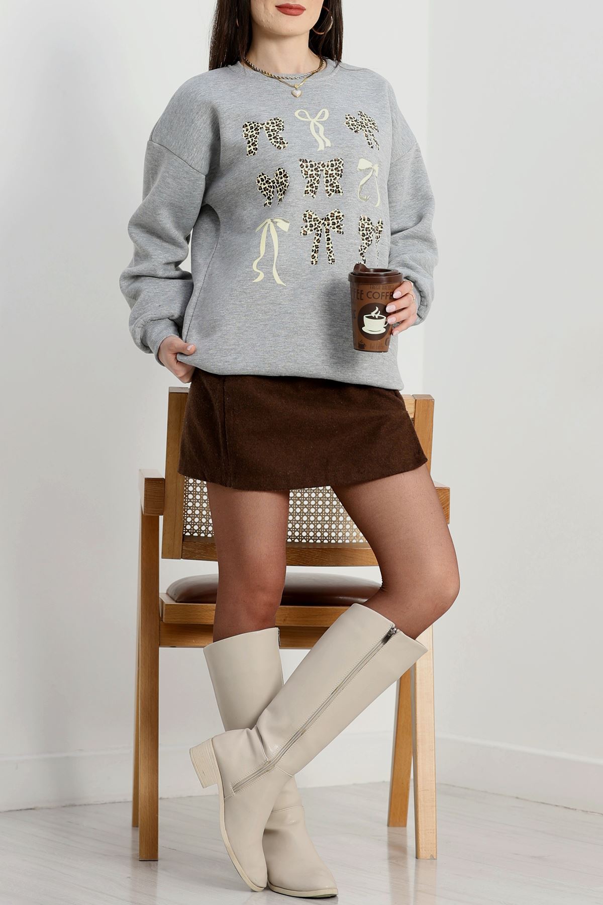 3 İplik Baskılı Sweat Gri - 42244.1878.
