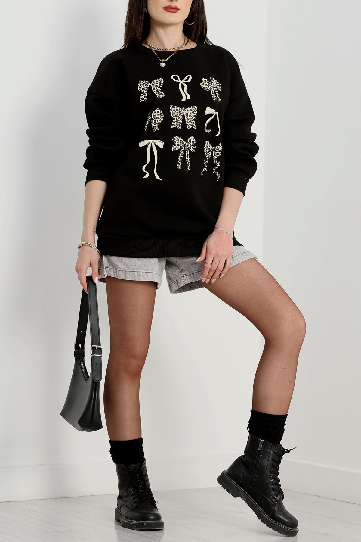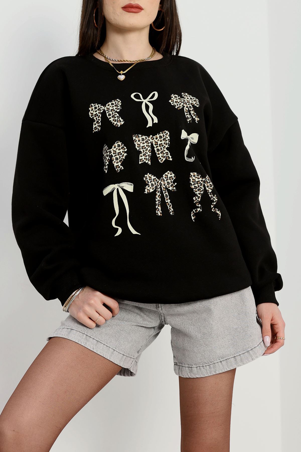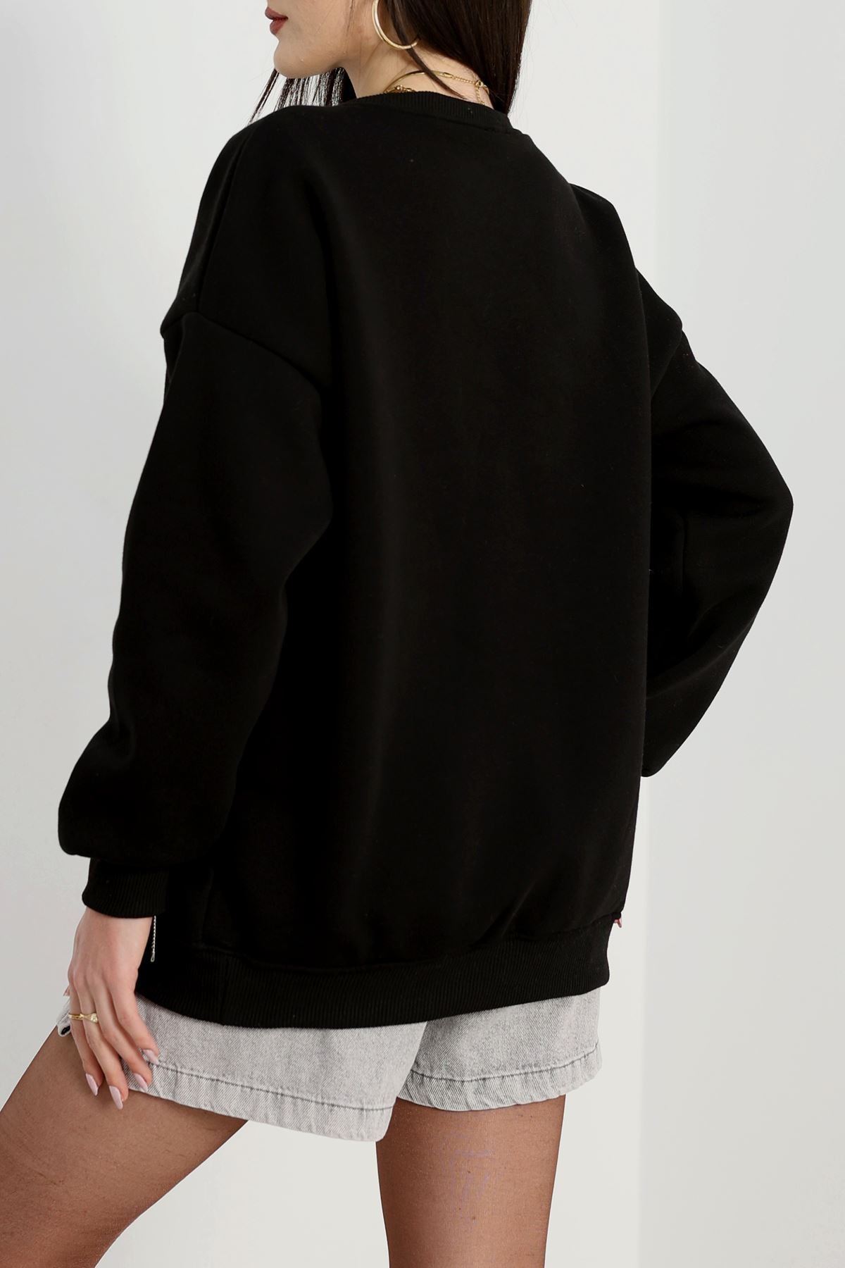 3 İplik Baskılı Sweat Siyah - 42244.1878.
