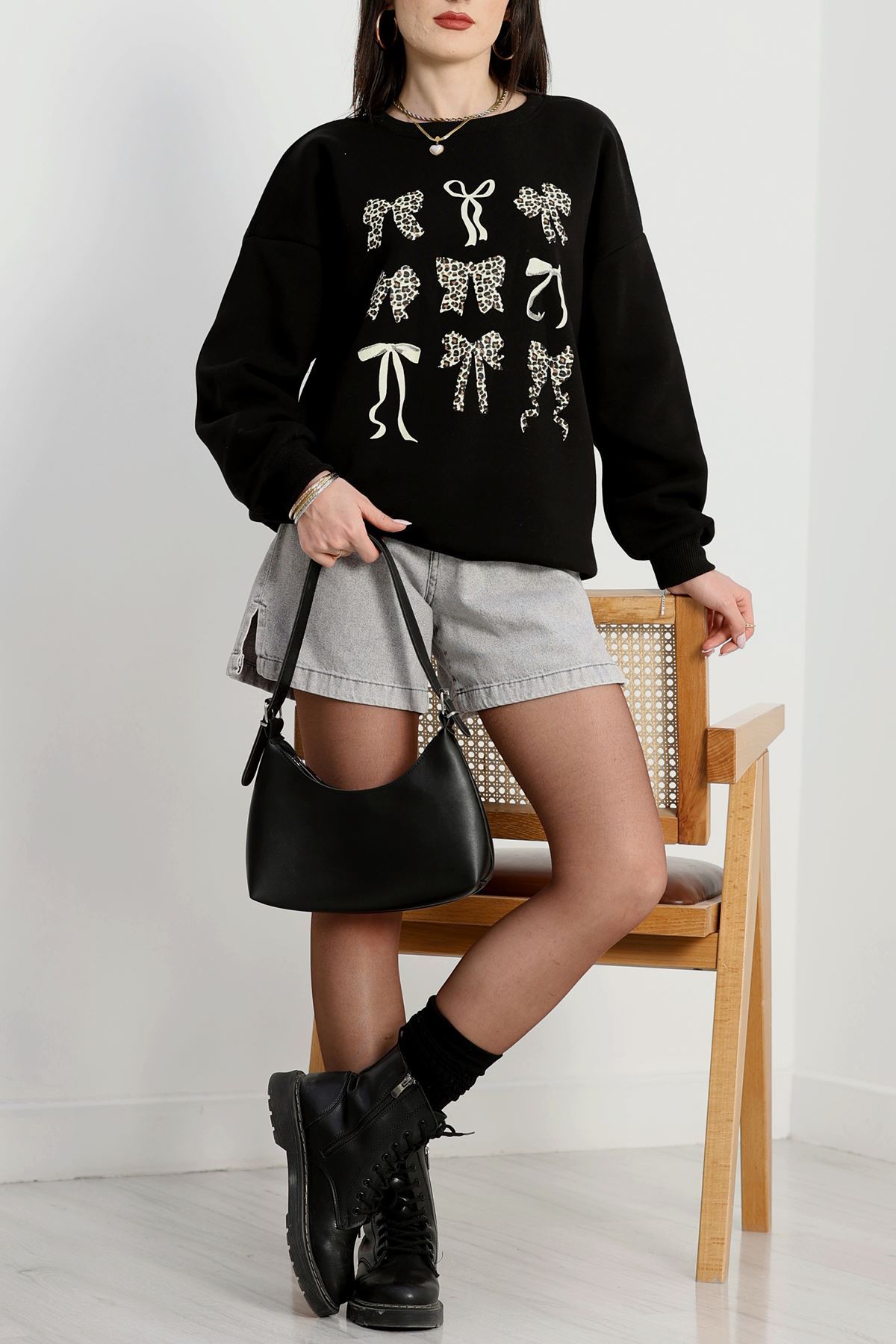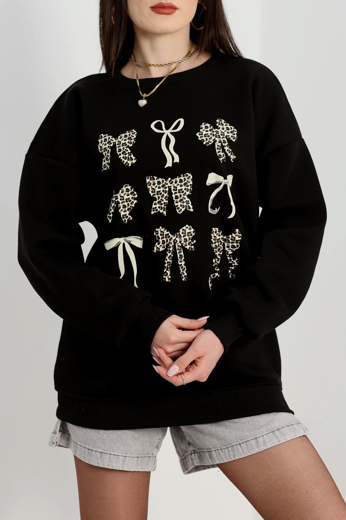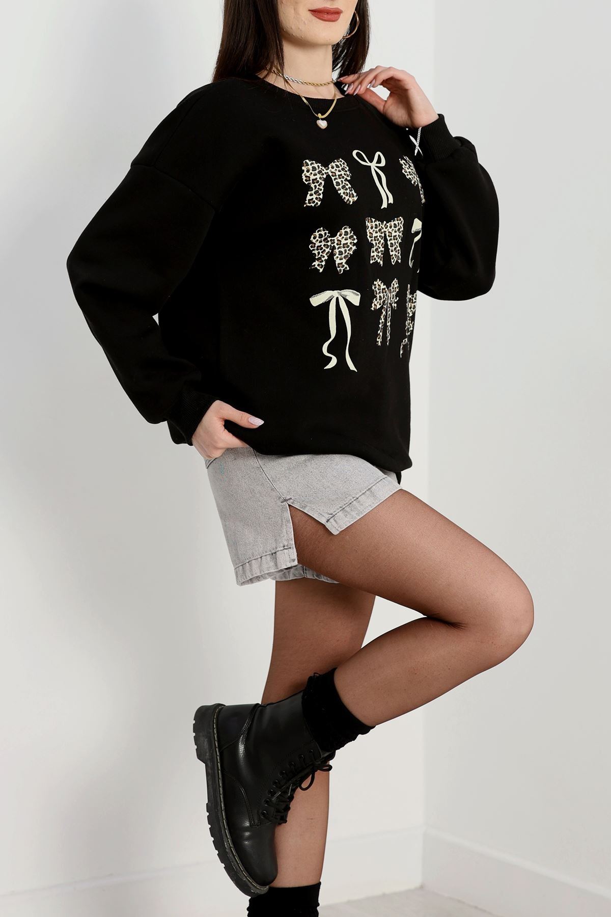 3 İplik Baskılı Sweat Siyah - 42244.1878.