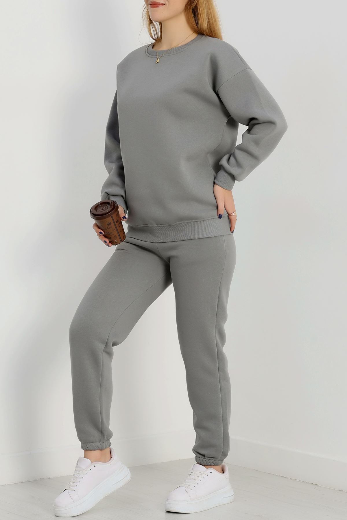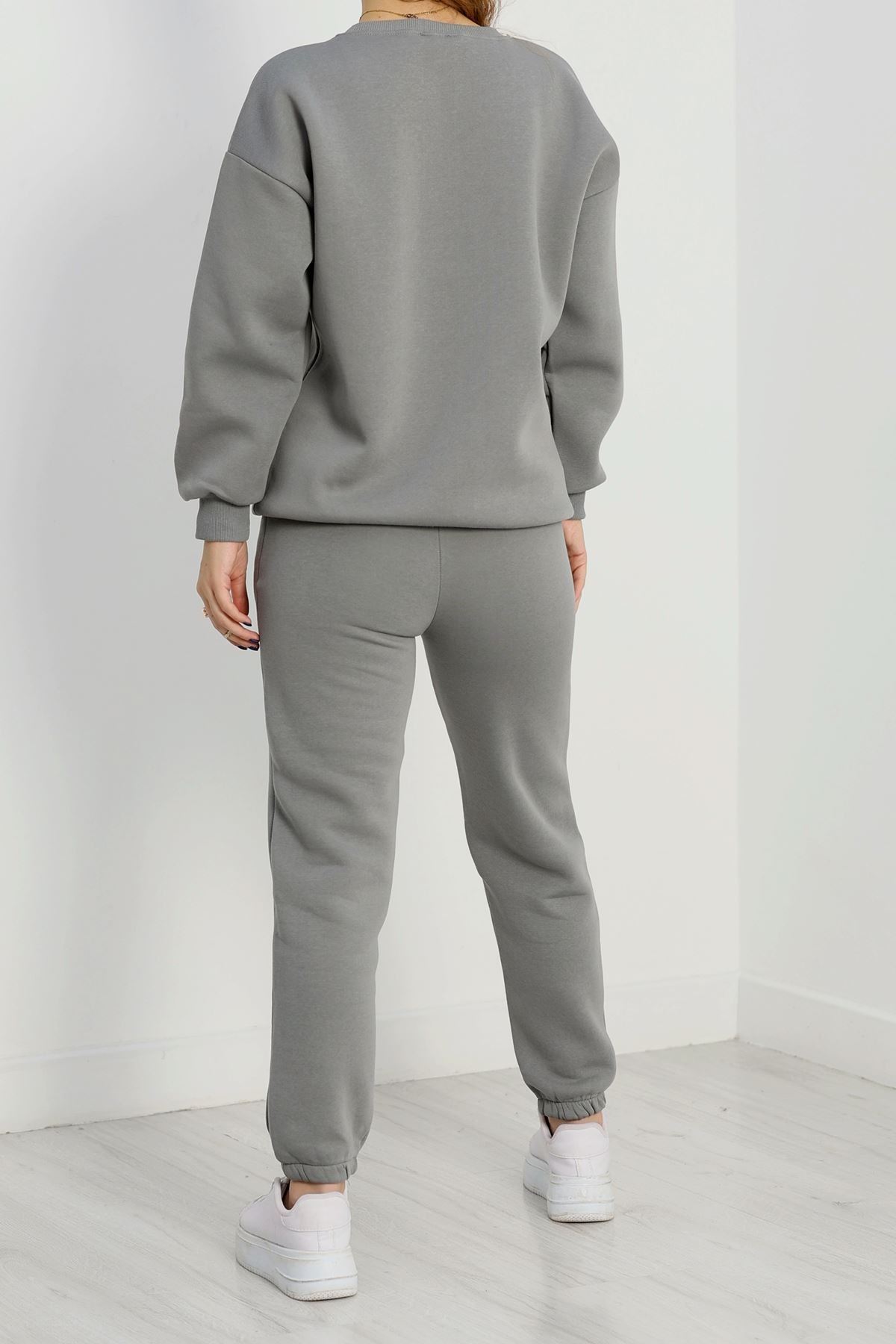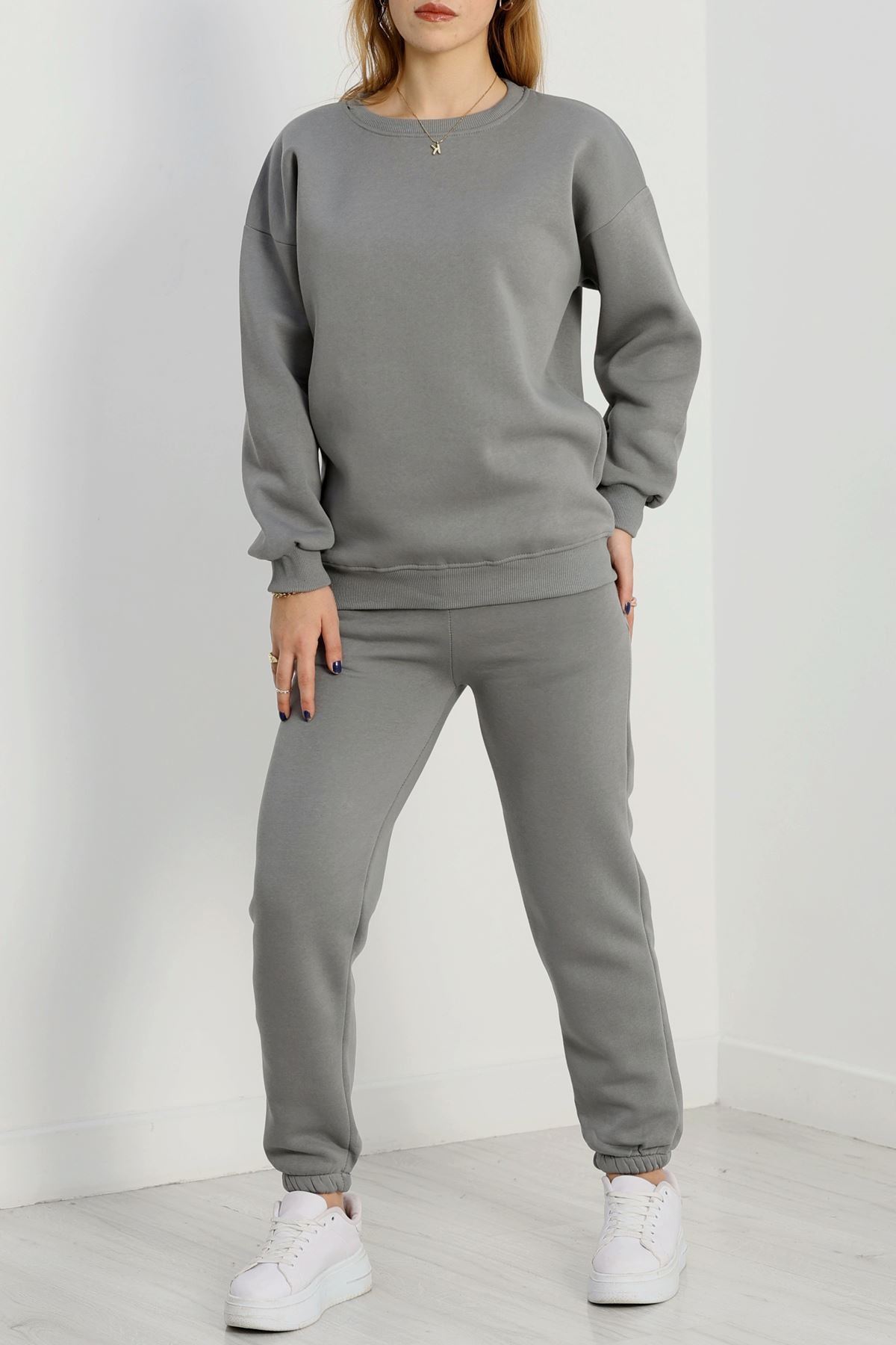 3 İplik Bisiklet Yaka Eşofman Takımı Antrasit - 20779.1878.