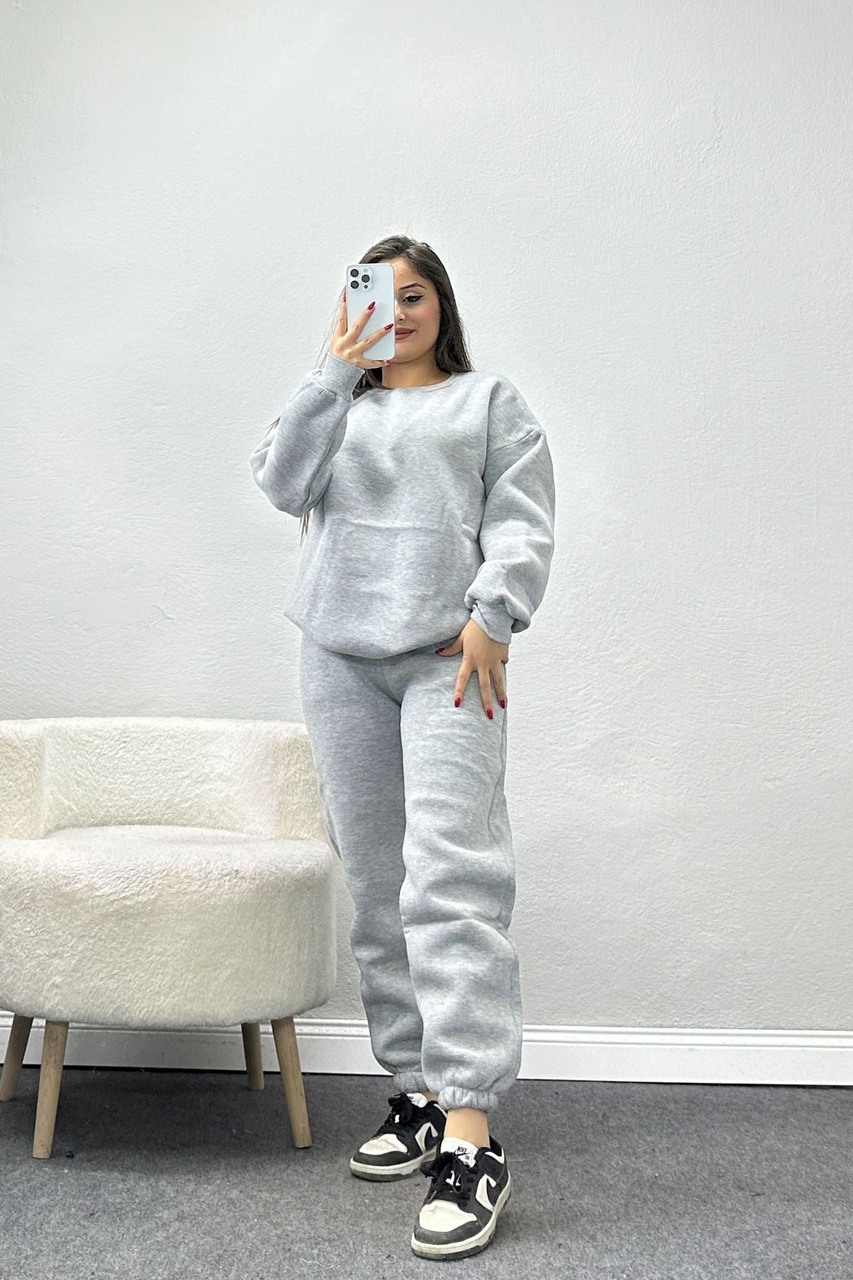 3 İplik Bisiklet Yaka Eşofman Takımı Gri - 20779.1878.