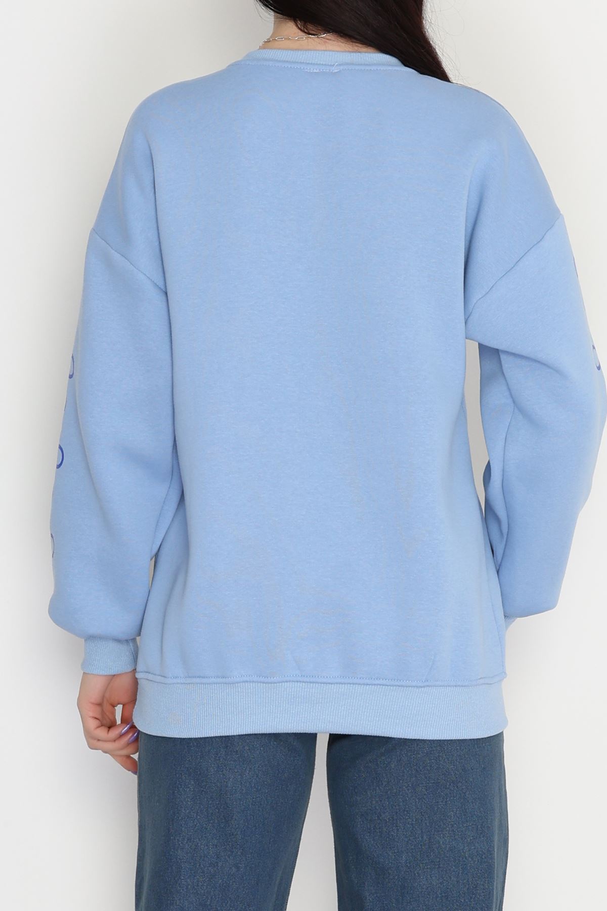 3 İplik Kapşonlu Crop Sweat Mavi - 20959.1878.