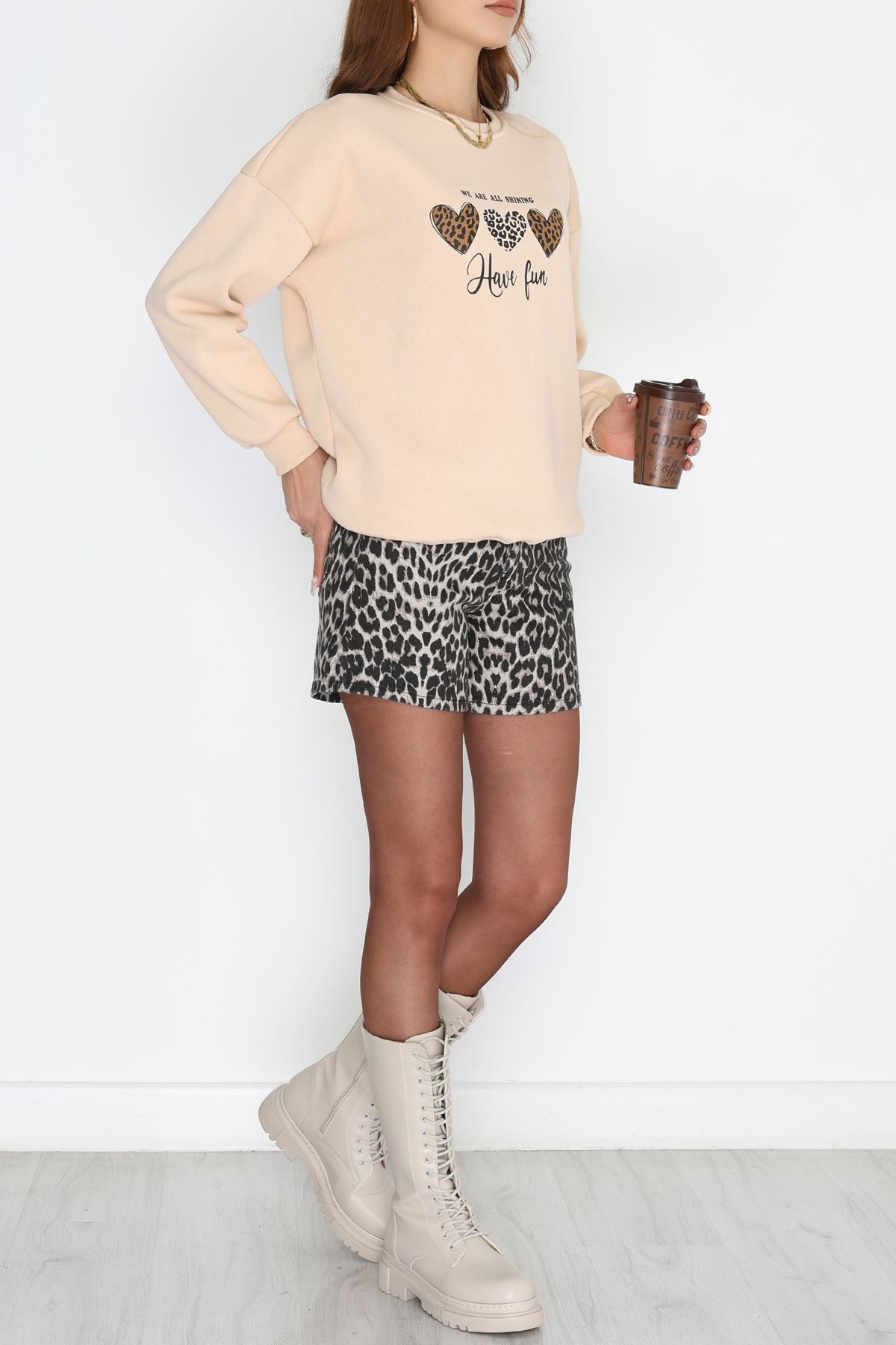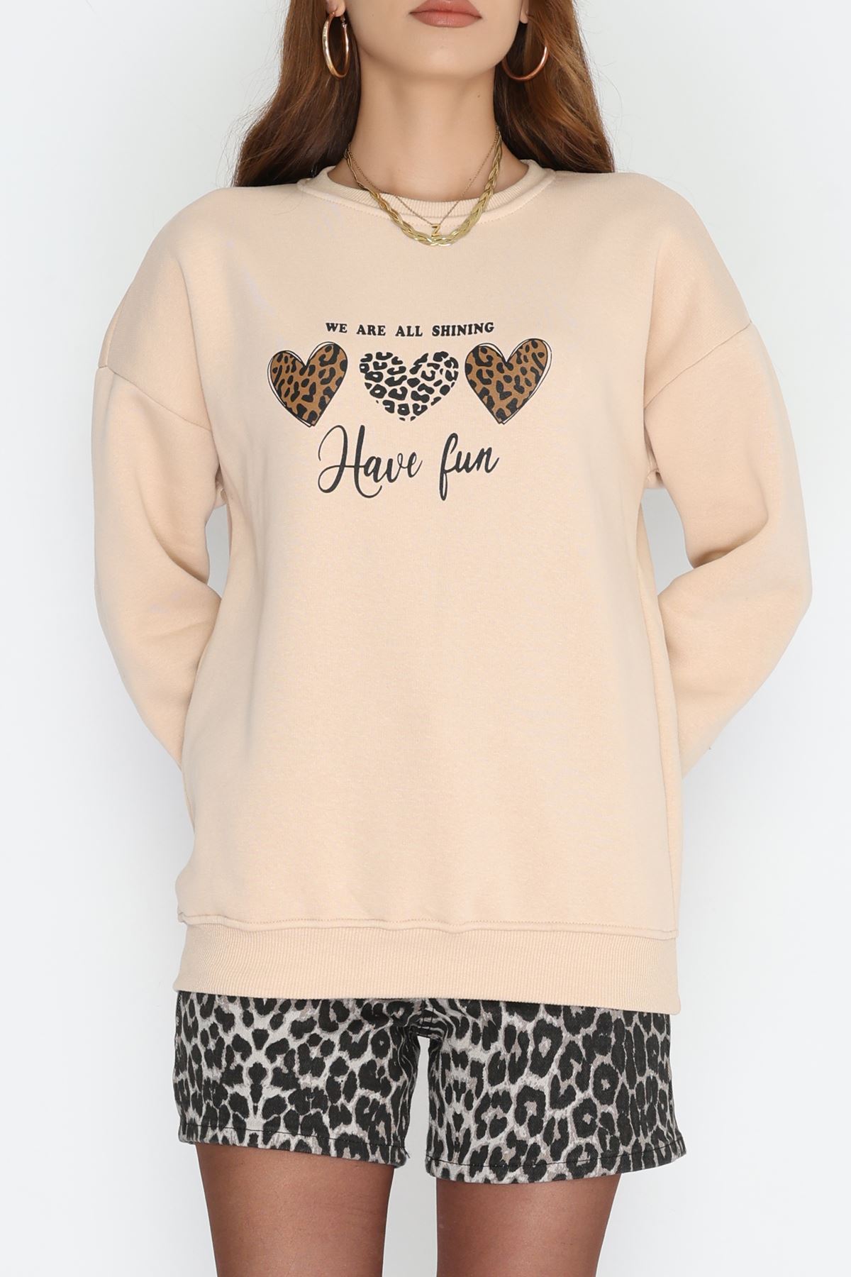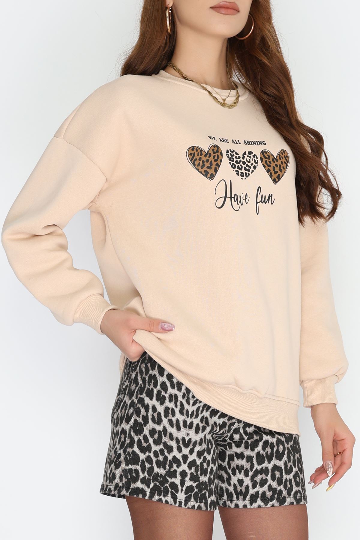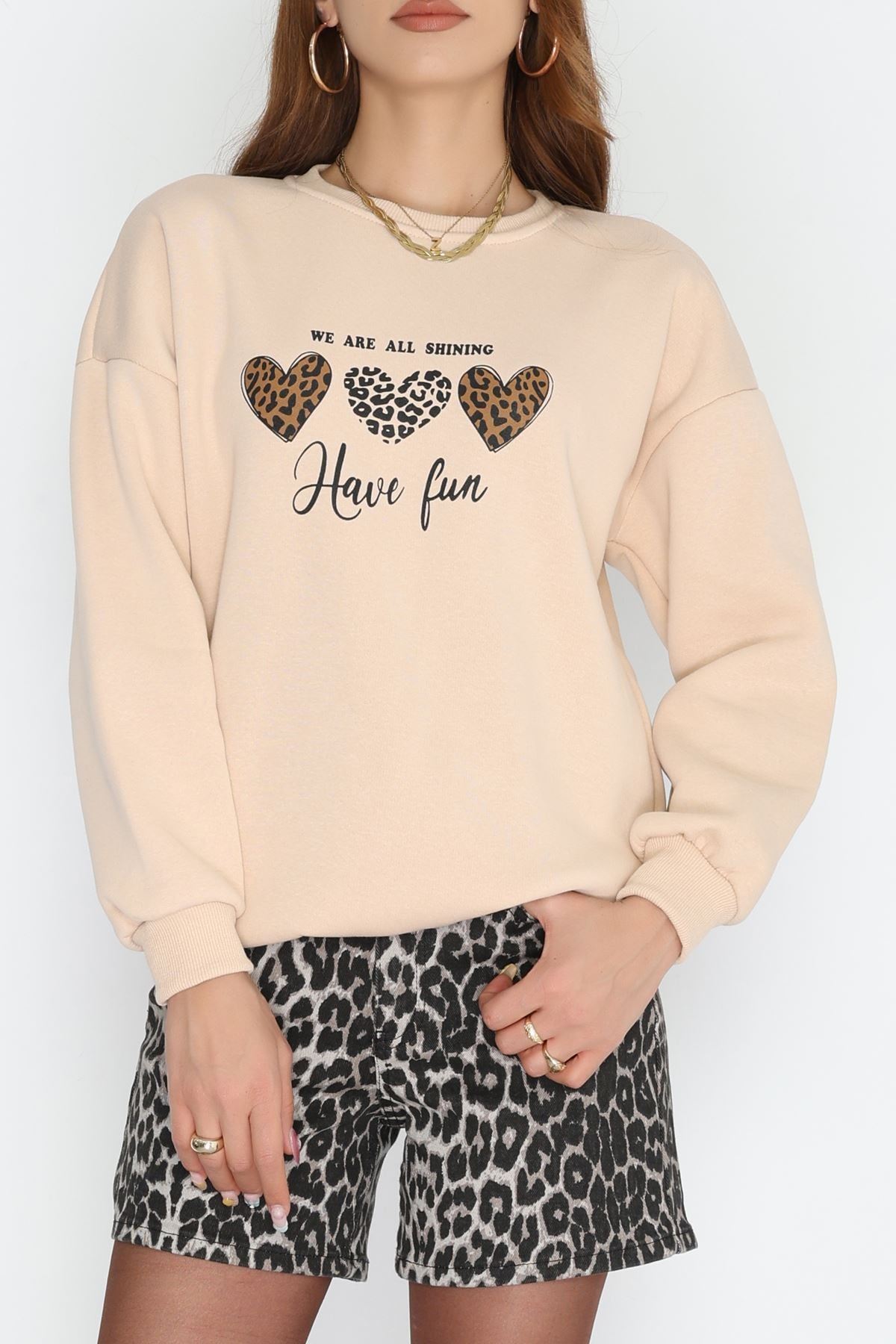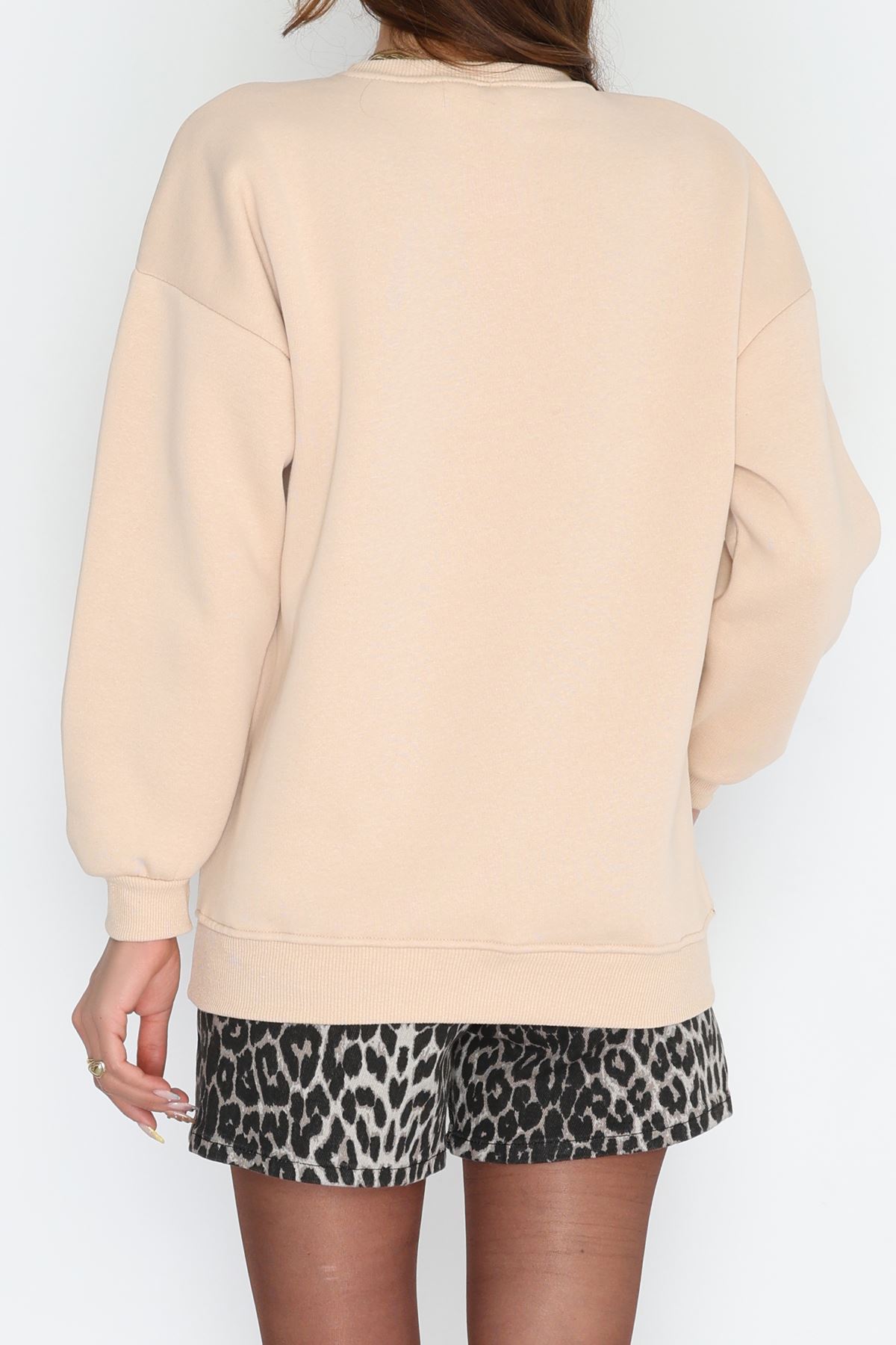 3 İplik Bisiklet Yaka Sweat Bej - 42236.1878.