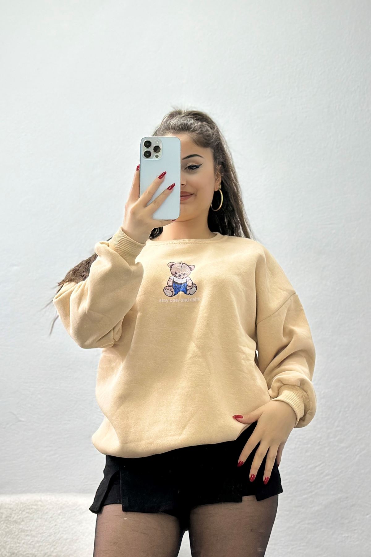 3 İplik Bisiklet Yaka Sweat Bej - 42237.1878.